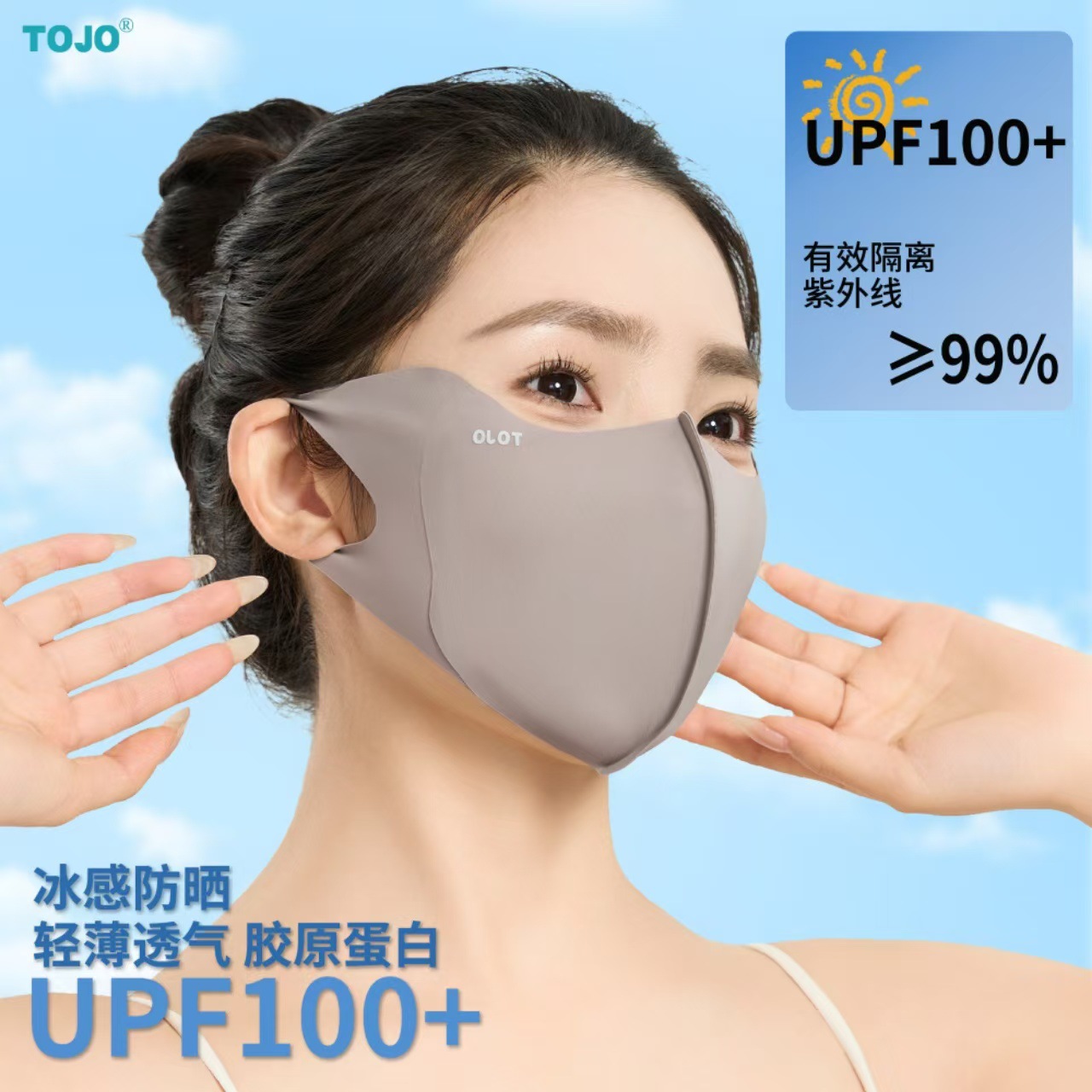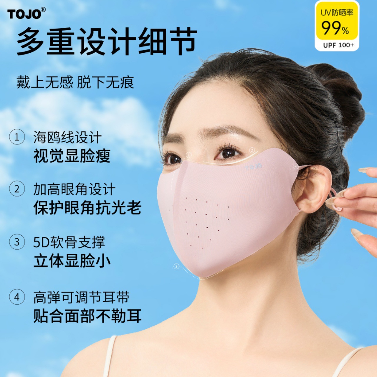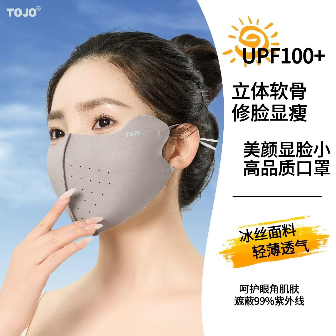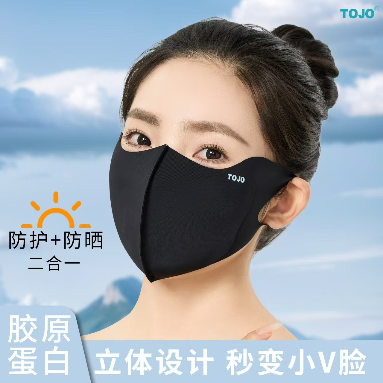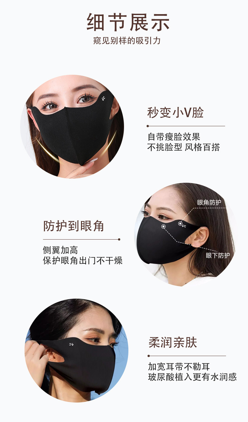 봄과 여름 새로운 Hyaluronic Acid 마스크 마스크 아이 코너 태양 보호 UV 보호 실 피부 친화적 인 3D 입체 마스크