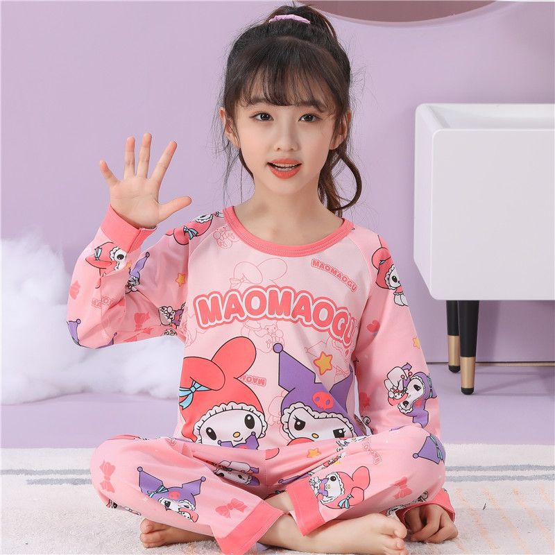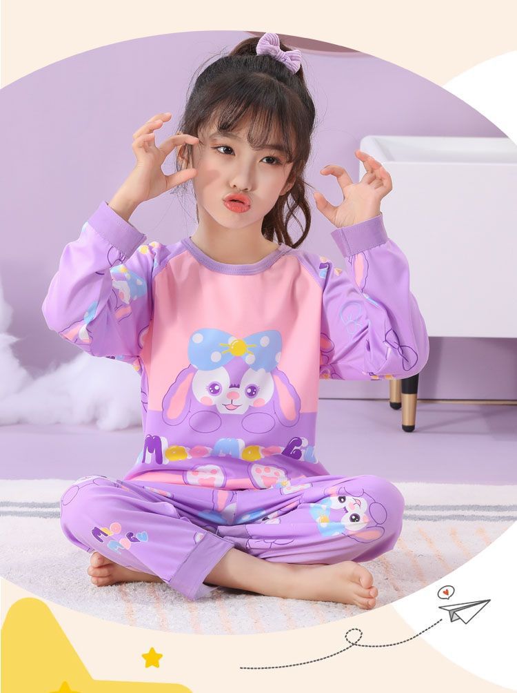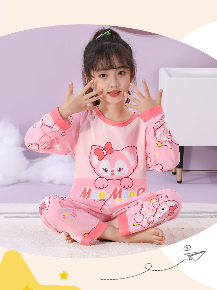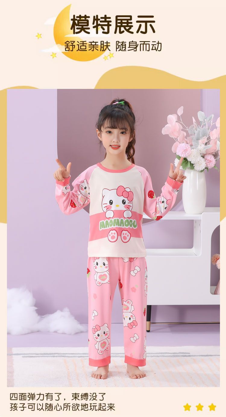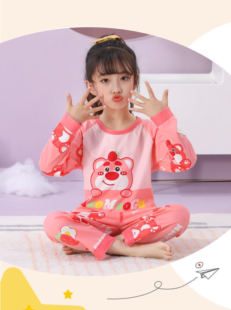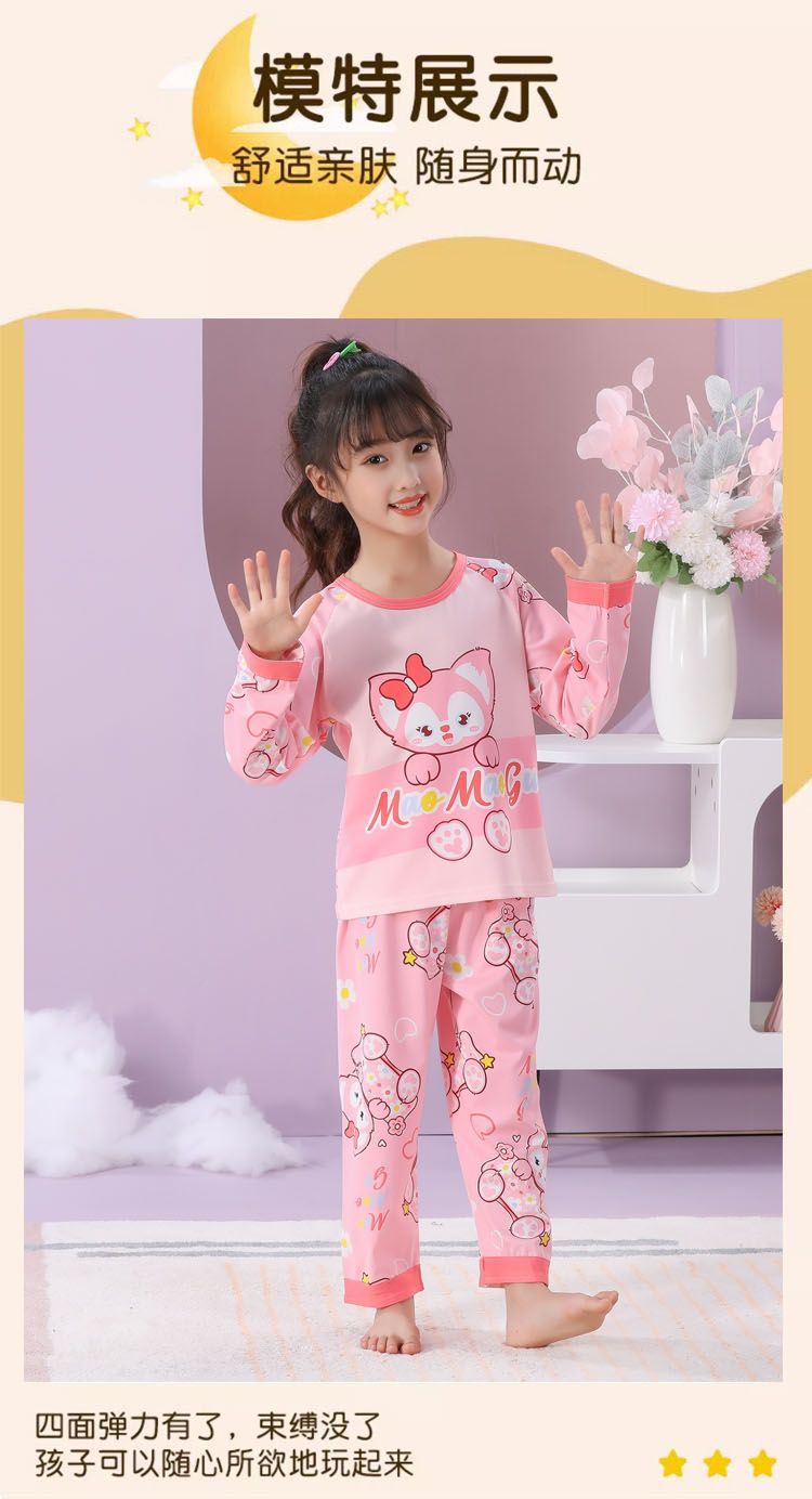 동남아시아 소녀 잠옷 봄과 여름 긴팔 어린이 세트 만화 귀여운 소녀 아기는 야외 홈웨어를 입을 수 있습니다스토어 가기