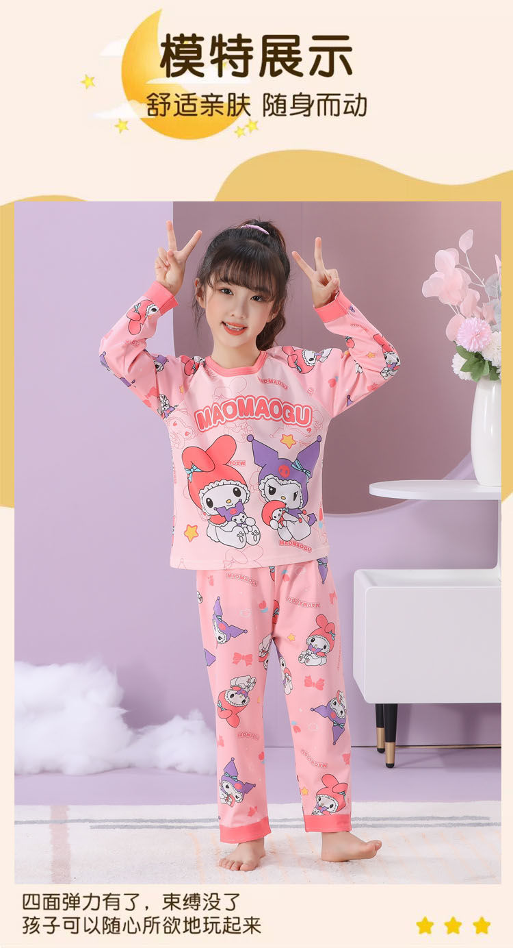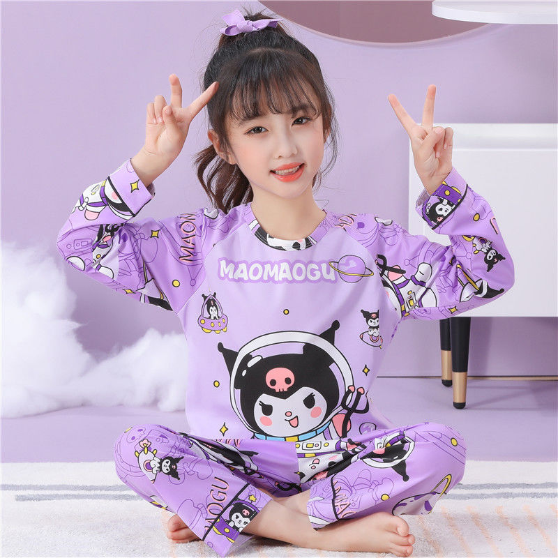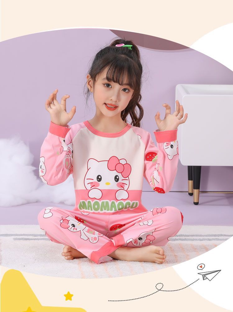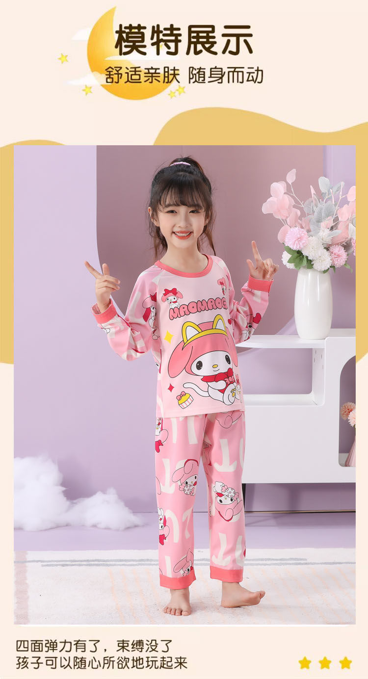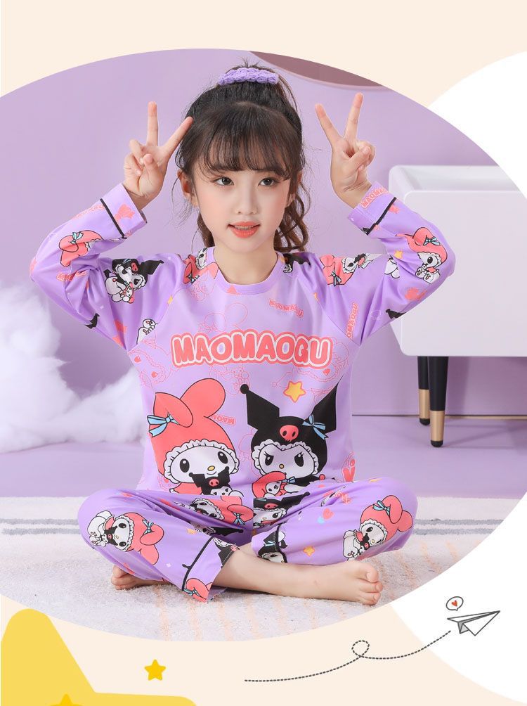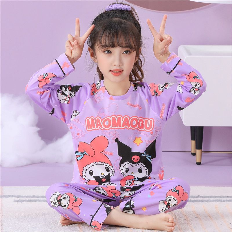 동남아시아 소녀 잠옷 봄과 여름 긴팔 어린이 세트 만화 귀여운 소녀 아기는 야외 홈웨어를 입을 수 있습니다스토어 가기