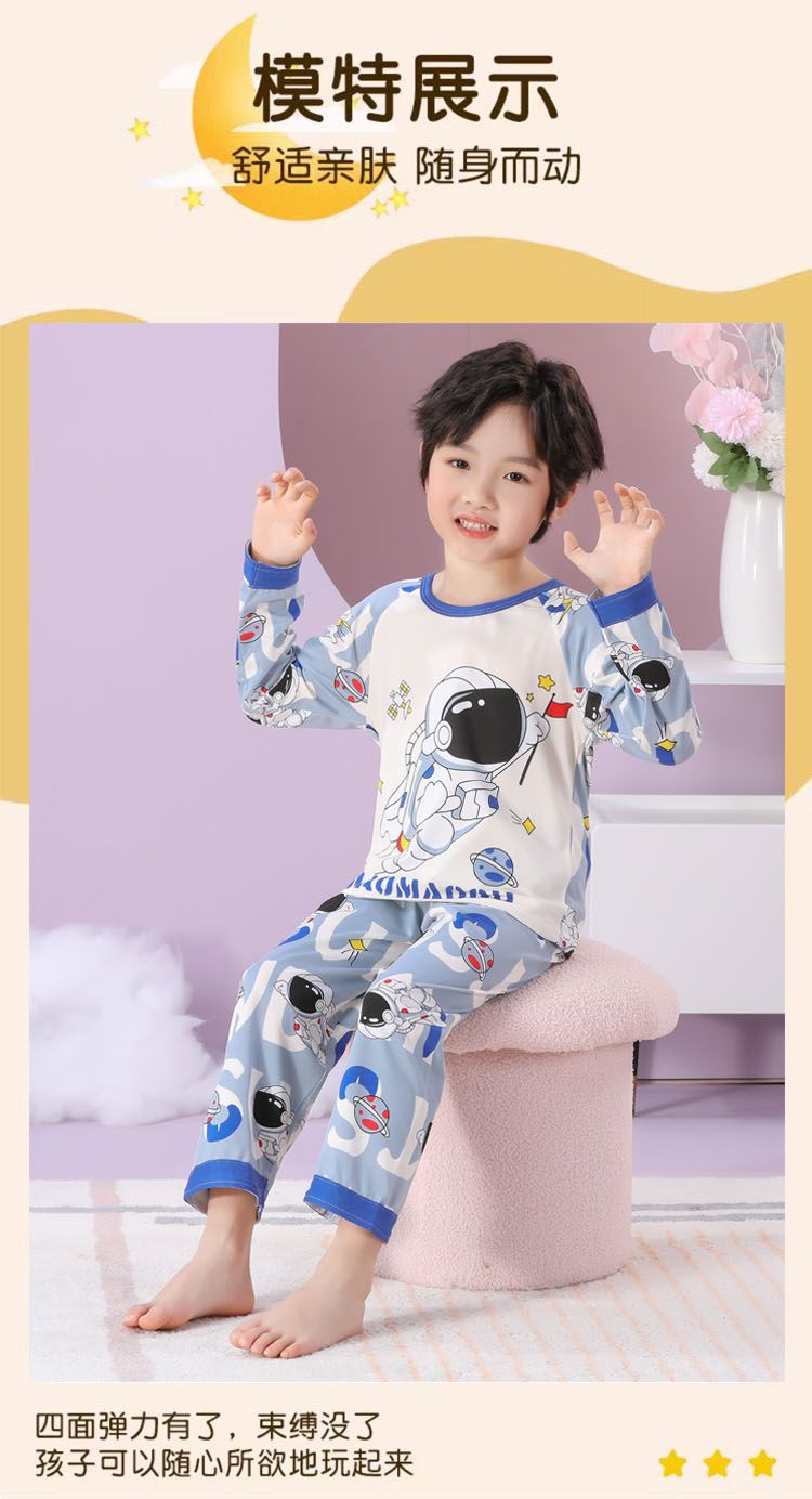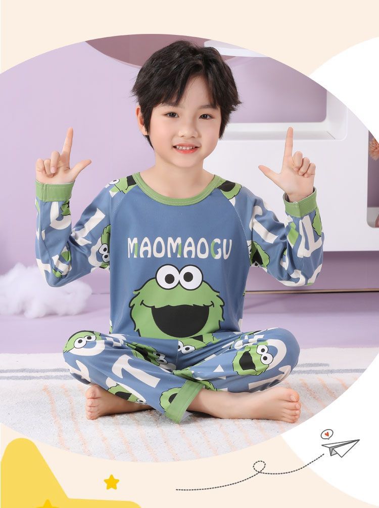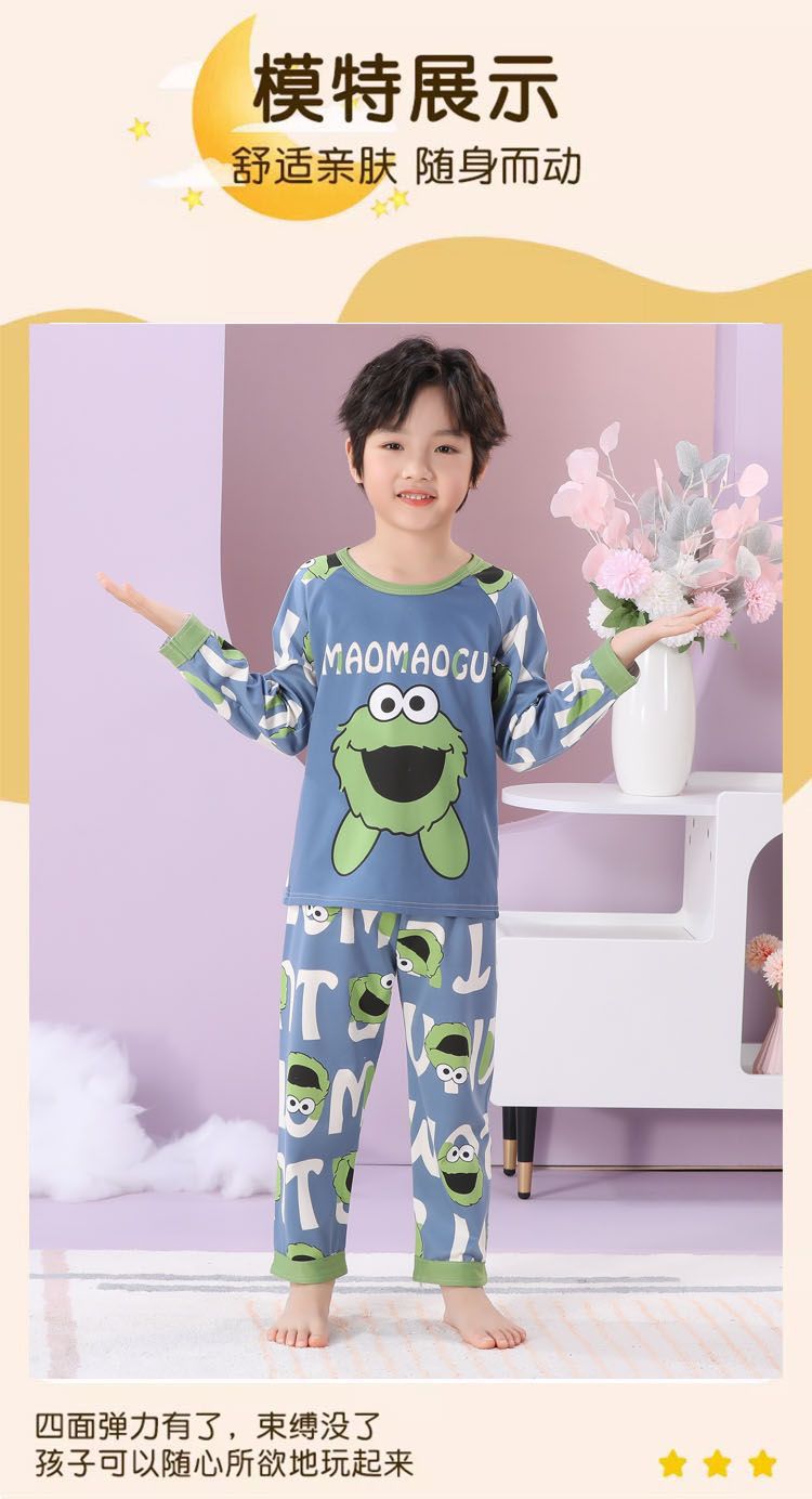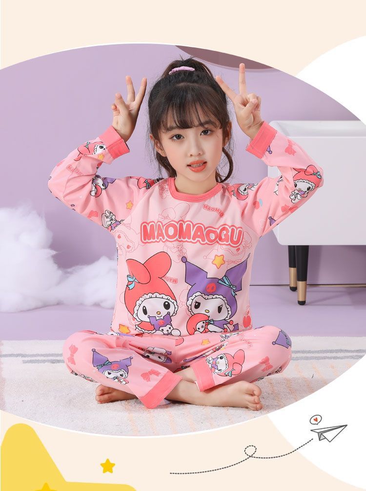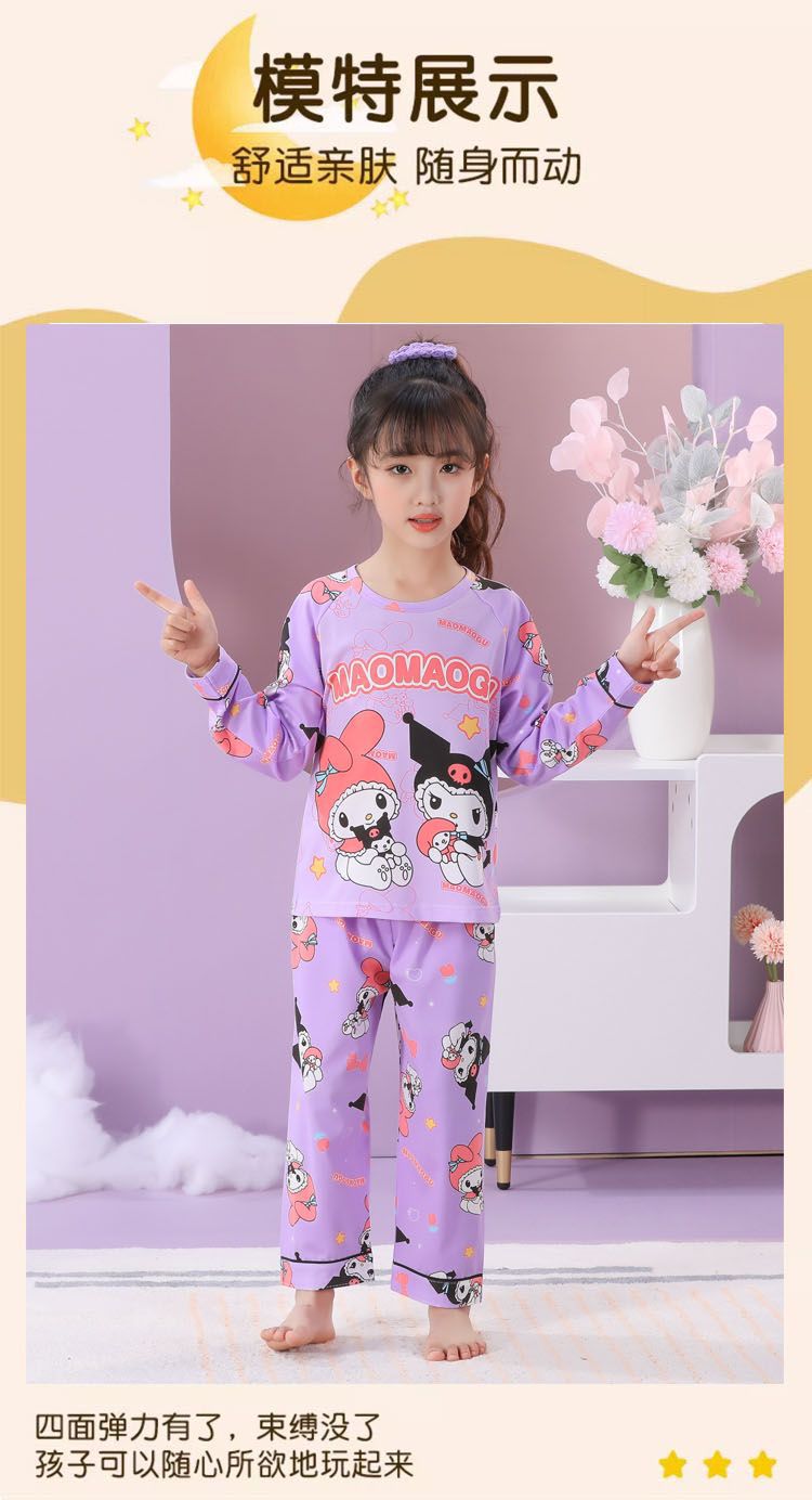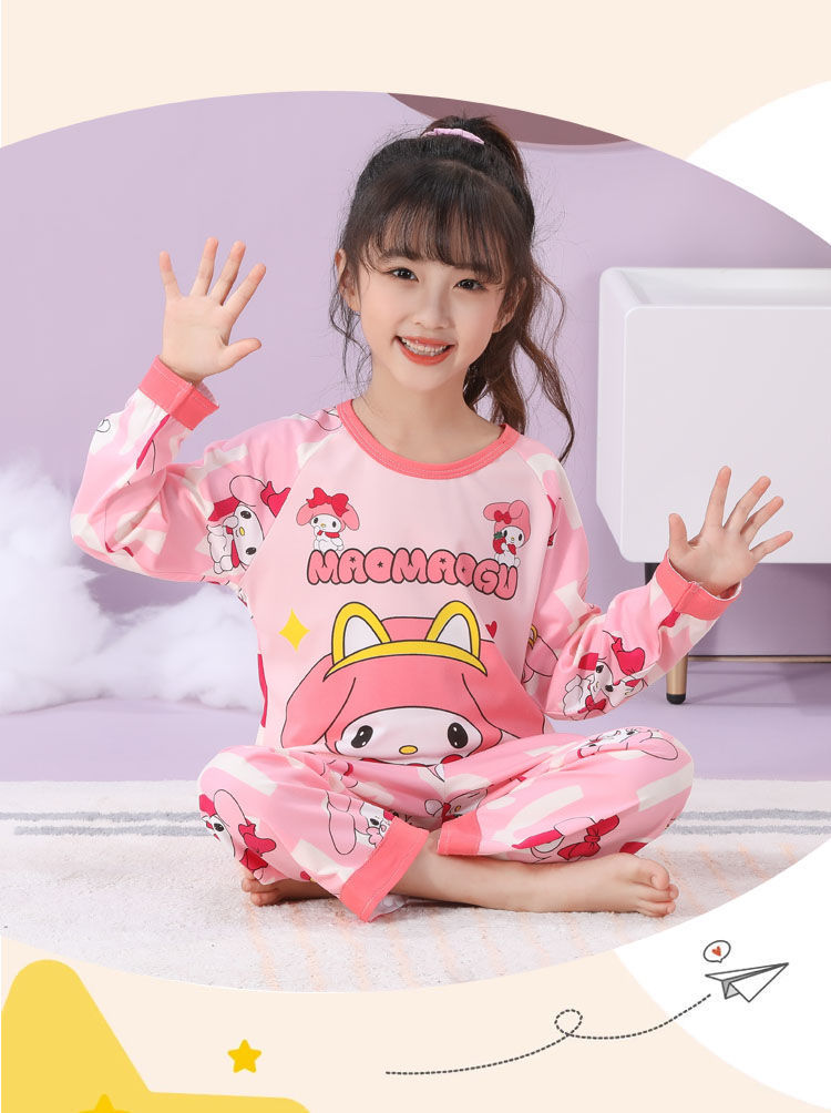 동남아시아 소녀 잠옷 봄과 여름 긴팔 어린이 세트 만화 귀여운 소녀 아기는 야외 홈웨어를 입을 수 있습니다스토어 가기