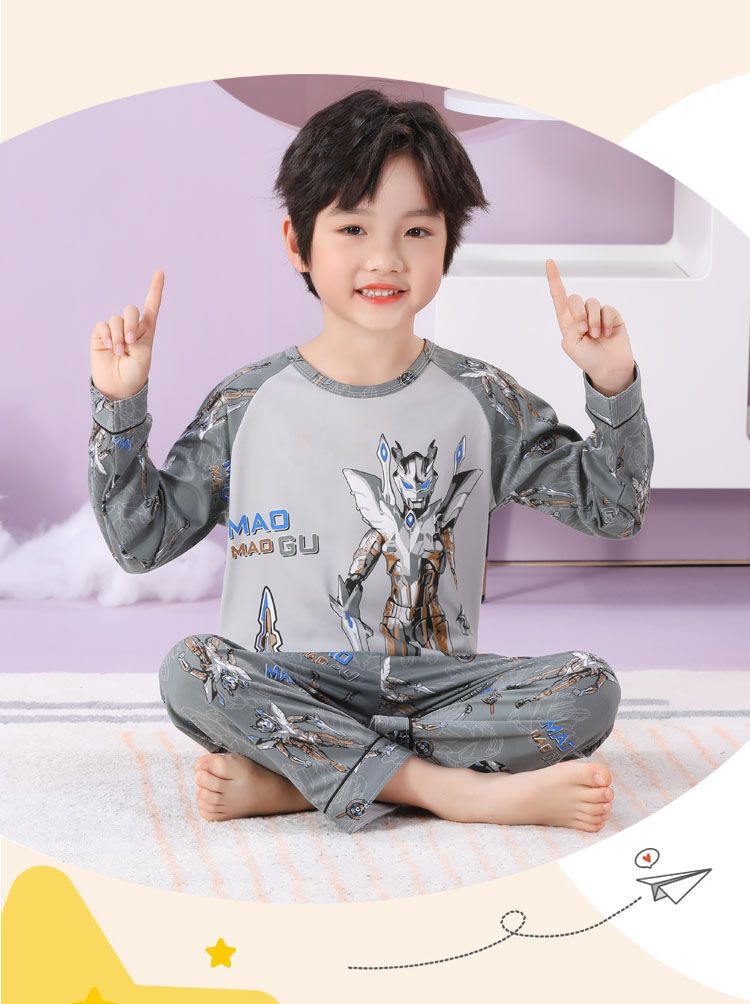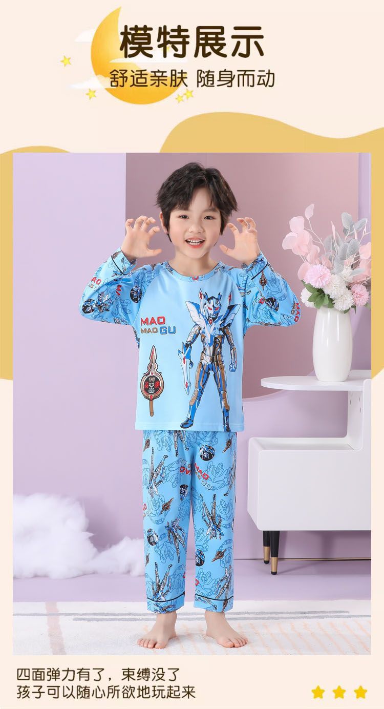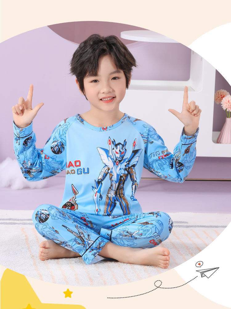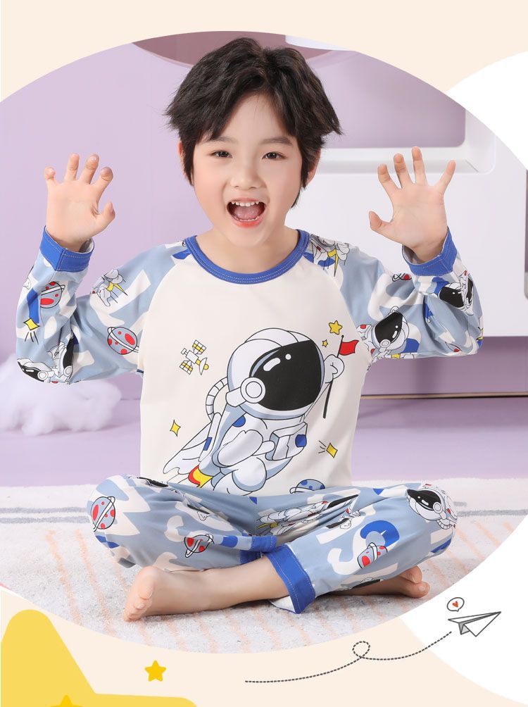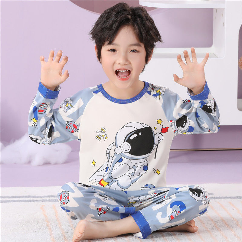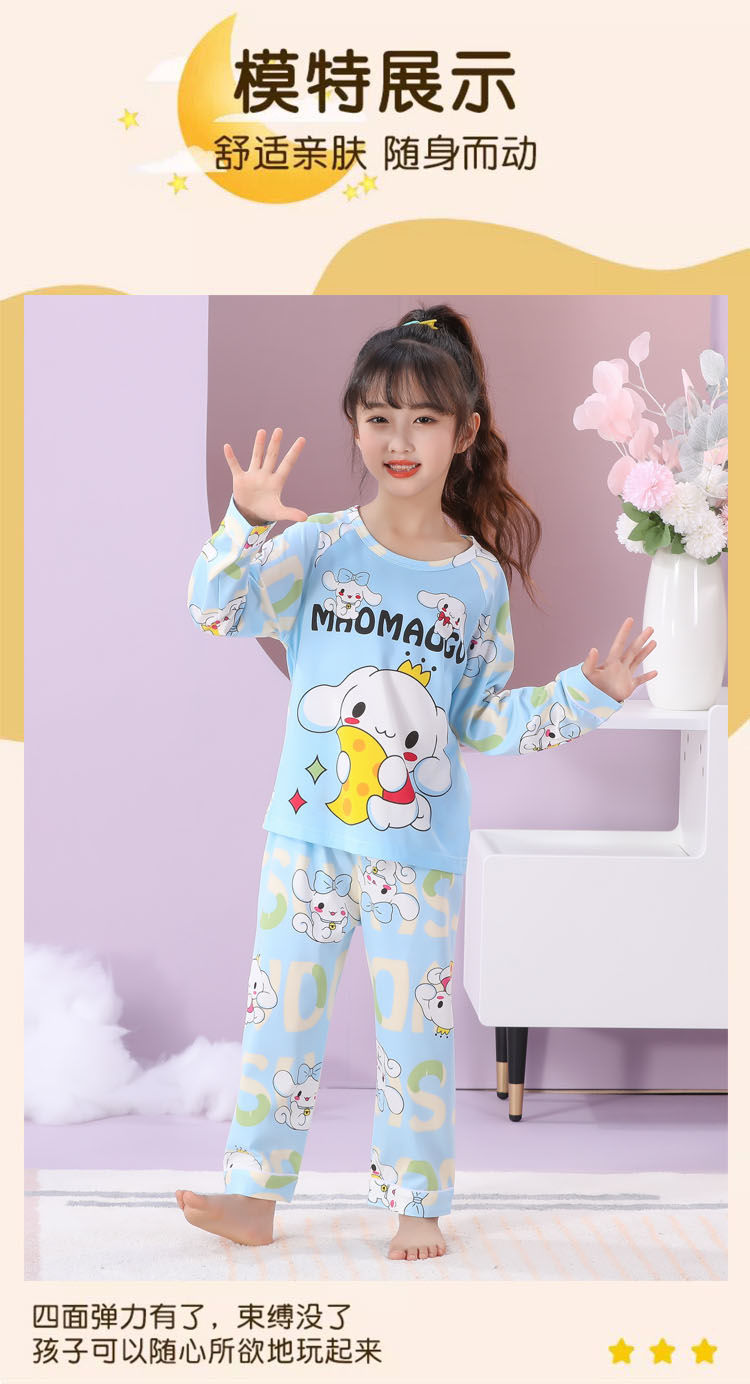 동남아시아 소녀 잠옷 봄과 여름 긴팔 어린이 세트 만화 귀여운 소녀 아기는 야외 홈웨어를 입을 수 있습니다
