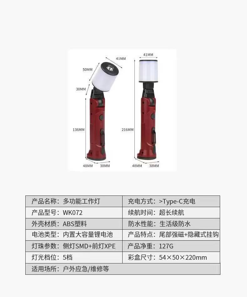 COB 작업 빛 360 도 회전 자동차 야외 wk071 비상 조명 유지 보수 빛 멀티 앵글 회전 강한 자기