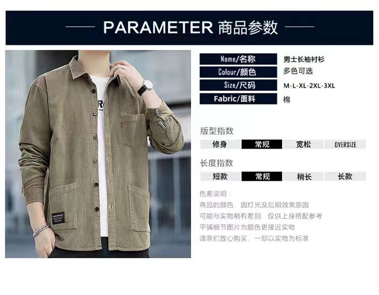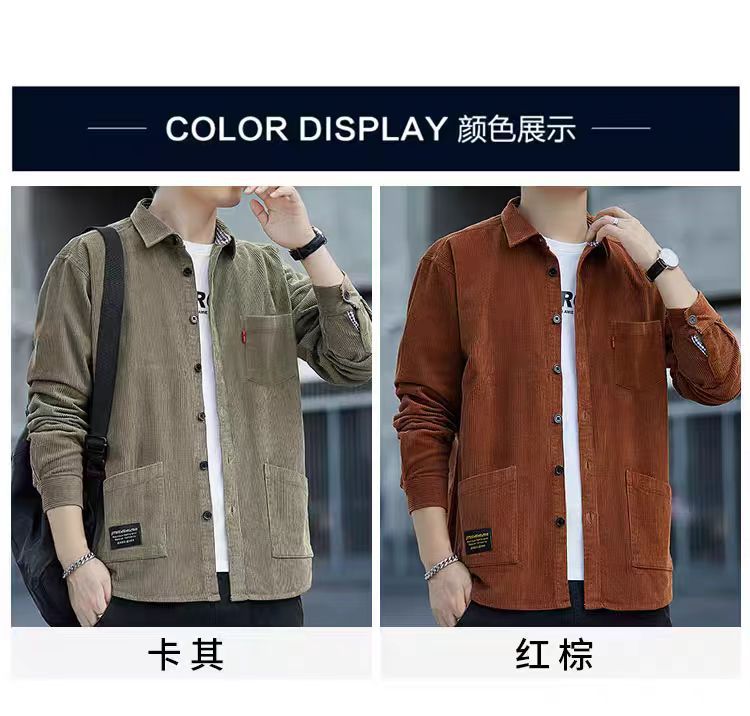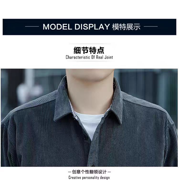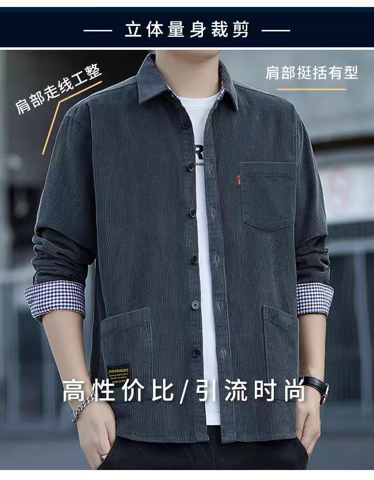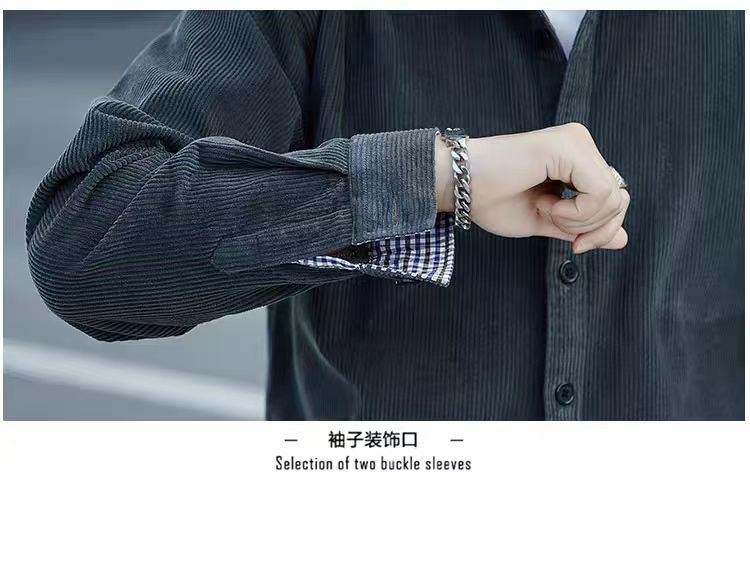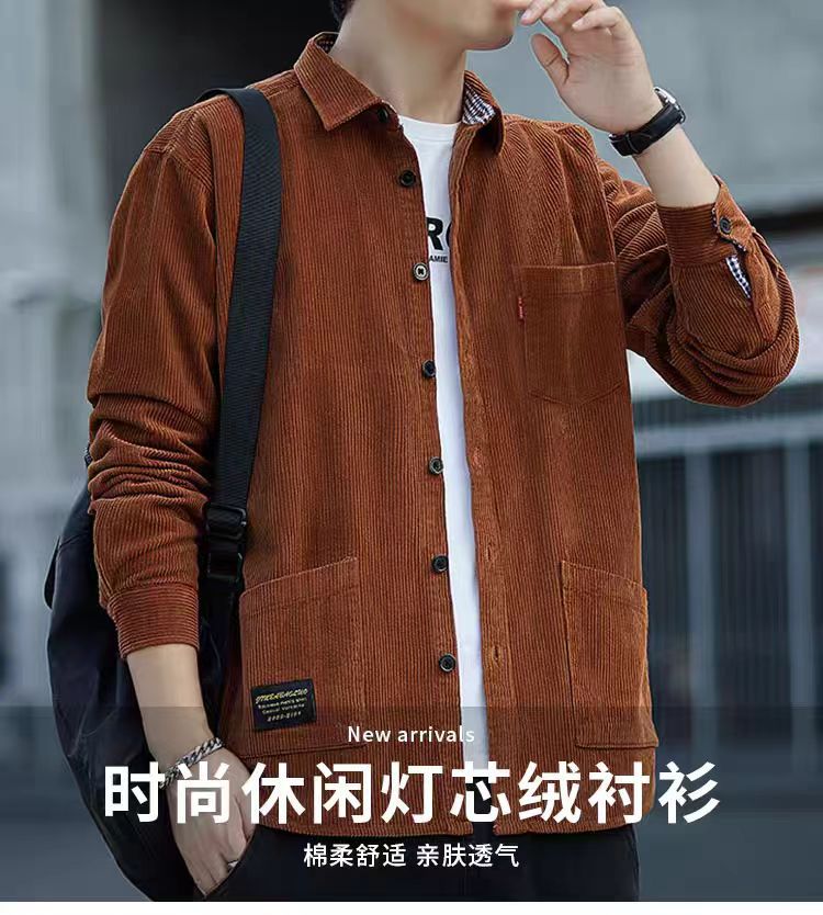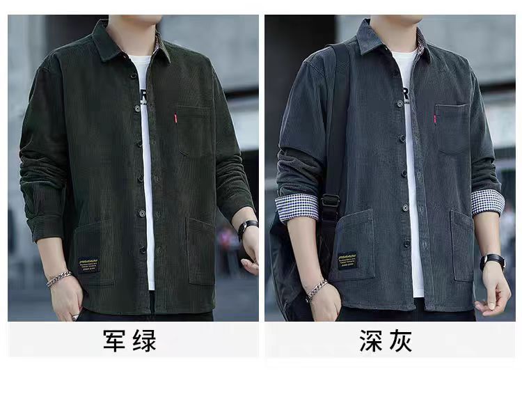 원피스 배달 코듀로이 긴팔 셔츠 남성 셔츠 순면 작업복 재킷 루안 잘 생긴 캐주얼 남성 사업