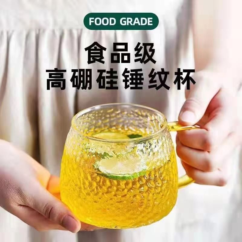망치 유리 간단한 Ins 스타일 여성 워터 컵 가정용 방열 폭발-핸들 티 컵이있는 드루킹 컵