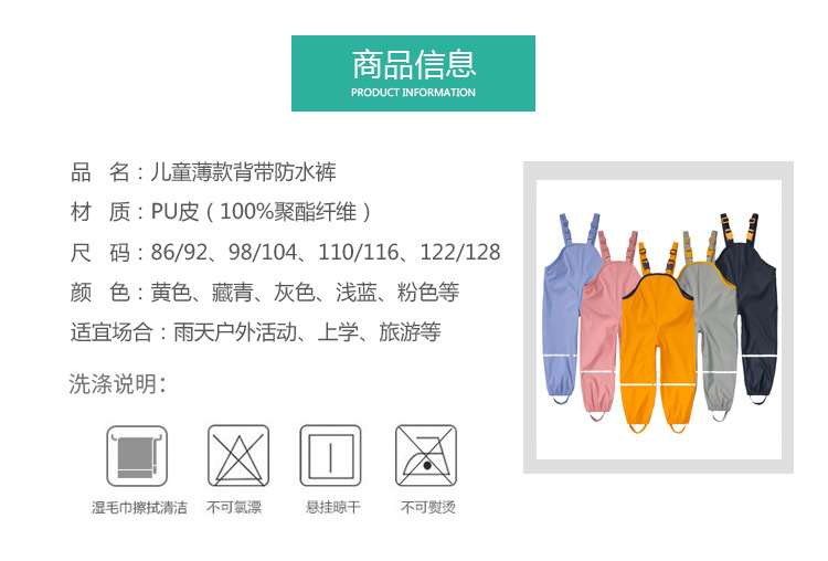 어린이 PU 스트랩 레인 팬츠 봄 어린이 레인 기어 유치원 어린이 원피스 방수 통기성 야외 전투 바지스토어 가기