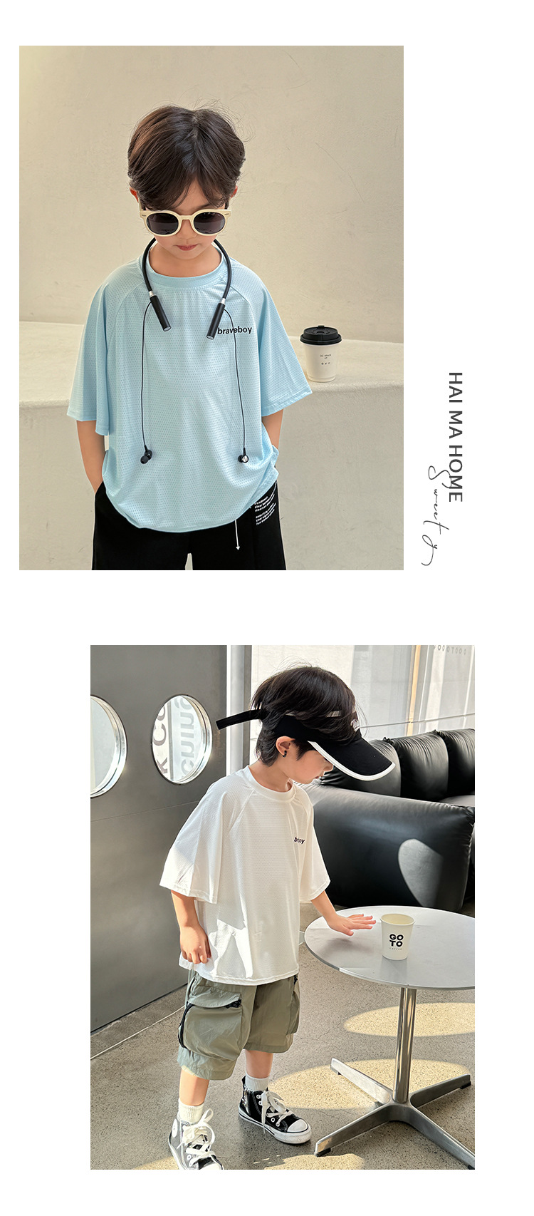 하이마아 가족 남아 2026 여름 신상 시원한 속건성 의류 여름옷 한국 스타일 아동복 반팔 티셔츠 스포츠웨어스토어 가기