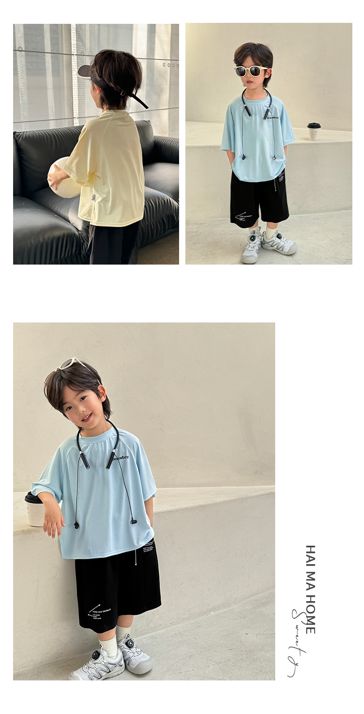 하이마아 가족 남아 2026 여름 신상 시원한 속건성 의류 여름옷 한국 스타일 아동복 반팔 티셔츠 스포츠웨어