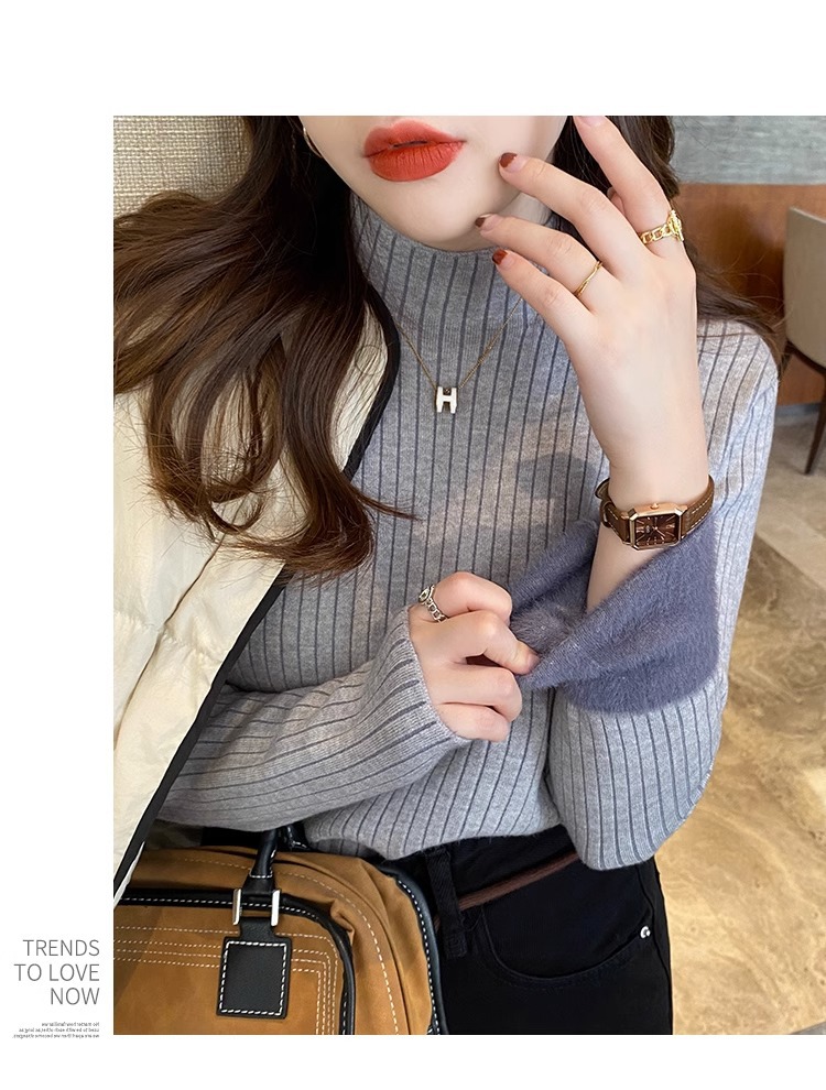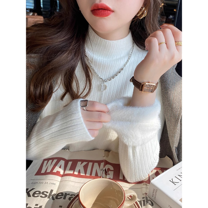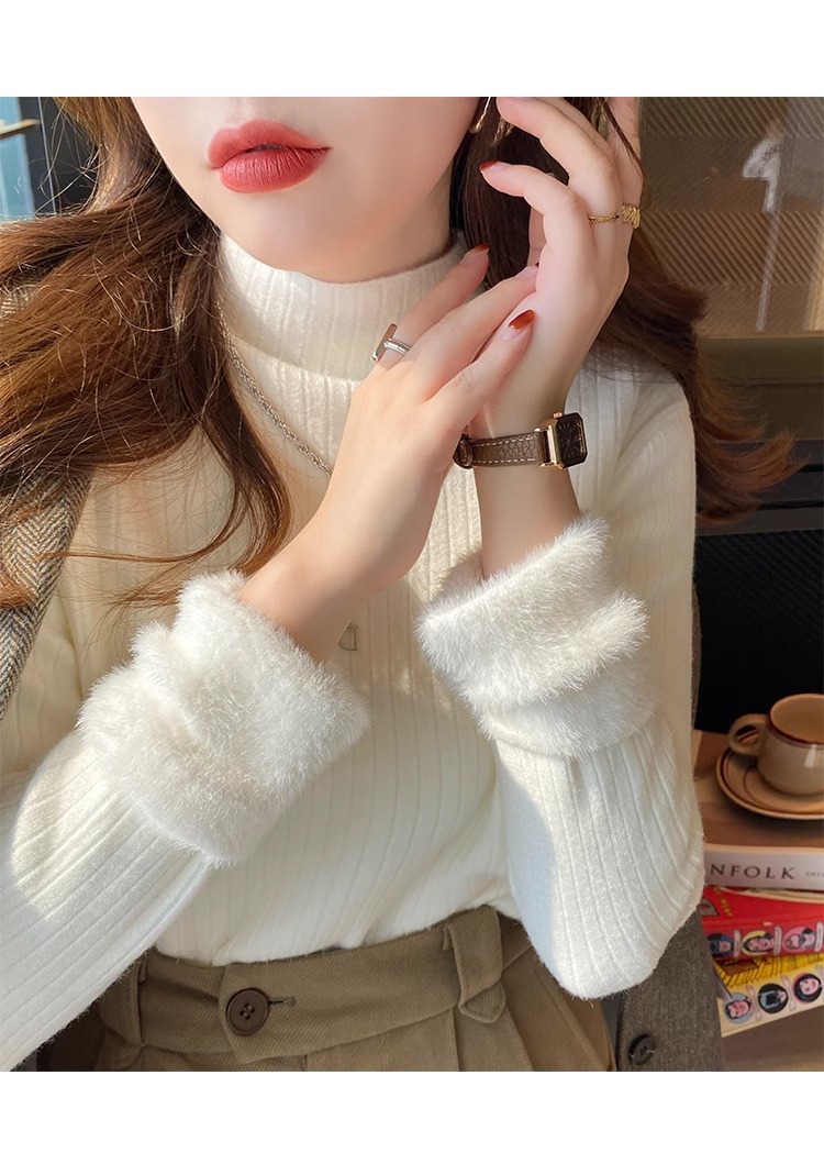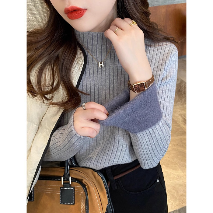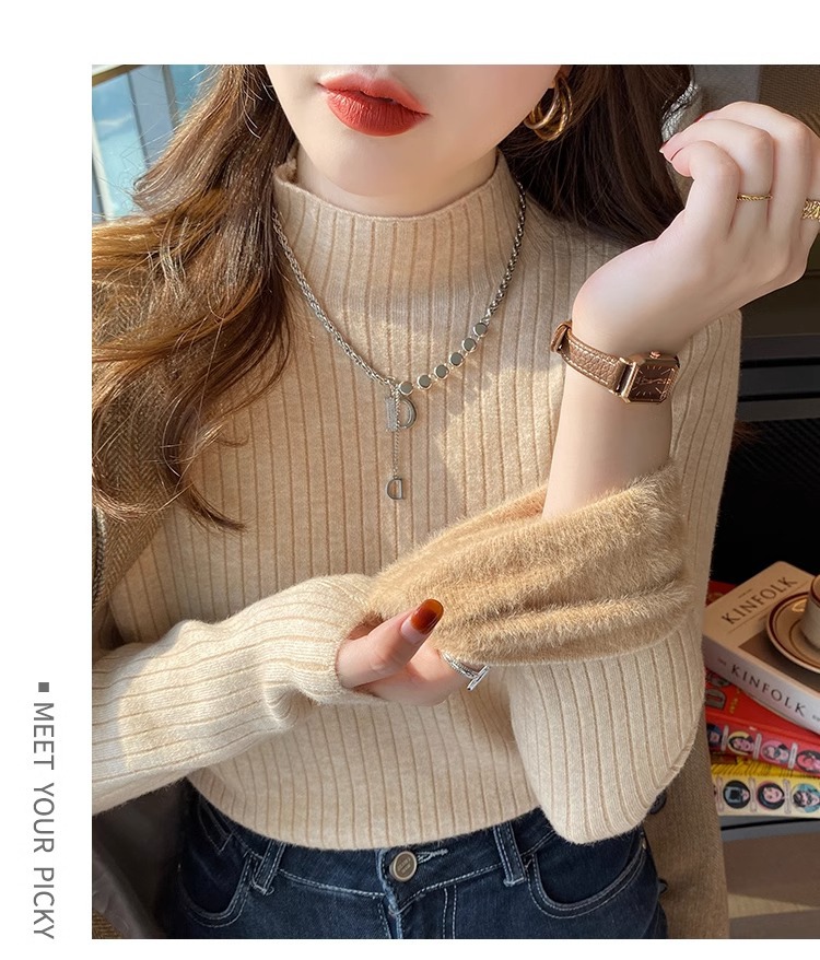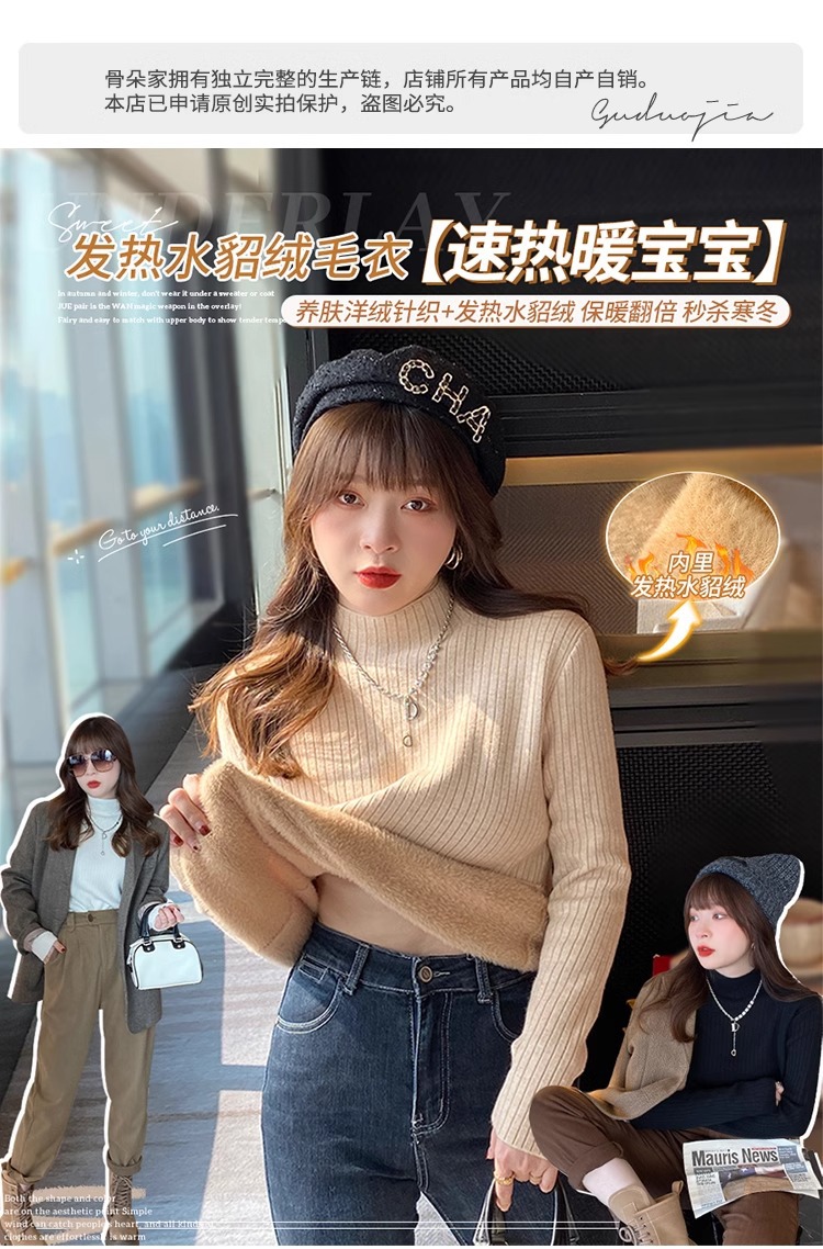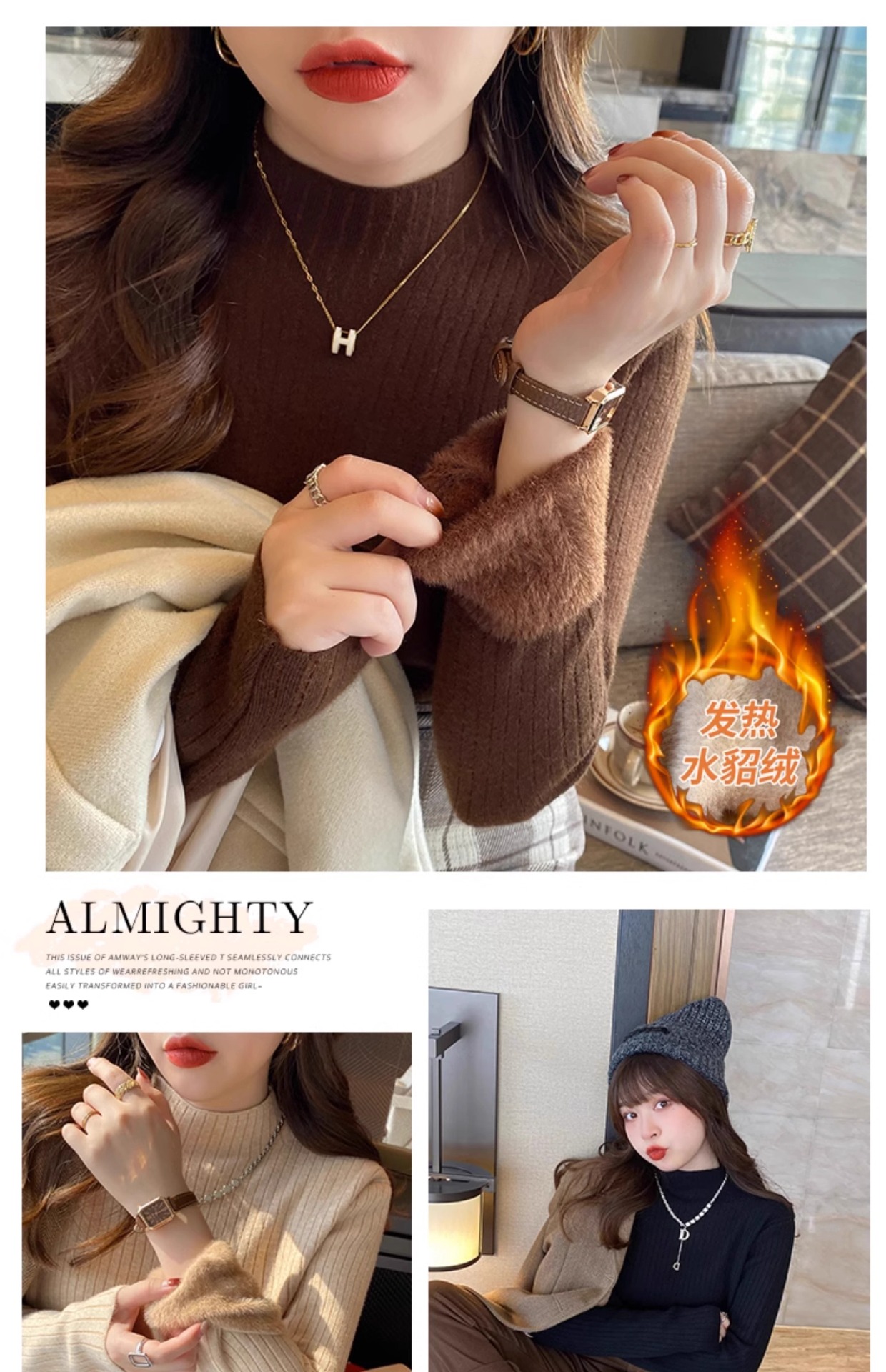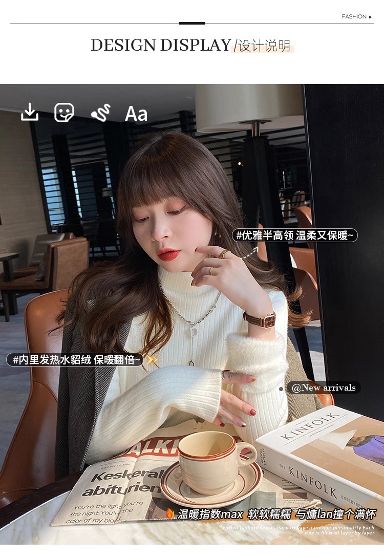 2024년 신상 스웨터, 기모 안감 두꺼운 여성용 가을 겨울 이너웨어, 하이넥 니트, 우아한 분위기스토어 가기