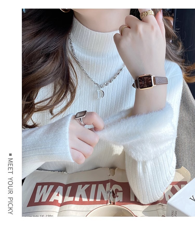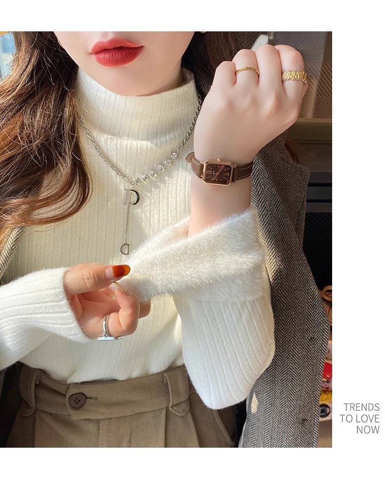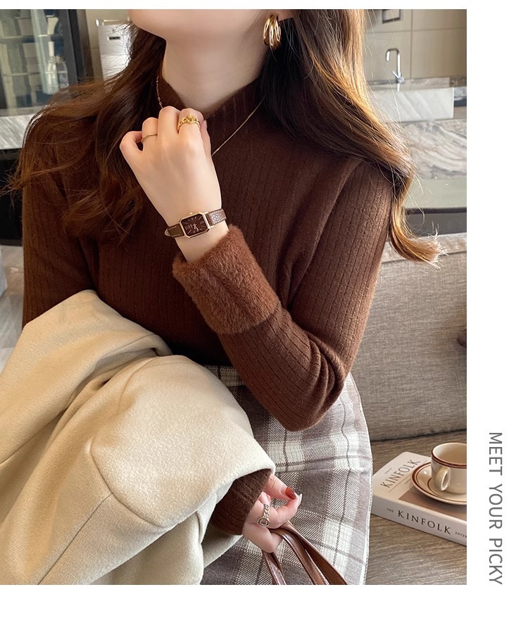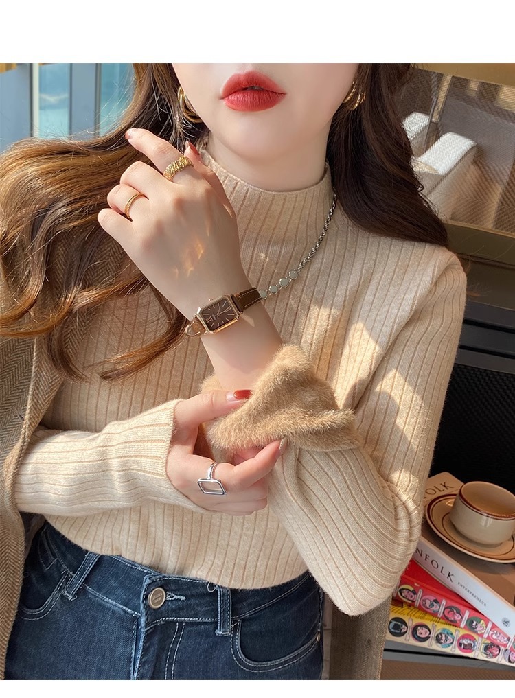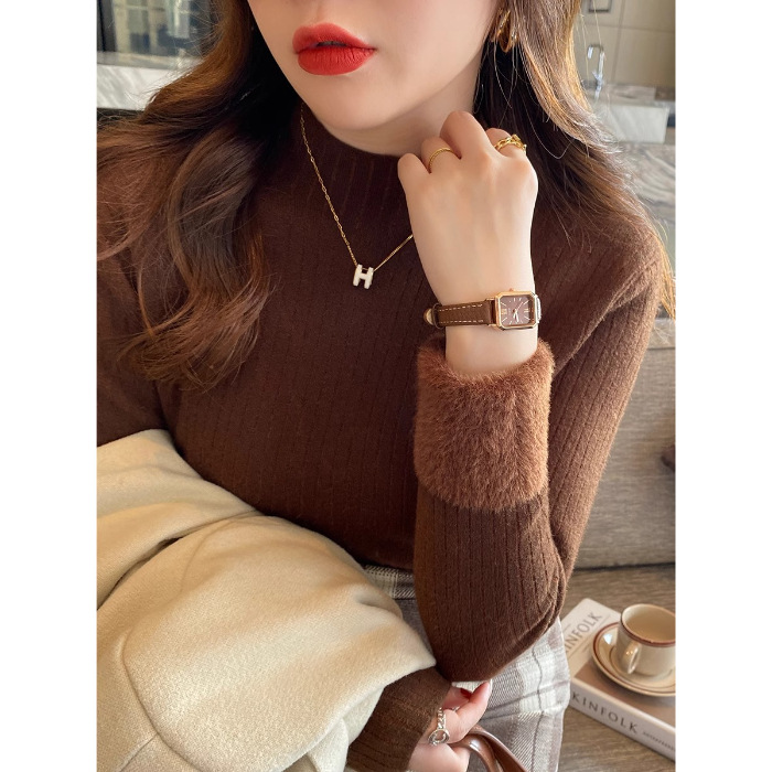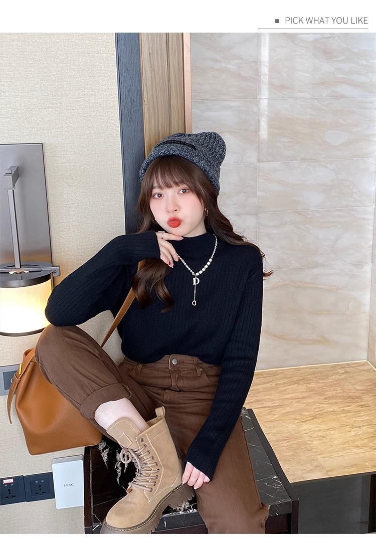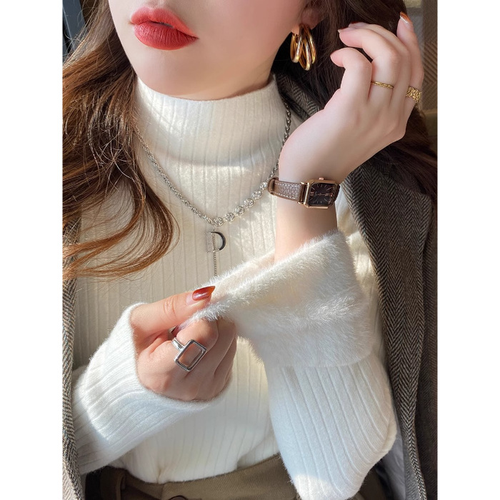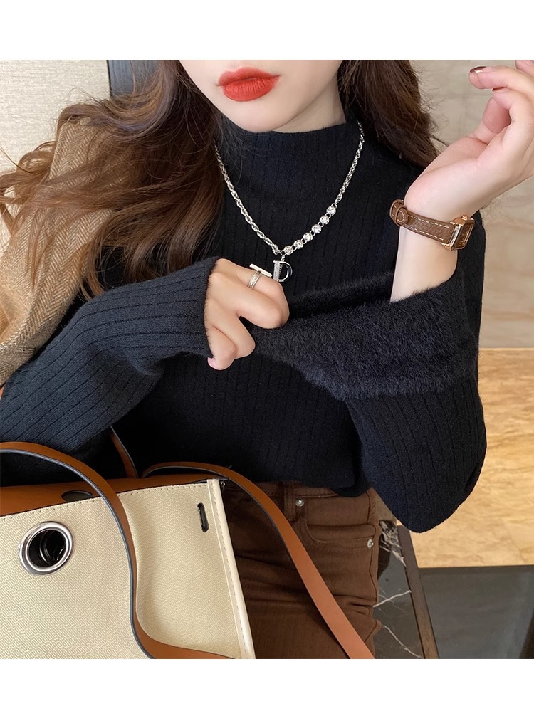 2024년 신상 스웨터, 기모 안감 두꺼운 여성용 가을 겨울 이너웨어, 하이넥 니트, 우아한 분위기스토어 가기