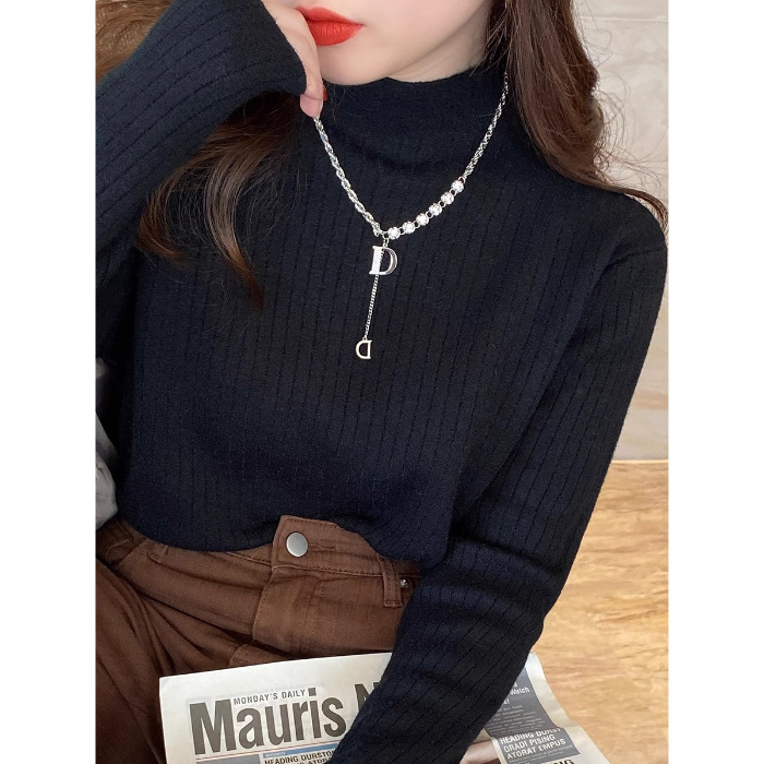 2024년 신상 스웨터, 기모 안감 두꺼운 여성용 가을 겨울 이너웨어, 하이넥 니트, 우아한 분위기
