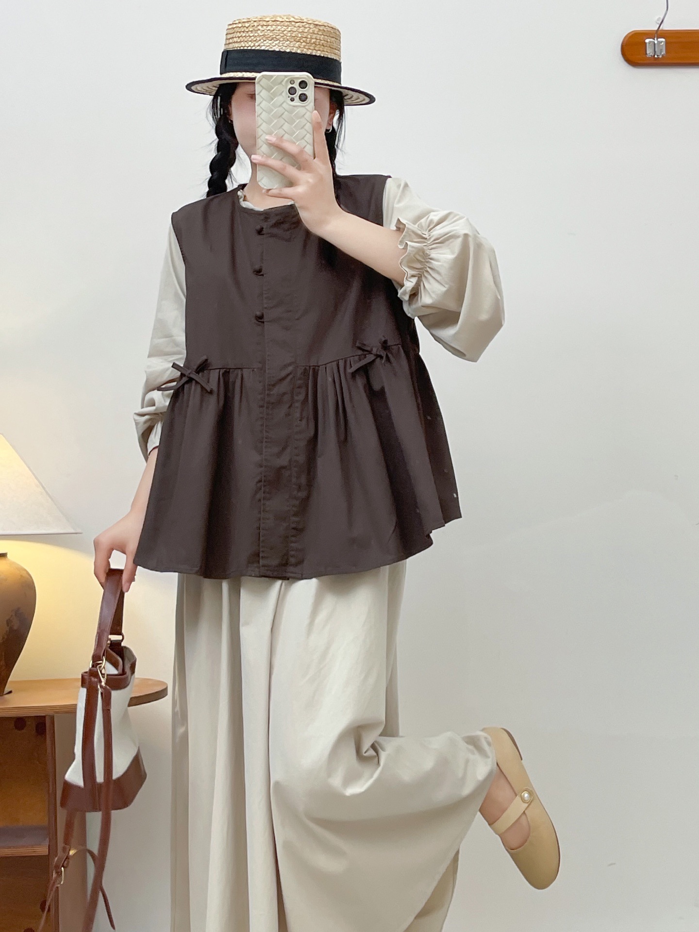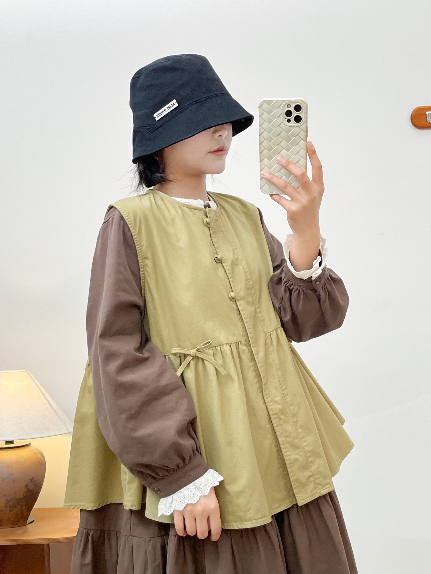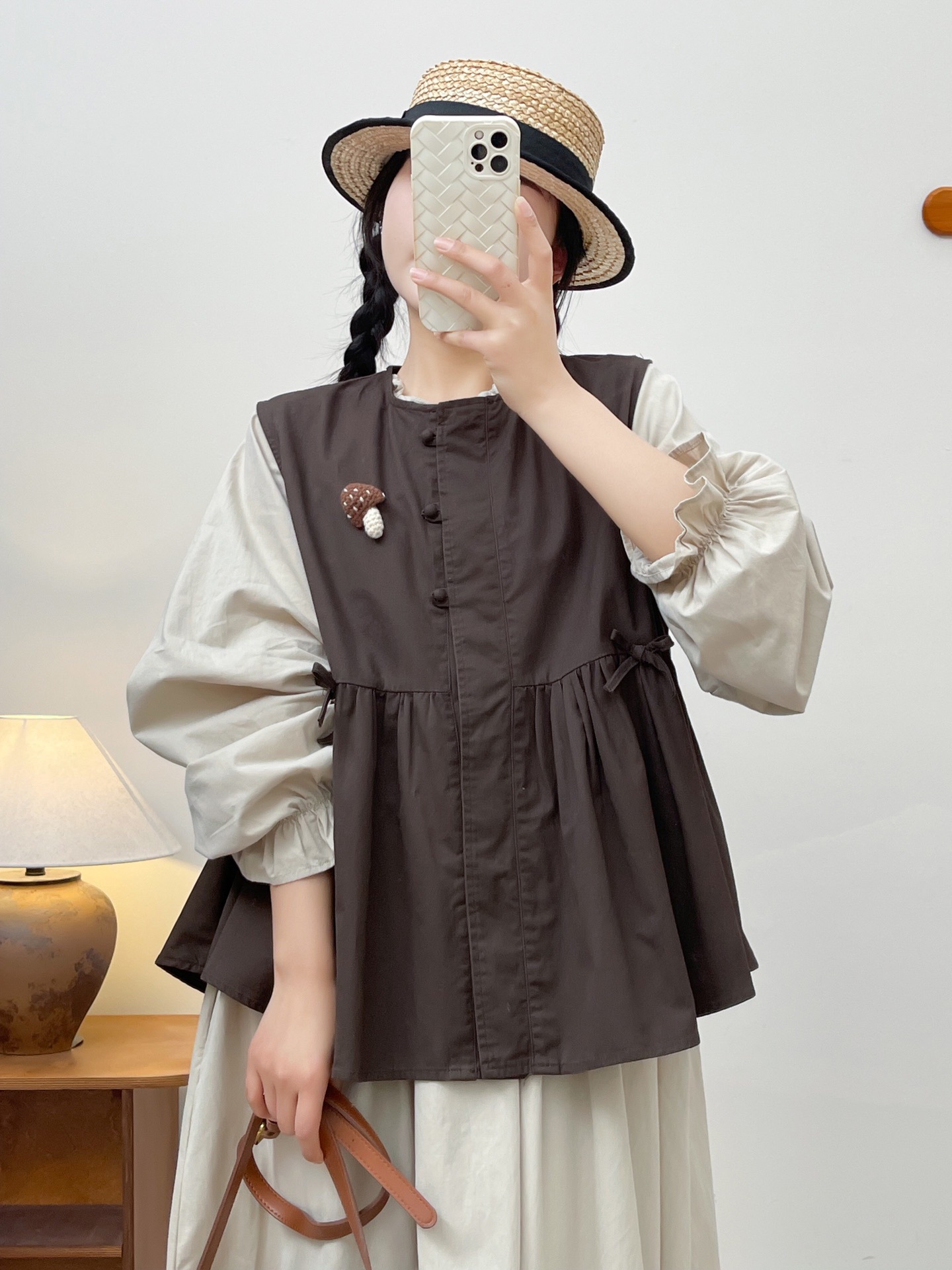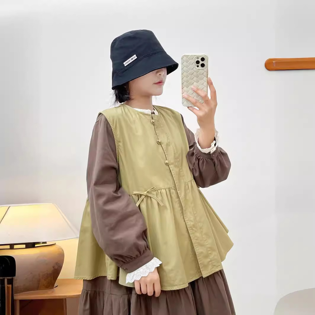 초봄 2024 여성을위한 레트로 레이스 업 푹신한 조끼 한국식 연령 감소 느슨한 모리 여성 외투 조끼스토어 가기