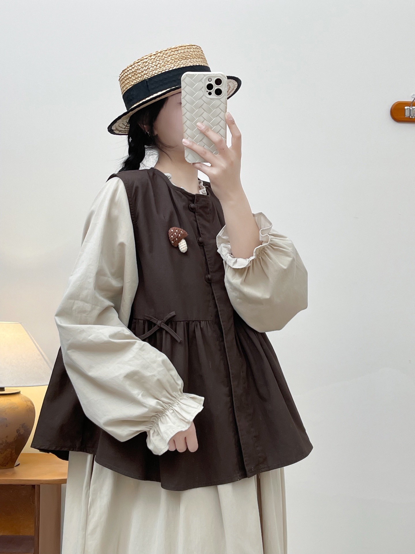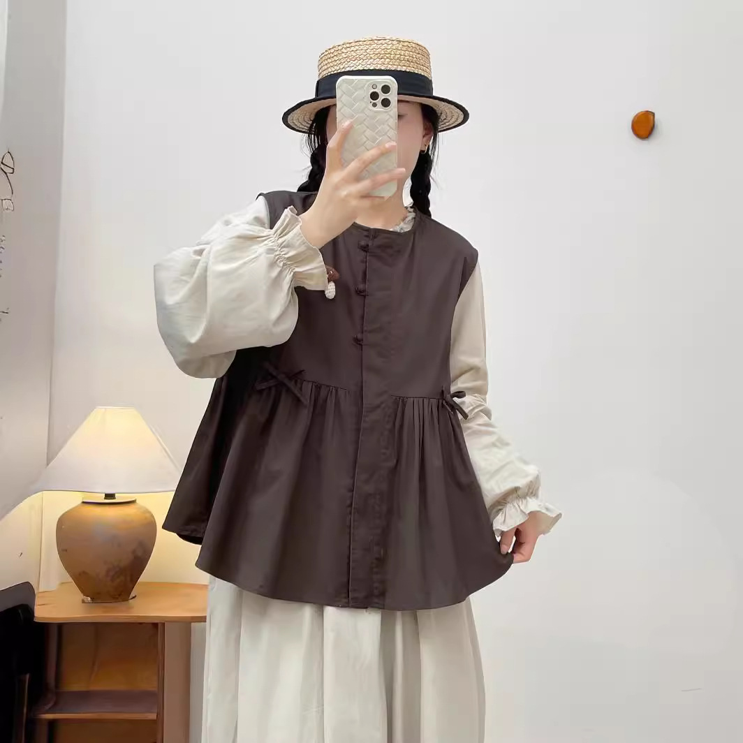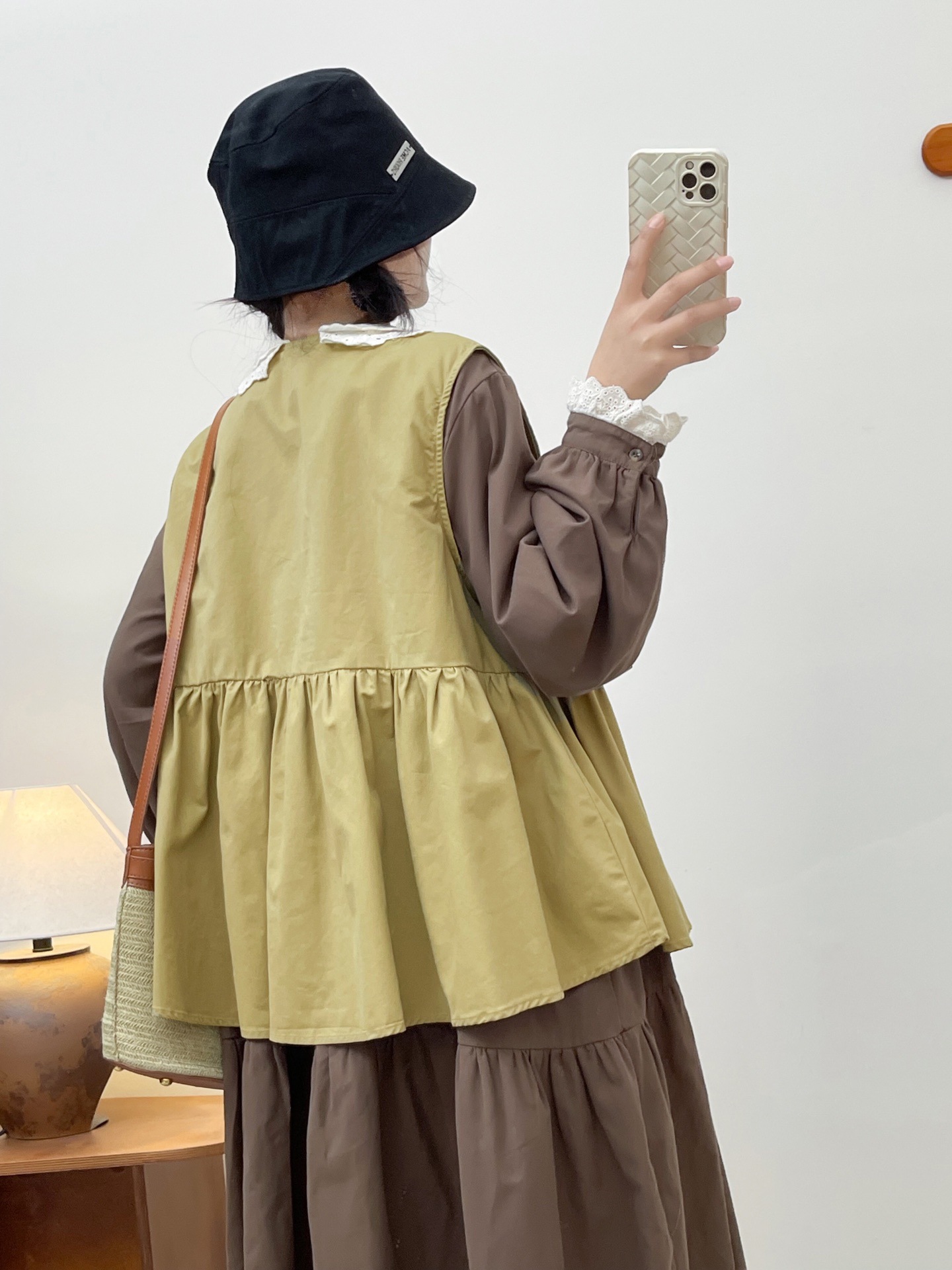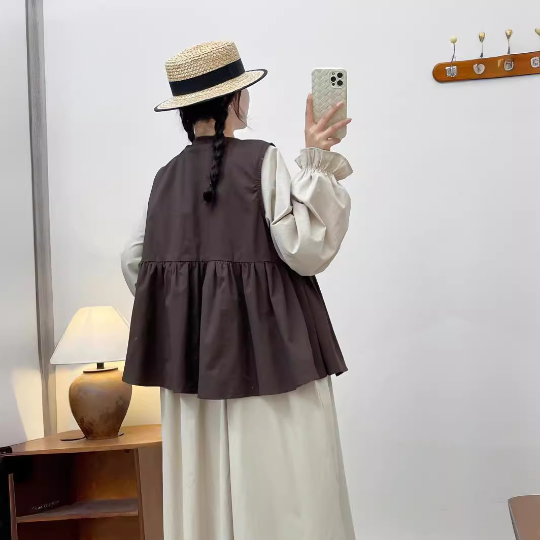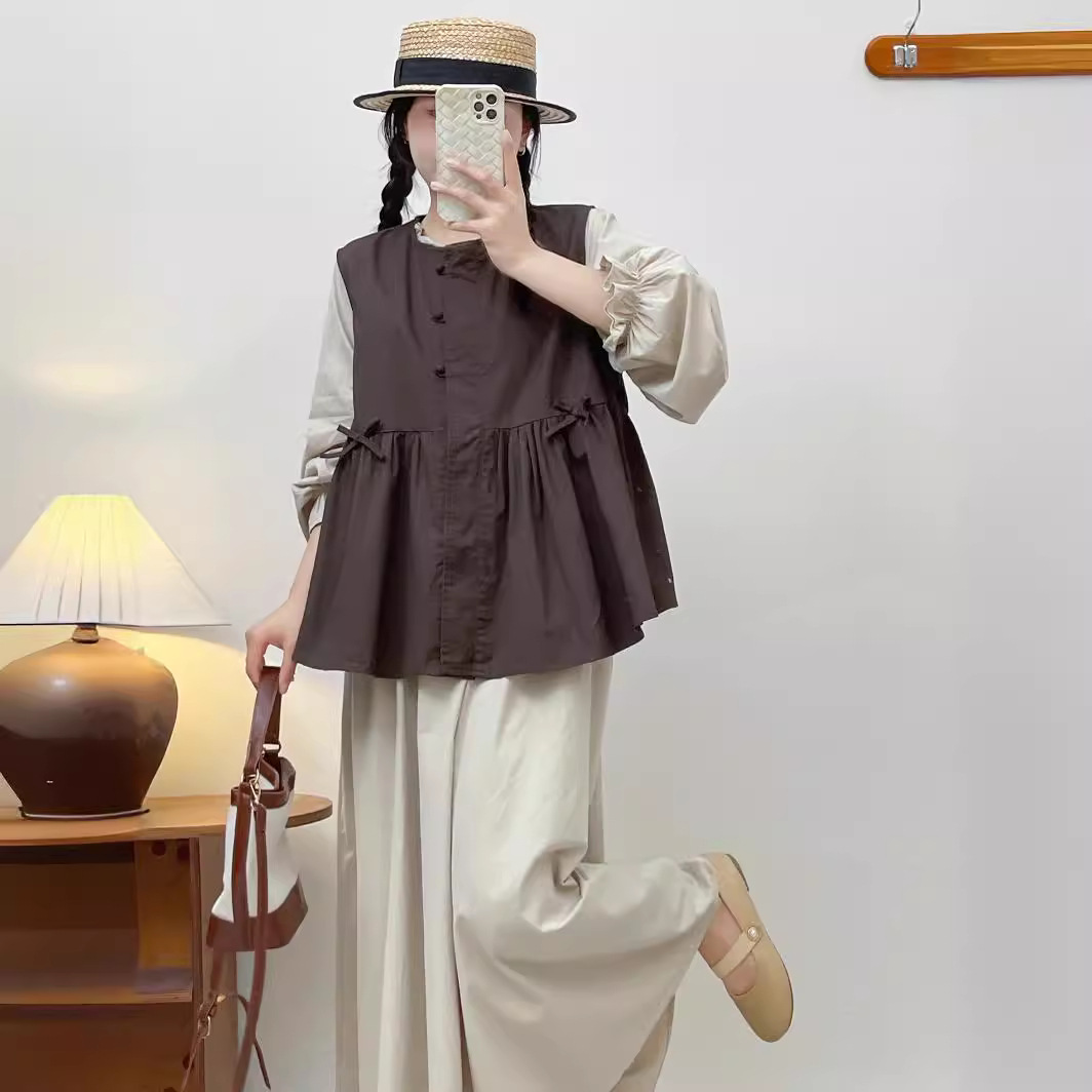 초봄 2024 여성을위한 레트로 레이스 업 푹신한 조끼 한국식 연령 감소 느슨한 모리 여성 외투 조끼스토어 가기