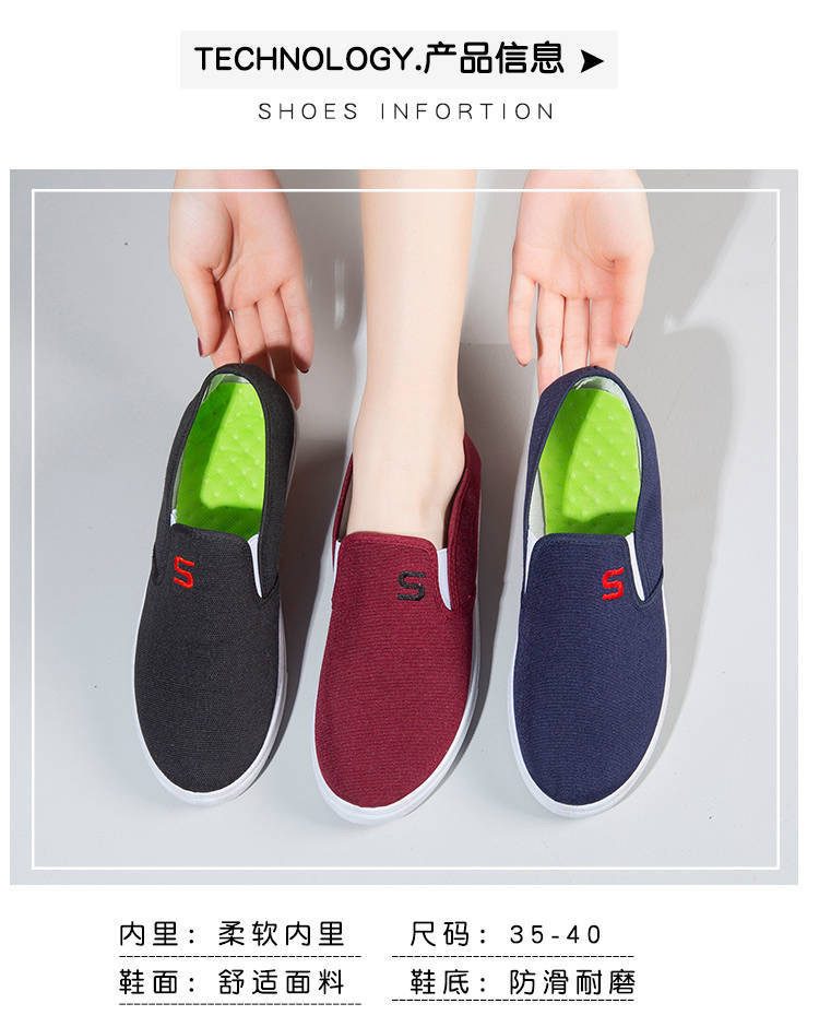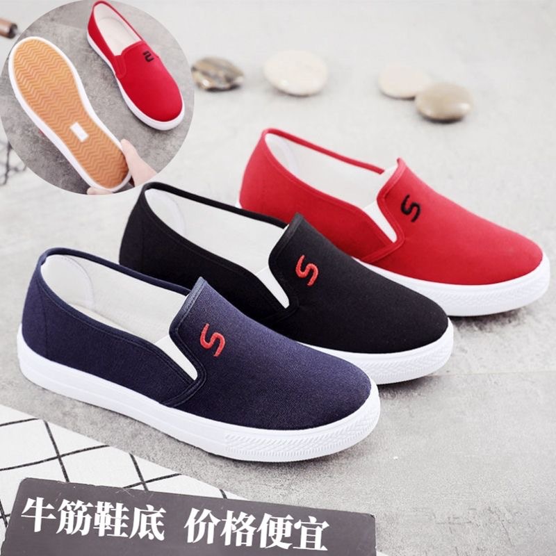 Tendon 바닥 봄과 가을 여성의 오래된 베이징 천 신발 데님 캔버스 신발 플랫 캐주얼 미끄럼 방지 작업 로우 탑 보드 신발 대학스토어 가기