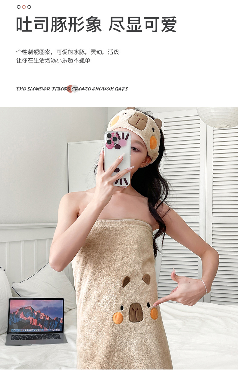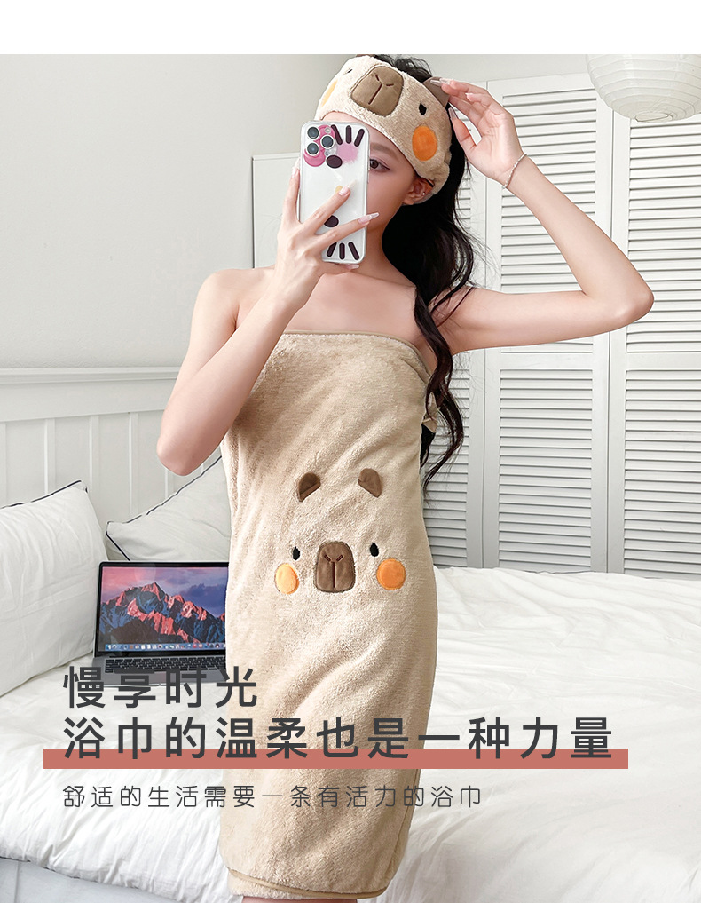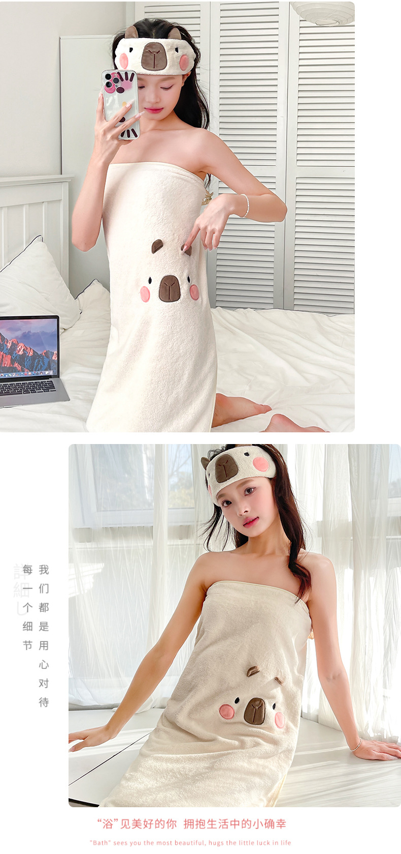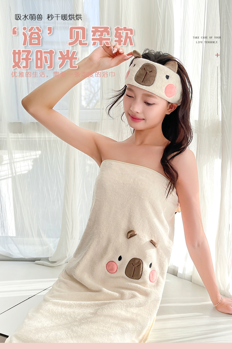 귀여운 카피바라 어린이 목욕 타월, 산호 벨벳 흡수성 대형 랩 타월, 만화 커플용 두꺼운 여성용 대형 타월, 보풀 없음스토어 가기