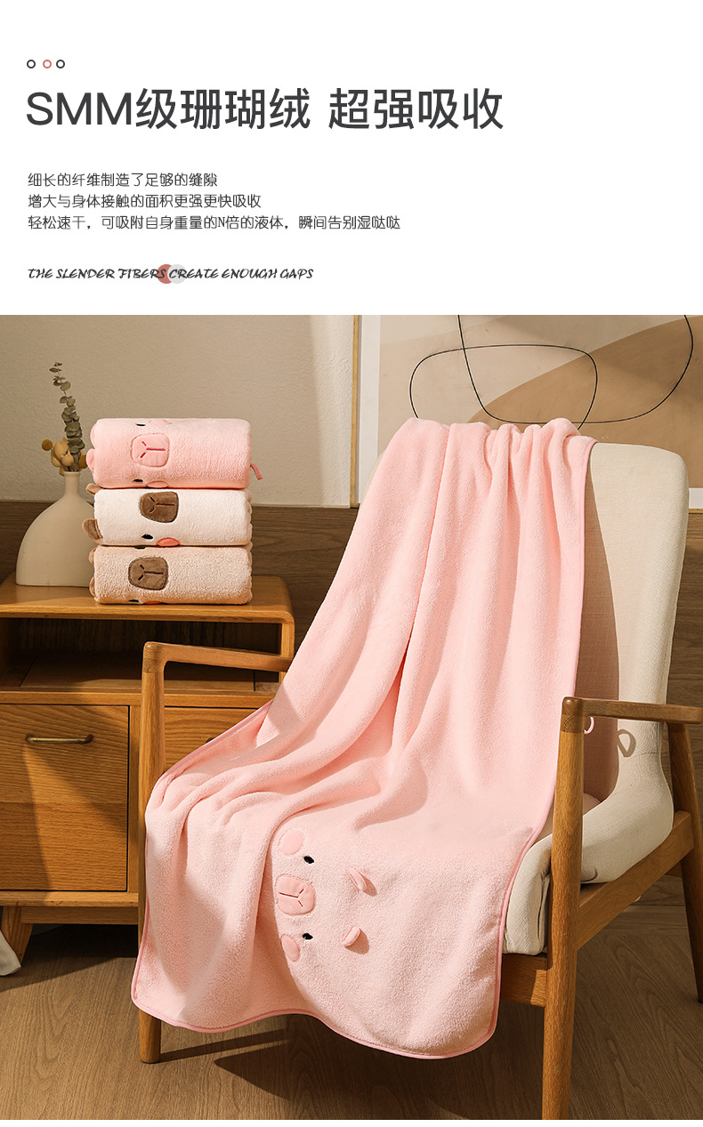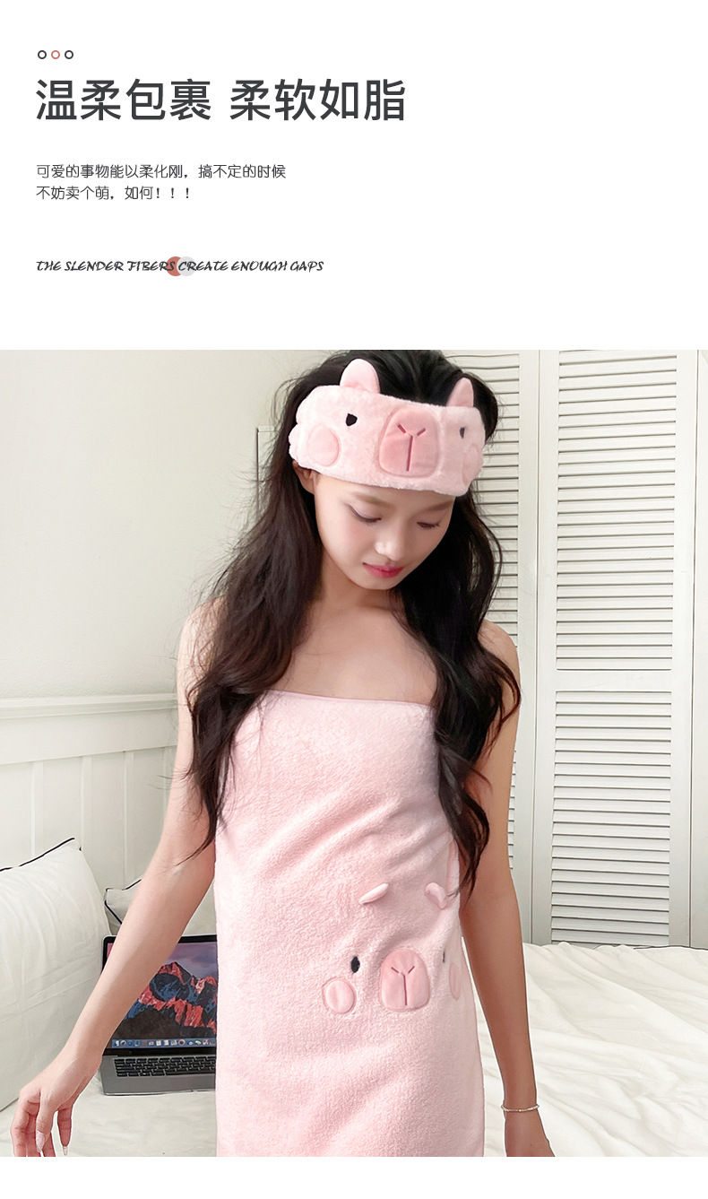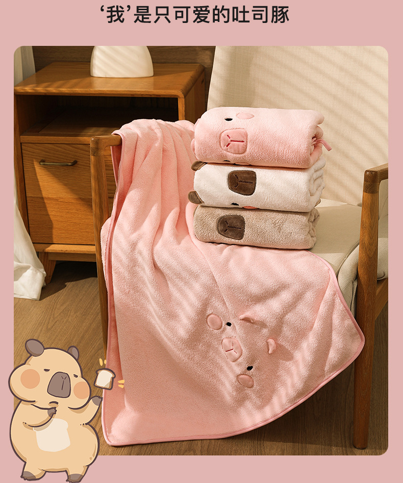 귀여운 카피바라 어린이 목욕 타월, 산호 벨벳 흡수성 대형 랩 타월, 만화 커플용 두꺼운 여성용 대형 타월, 보풀 없음