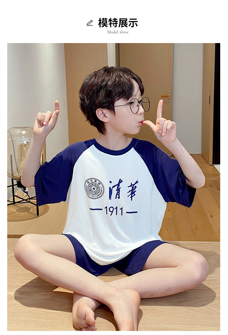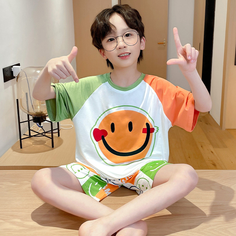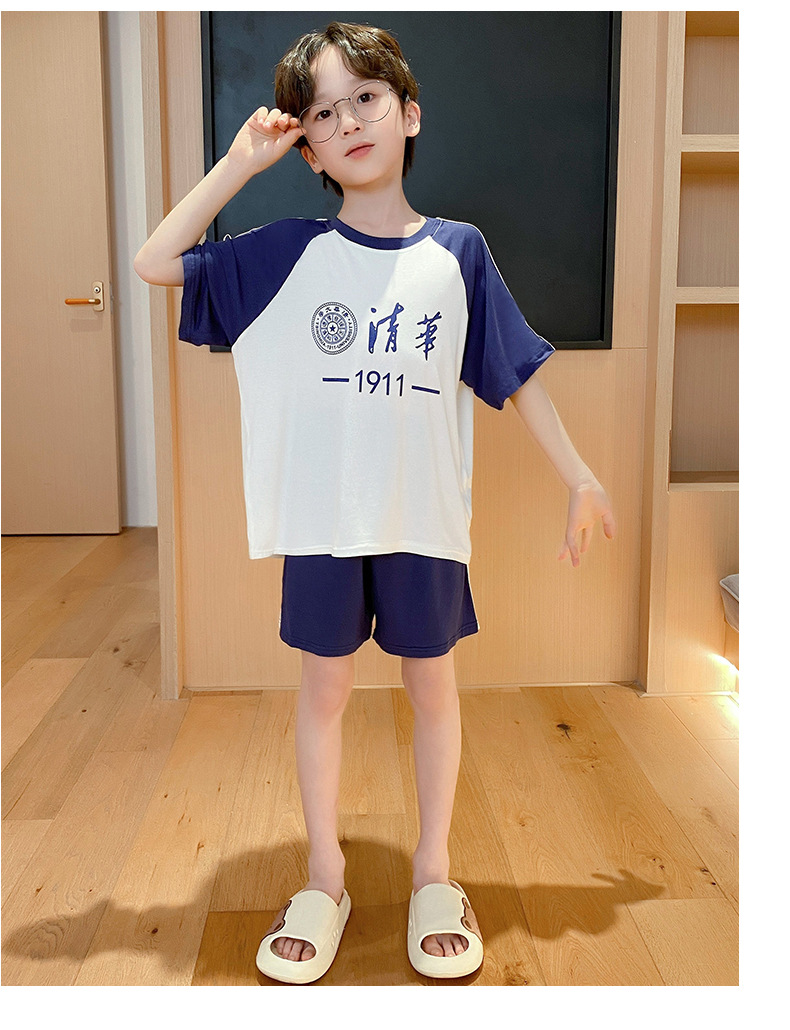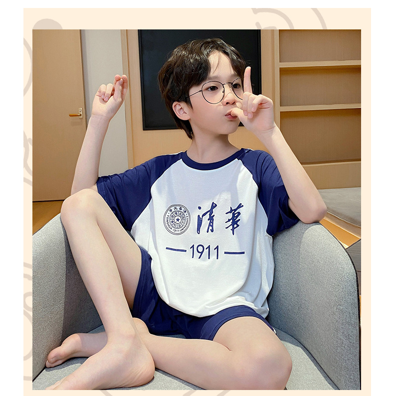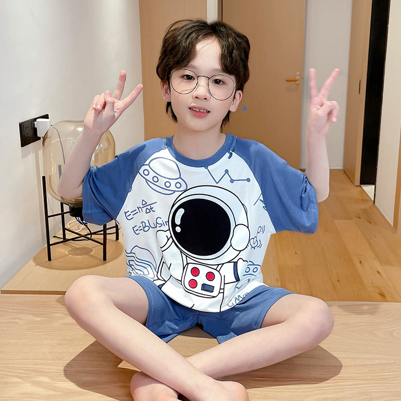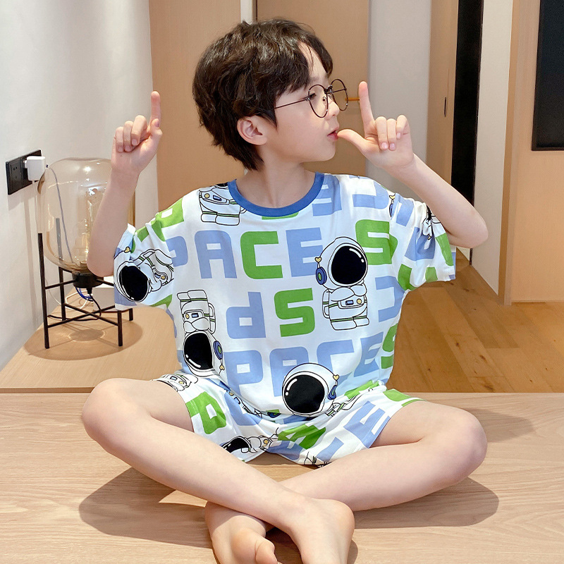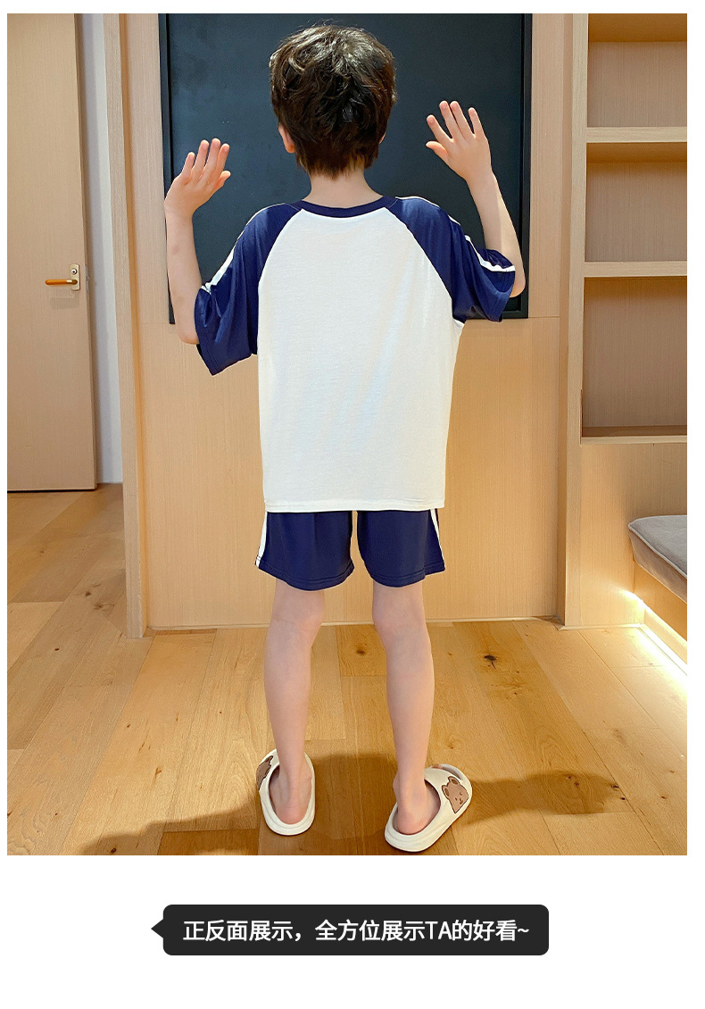2025 새로운 소년 잠옷 어린이 여름 얇은 반팔 모달 소년 큰 어린이 가정 의류 세트 여름 스타일스토어 가기