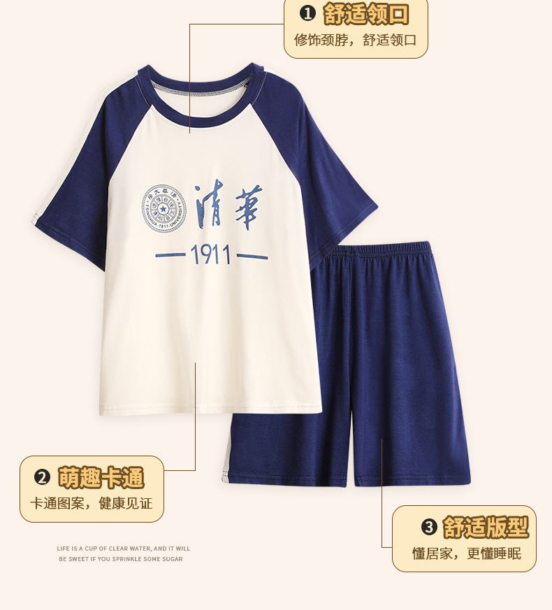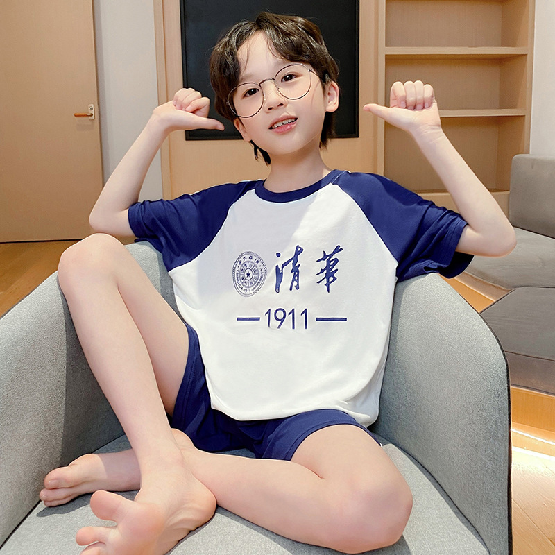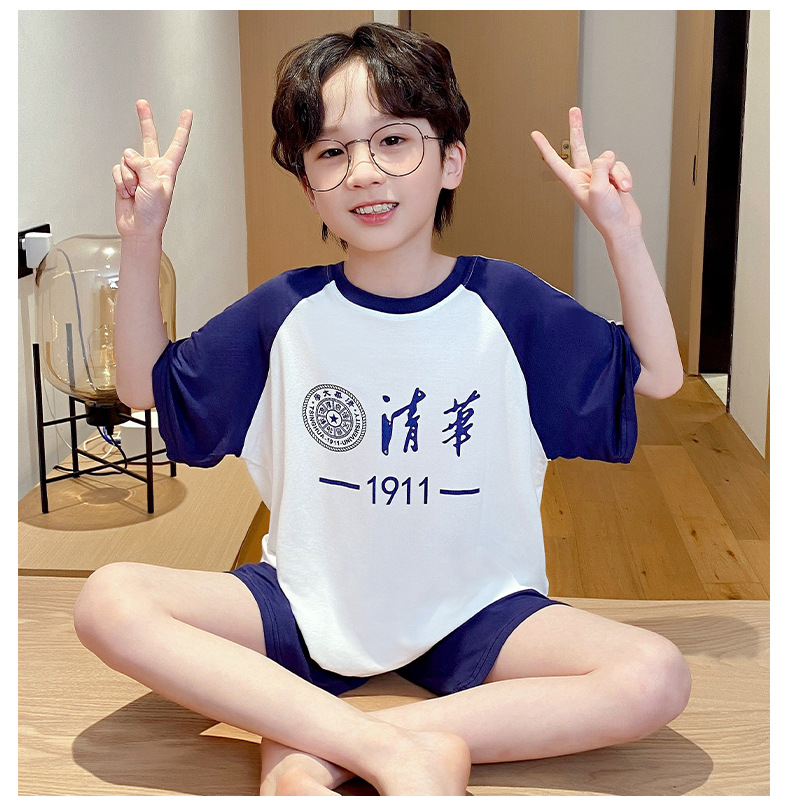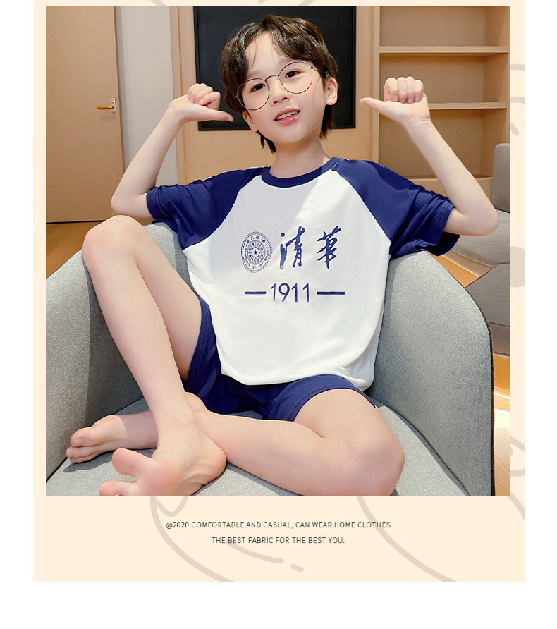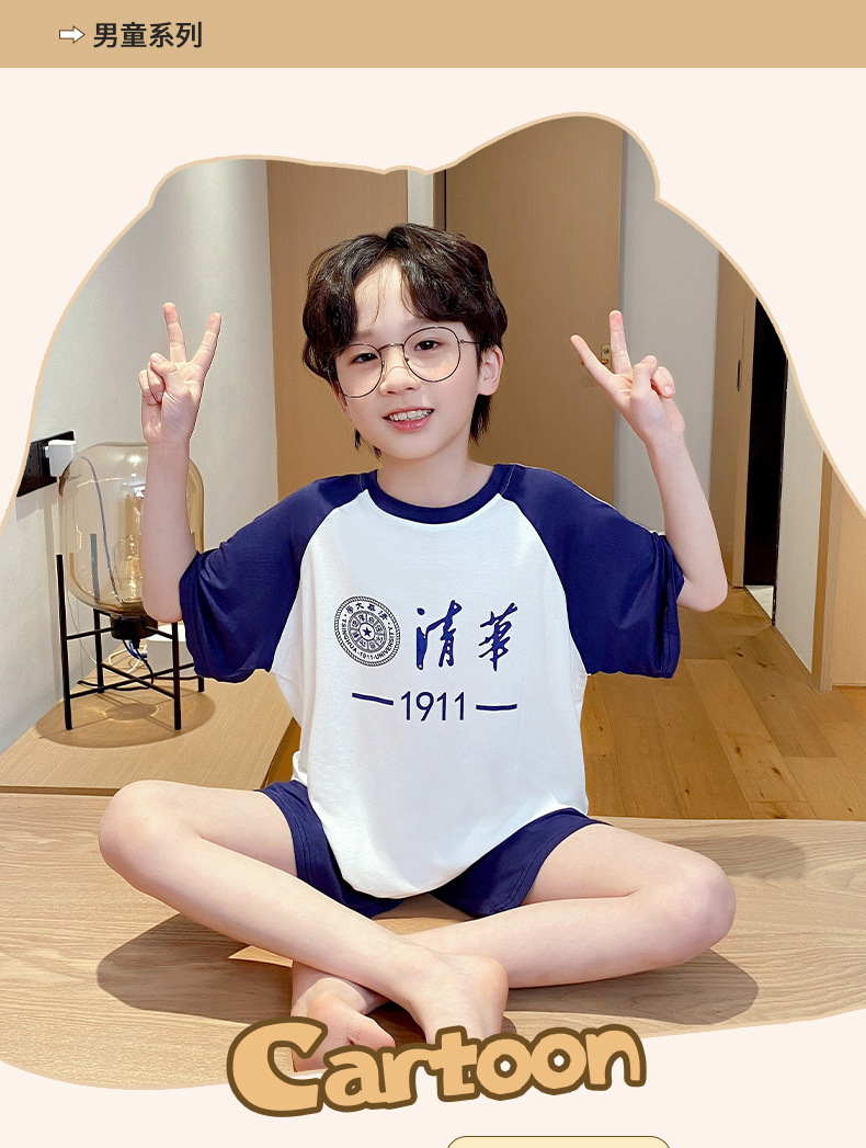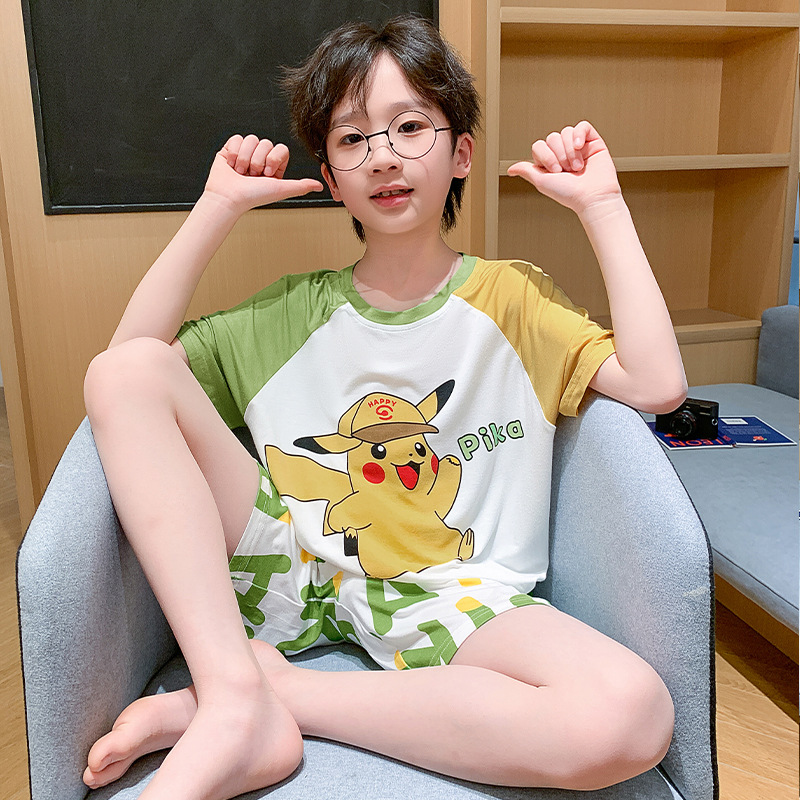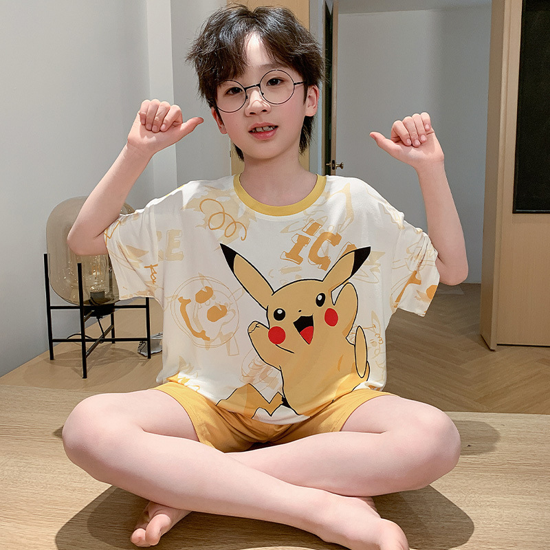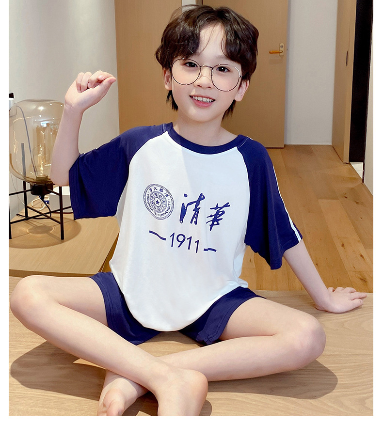 2025 새로운 소년 잠옷 어린이 여름 얇은 반팔 모달 소년 큰 어린이 가정 의류 세트 여름 스타일스토어 가기