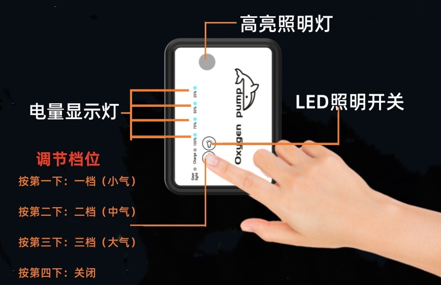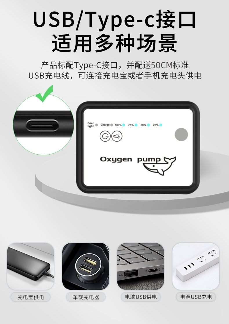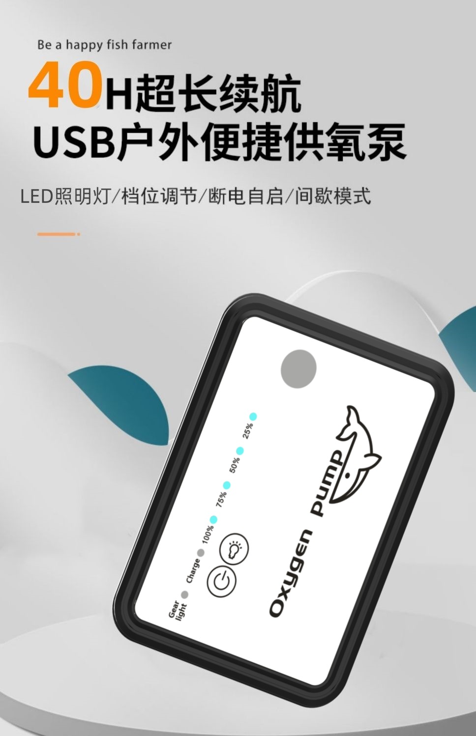 산소 펌프 어항 산소 공급 펌프 충전식 리튬 배터리 낚시 야외 겸용 USB 휴대용 LED 산소 발생기