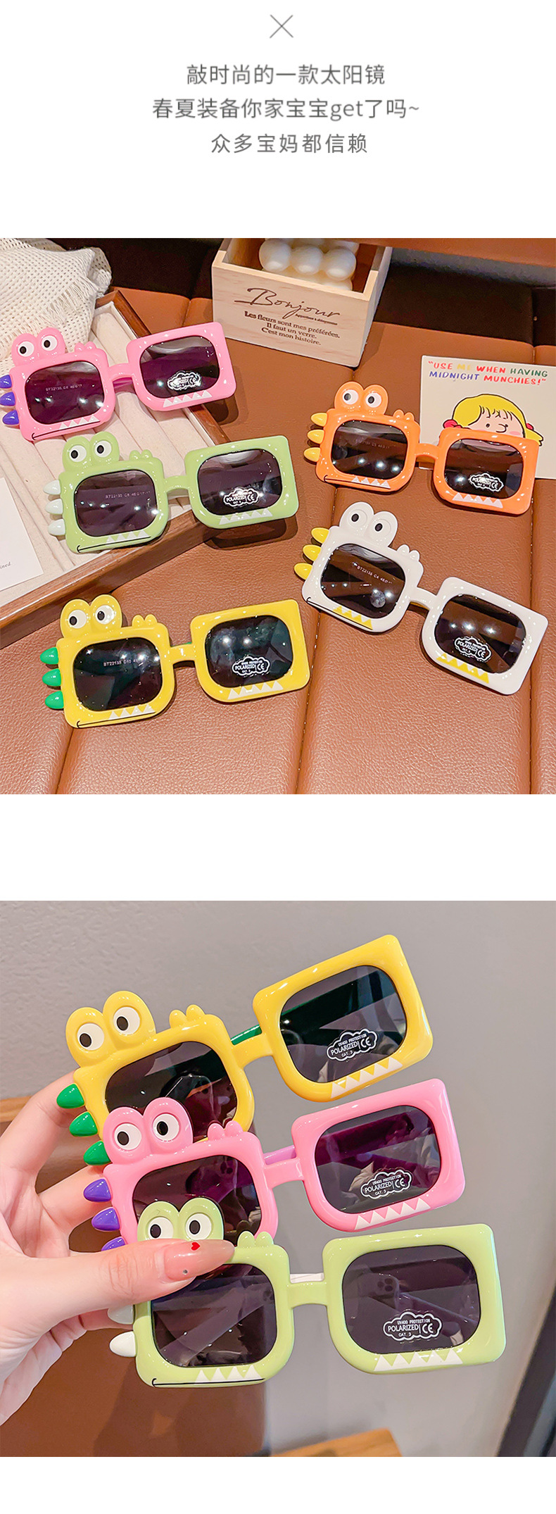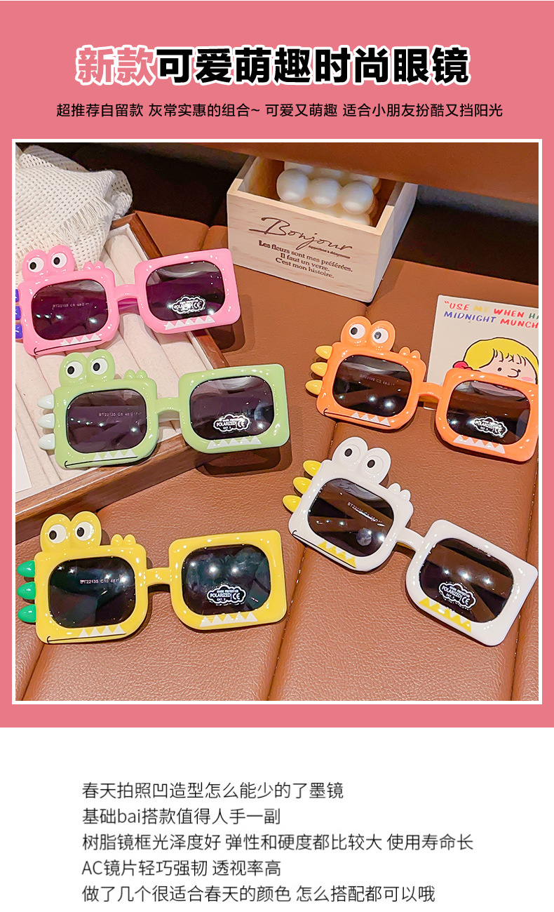 어린이용 새로운 만화 공룡 남아용 자외선 차단 선글라스, 자외선 방지 아기 안경 장난감, 여아용 선글라스스토어 가기