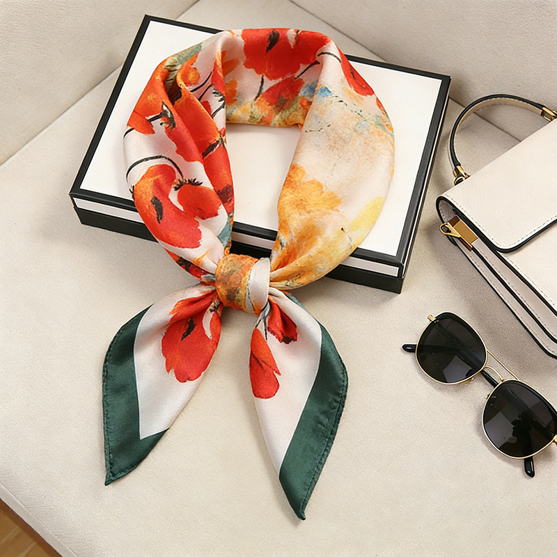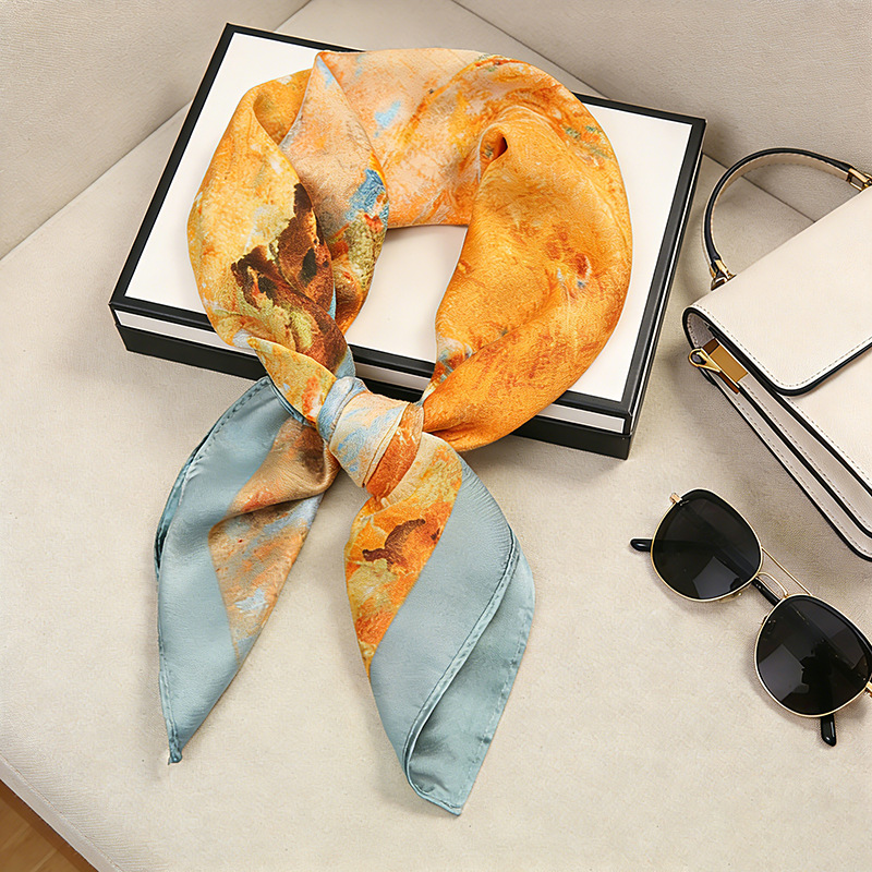 70*70cm 실크 스카프 작은 사각형 스카프 높은 감각 스카프 모조 실크 봄과 여름 조커 기질 유럽과 미국 여성 도매