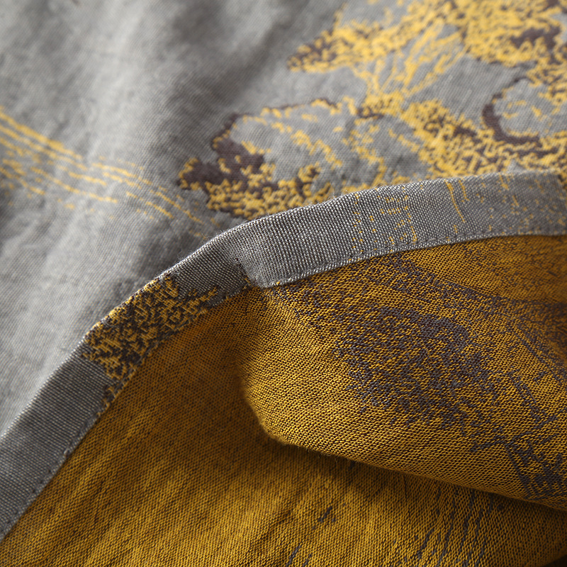 • 자카드 벨트 기모노 가운 고대 스타일 그레이 블루