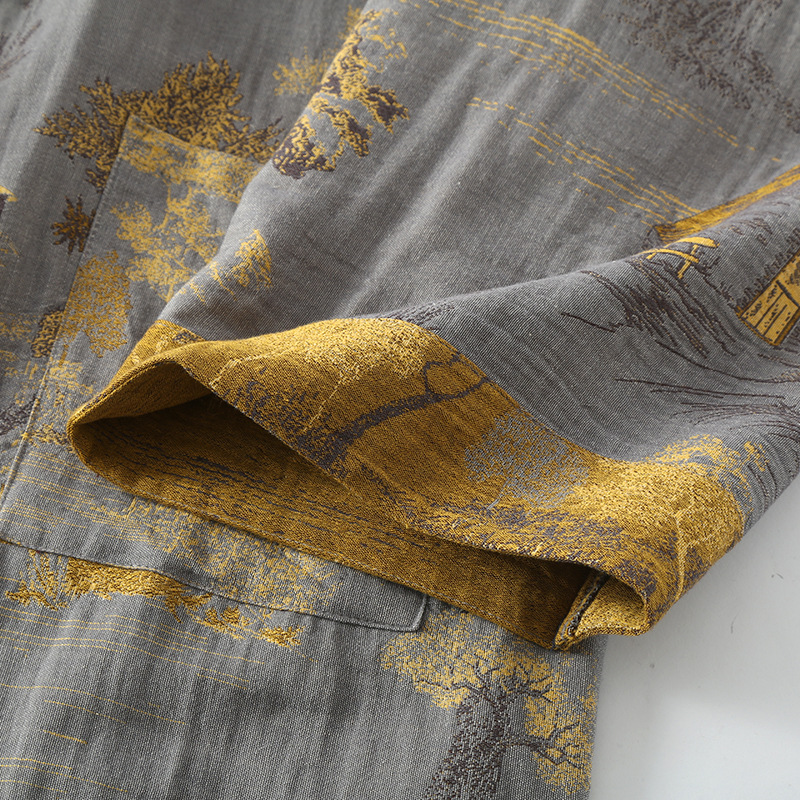 남성 레이스 업 잠옷 봄/여름 가을 중간 길이의 기모노 목욕 가운 더블 레이어 메쉬 자카드 코튼 홈은 땀 김이 나는 옷을 입습니다.스토어 가기