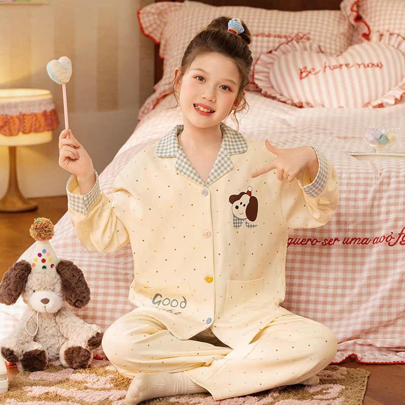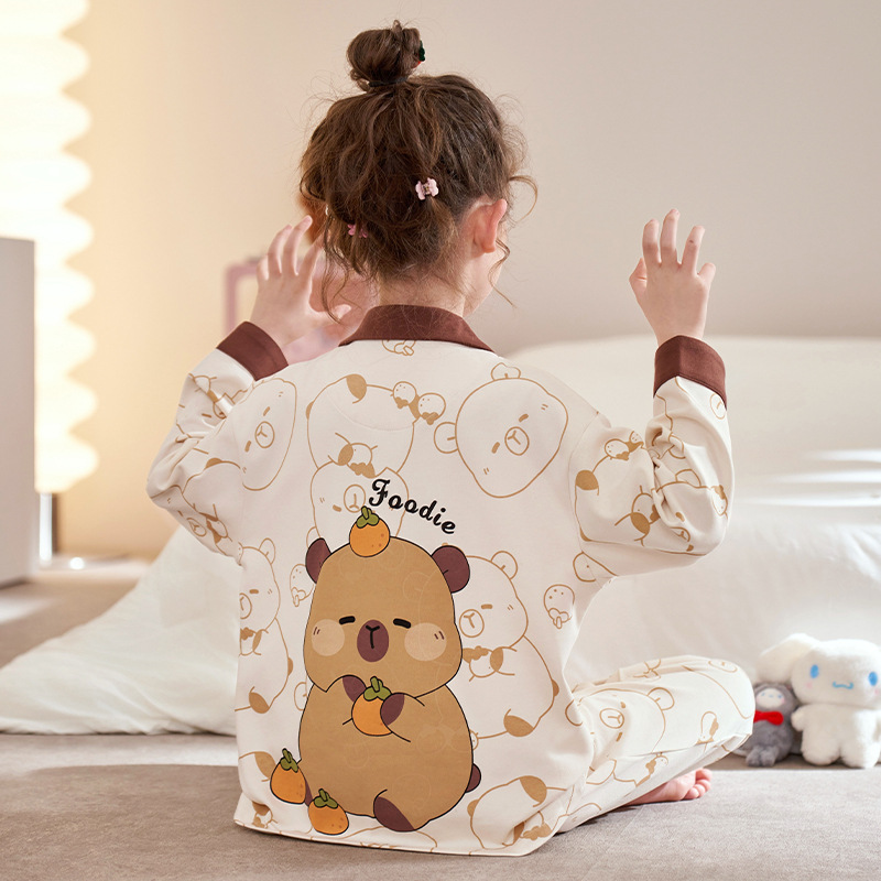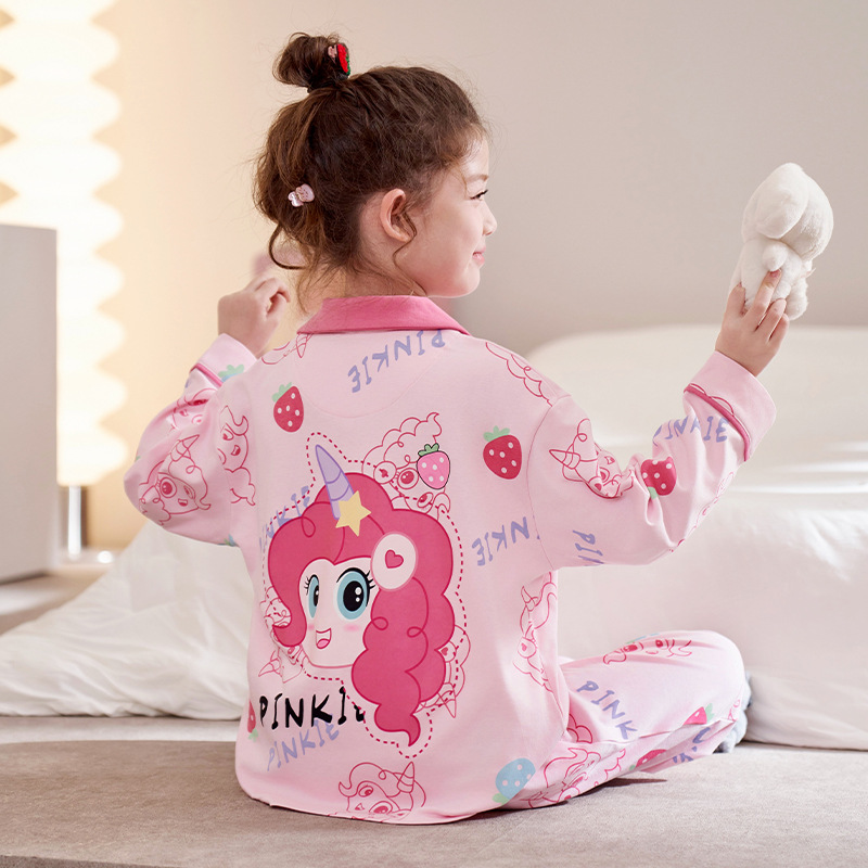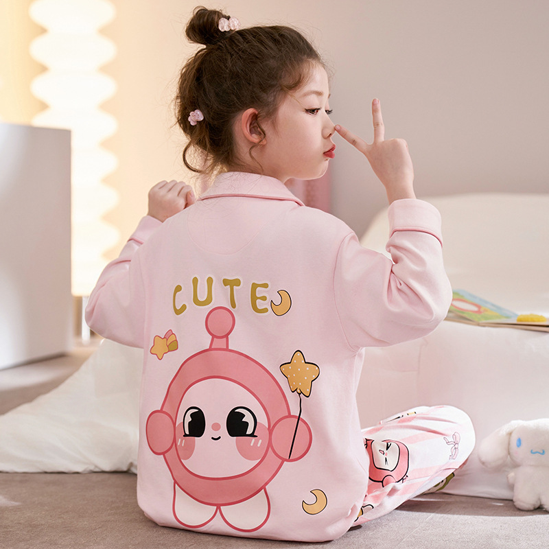 어린이 잠옷 소녀 봄과 가을 빗질면 긴팔 얇은 만화 쿨로 미 중대형 어린이 소녀 홈 세트스토어 가기