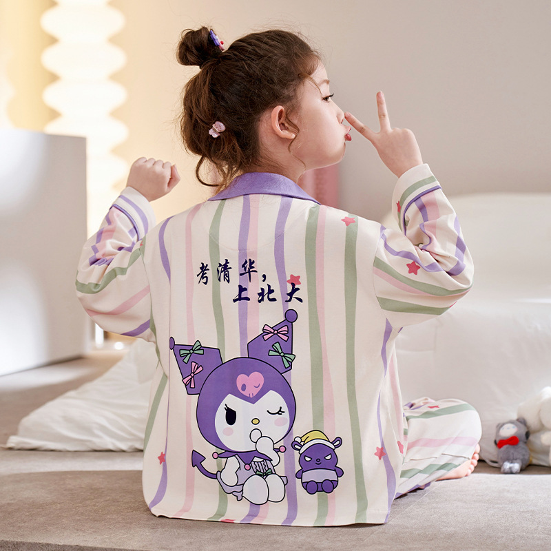 어린이 잠옷 소녀 봄과 가을 빗질면 긴팔 얇은 만화 쿨로 미 중대형 어린이 소녀 홈 세트
