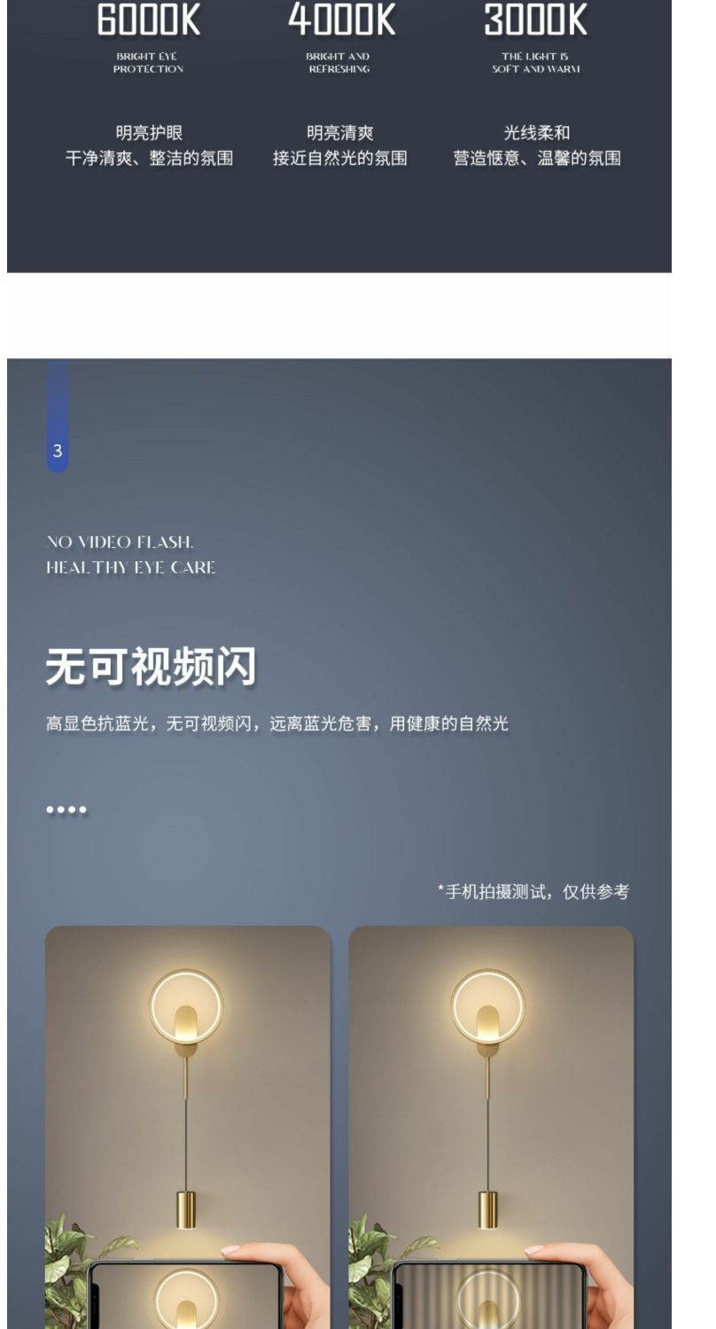 • 업그레이드된(알루미늄) 골드, 광원 전력: 따뜻한 눈 보호(3색 조명)