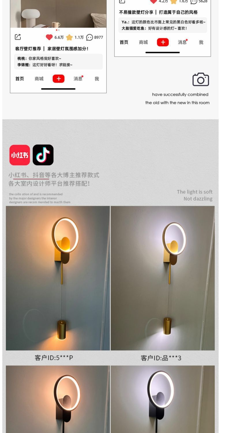 벽 램프 침실 머리맡 샹들리에 미니멀리스트 북유럽 빛 럭셔리 스타일 복도 통로 램프 현대 인터넷 연예인 거실 배경 벽 램프스토어 가기