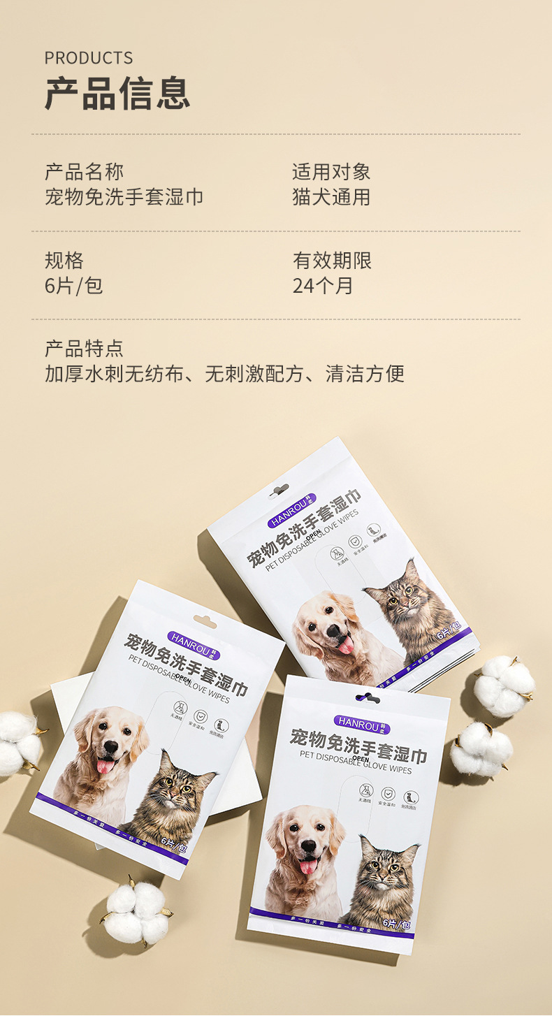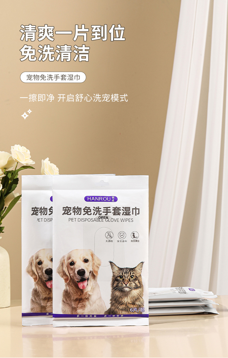애완 동물 세척 무료 장갑 개 목욕 탈취제 일회용 고양이 청소 드라이 클리닝 애완 동물 용품 6 조각 젖은 손수건