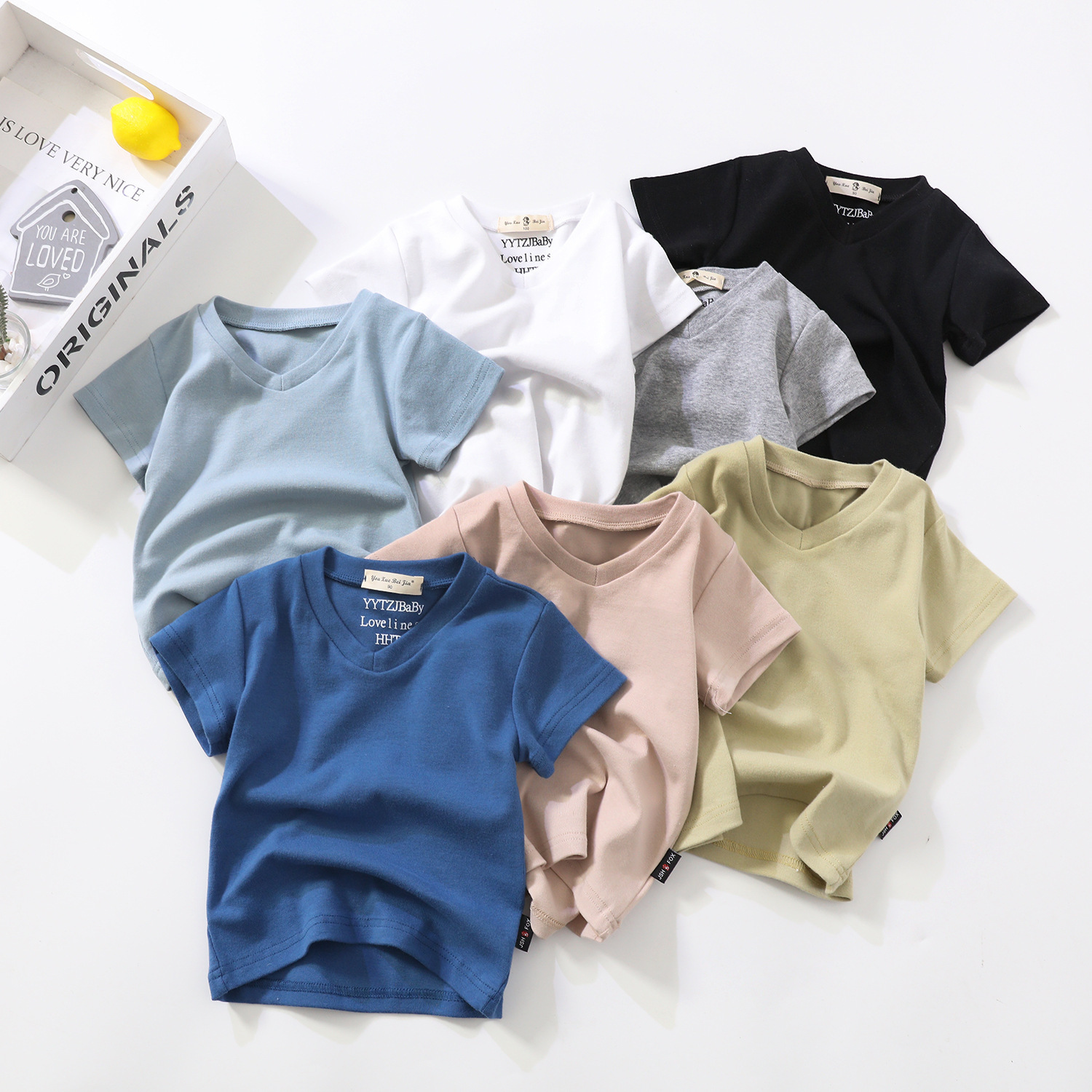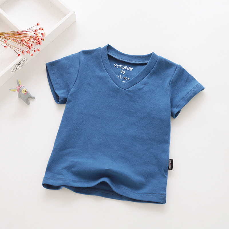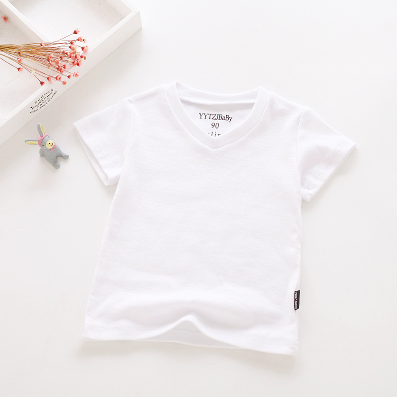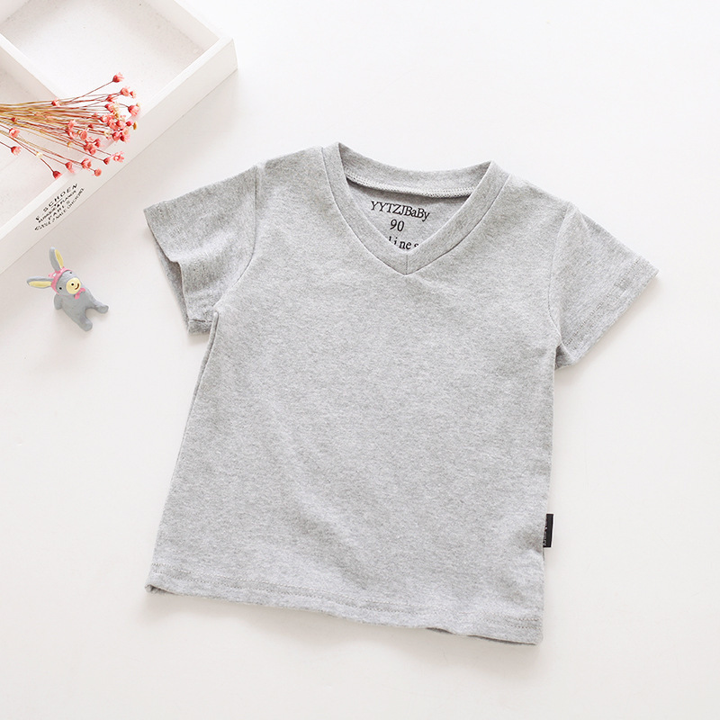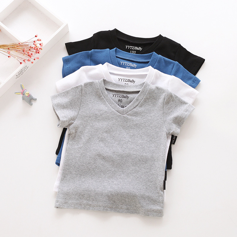 소년과 소녀를위한 여름 어린이 반팔 탑 반팔 흰색 바닥 셔츠 단색 v 넥 아동 의류 티셔츠 블랙스토어 가기