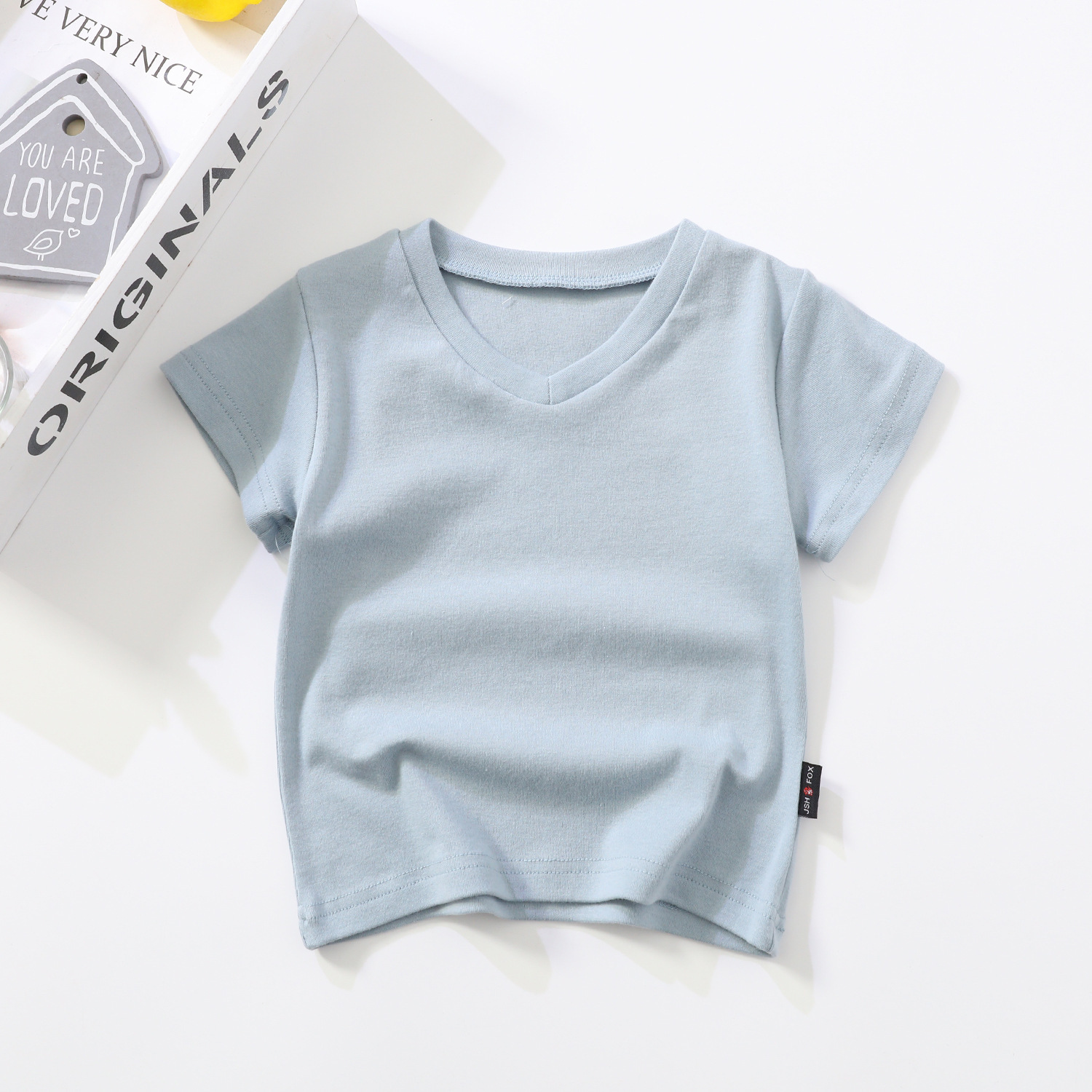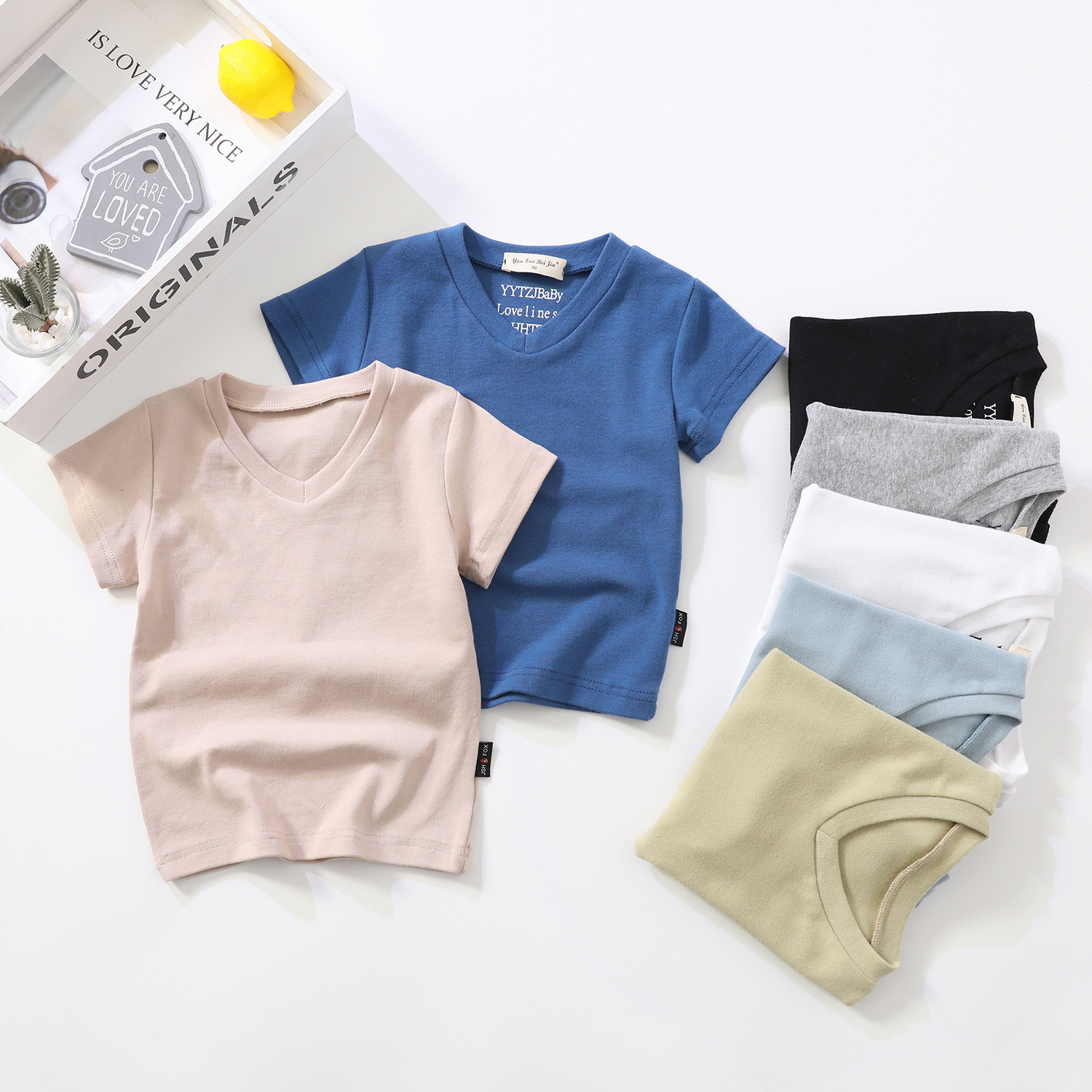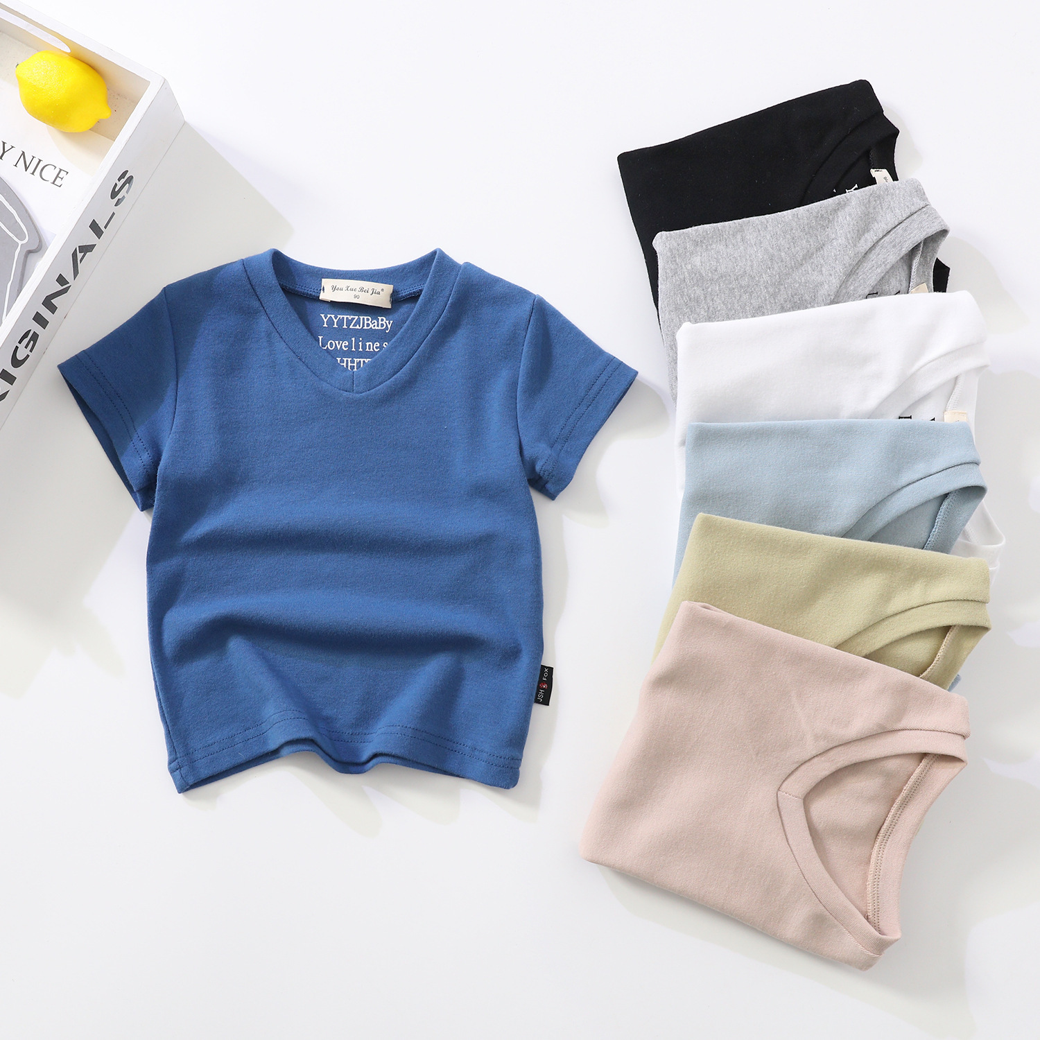 소년과 소녀를위한 여름 어린이 반팔 탑 반팔 흰색 바닥 셔츠 단색 v 넥 아동 의류 티셔츠 블랙스토어 가기