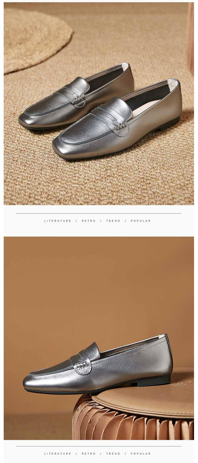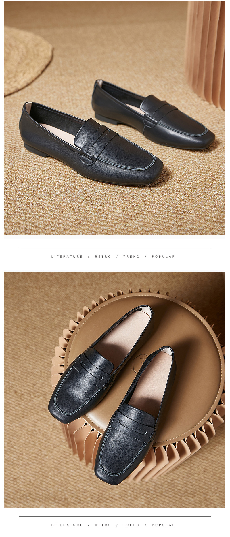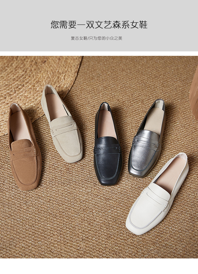 플래티넘 가죽 여성 로퍼 스퀘어토 부드러운 가죽 블랙 다용도 출퇴근용 여성화 편안하고 다재다능한 여성화