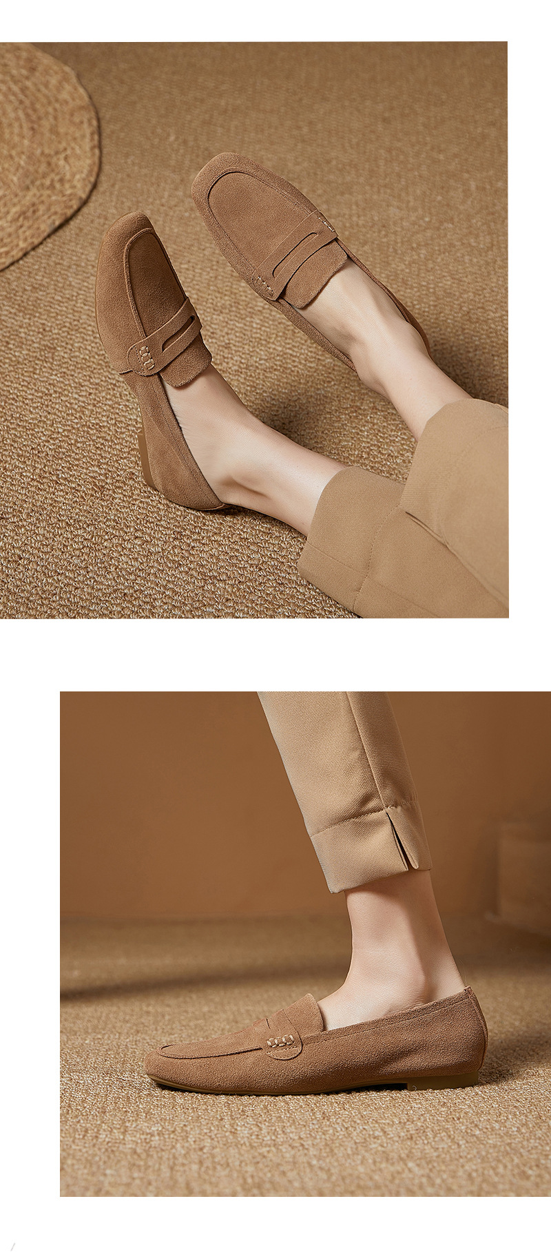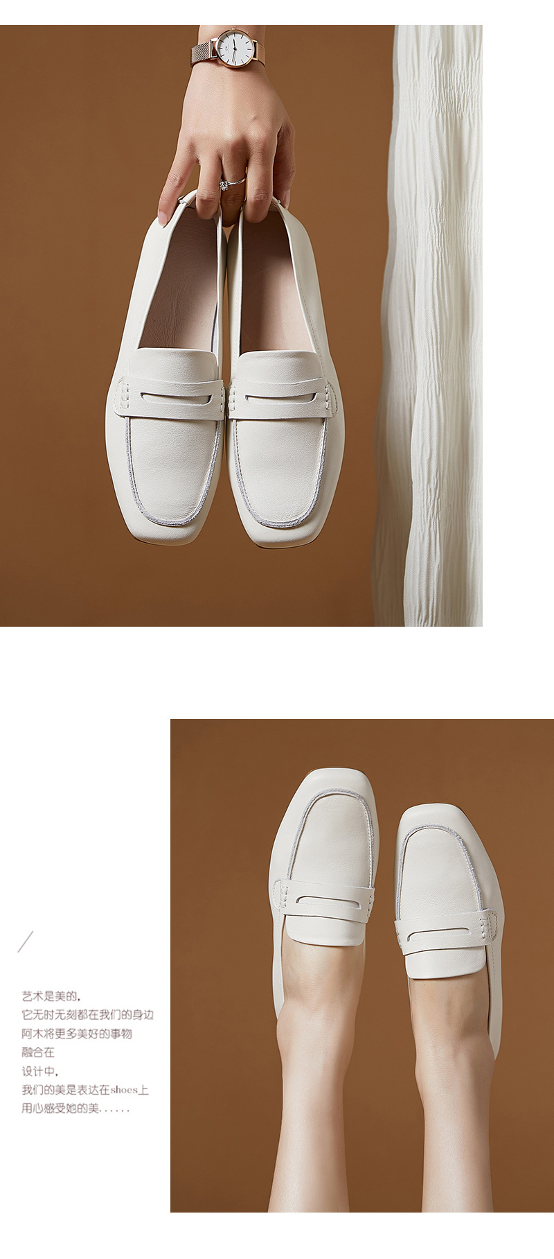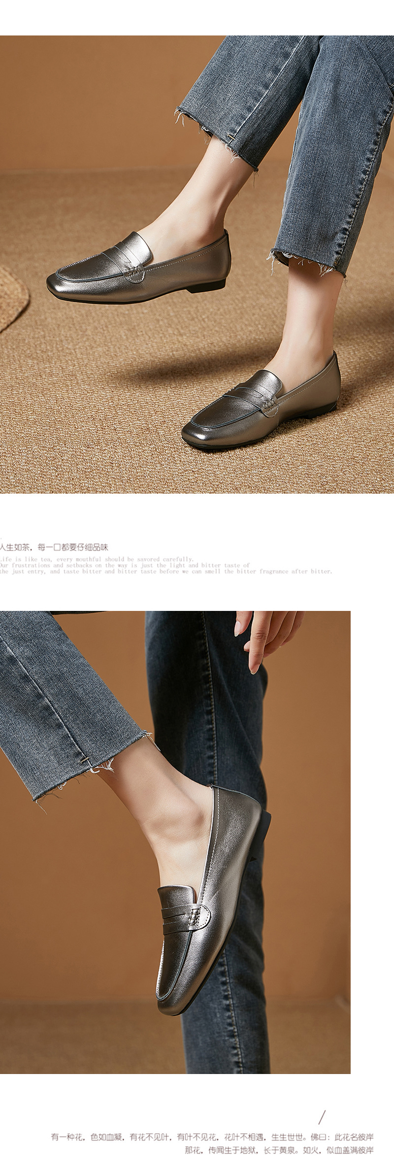 플래티넘 가죽 여성 로퍼 스퀘어토 부드러운 가죽 블랙 다용도 출퇴근용 여성화 편안하고 다재다능한 여성화