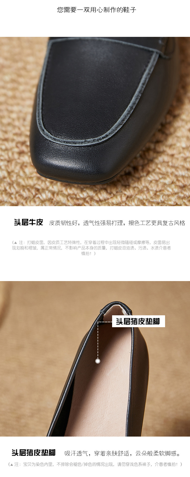 플래티넘 가죽 여성 로퍼 스퀘어토 부드러운 가죽 블랙 다용도 출퇴근용 여성화 편안하고 다재다능한 여성화스토어 가기