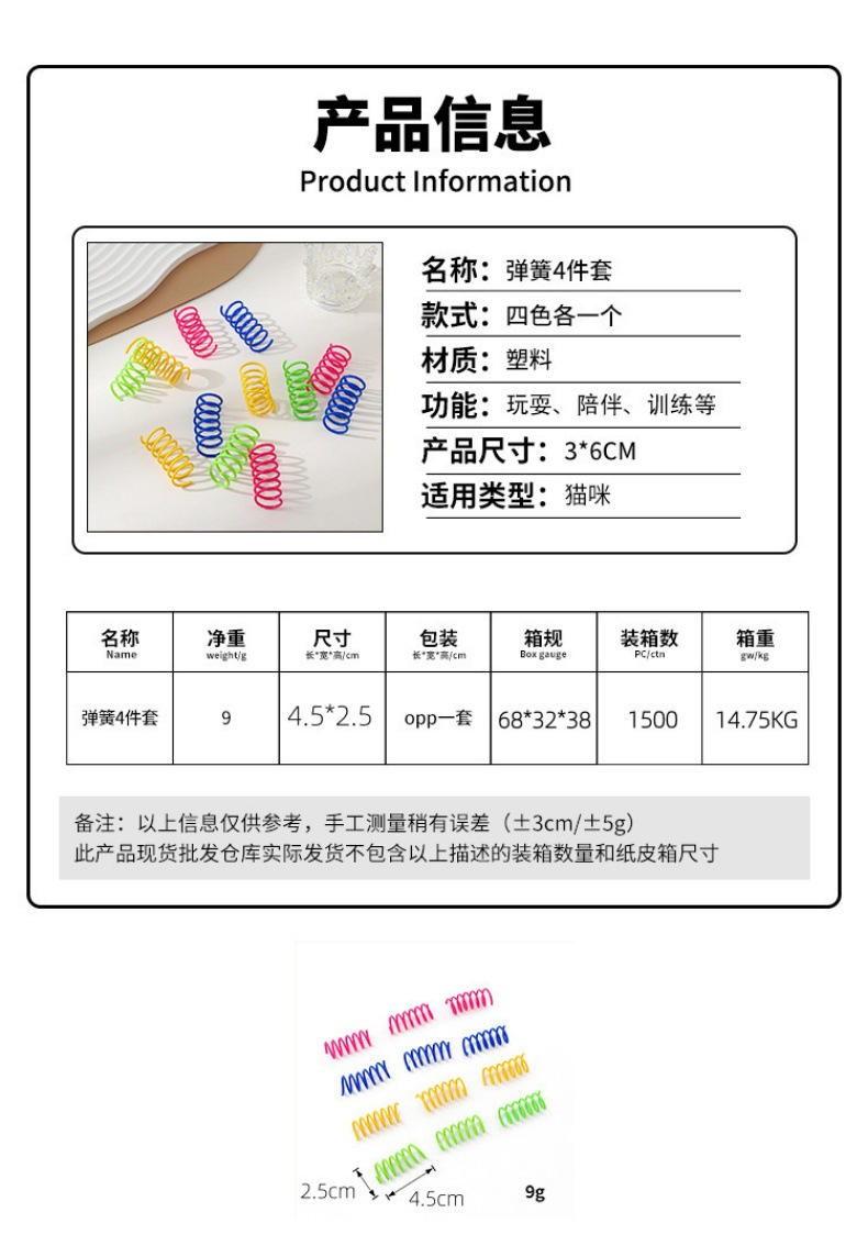 고양이 장난감 컬러풀 스프링 4종 세트, 해외 인기 상품, 내구성 강한 고양이 셀프 엔터테인먼트 장난감, 드롭쉬핑 가능