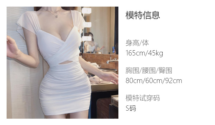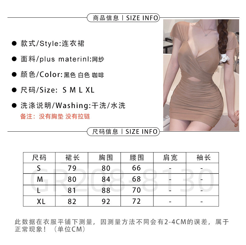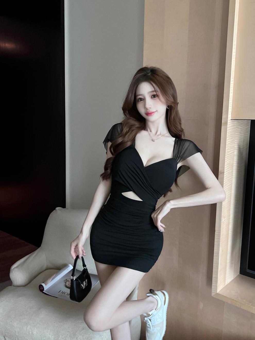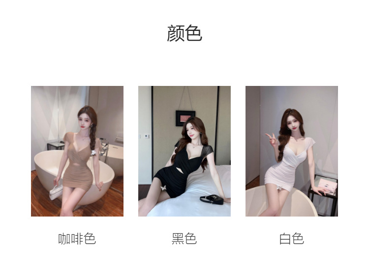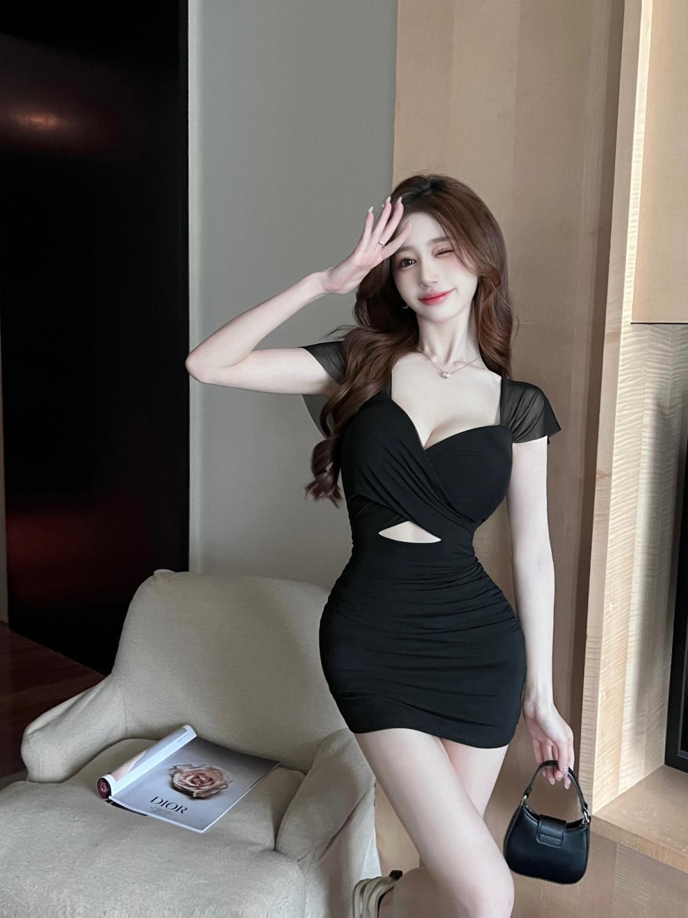 진짜 샷 순수한 욕망 스타일 섹시한 원피스 여성 배 꽉 엉덩이 스커트 여름 기질 로우 컷 V 넥 슬림 스커트스토어 가기