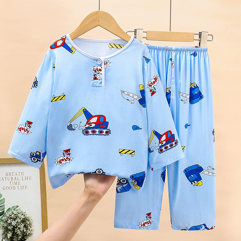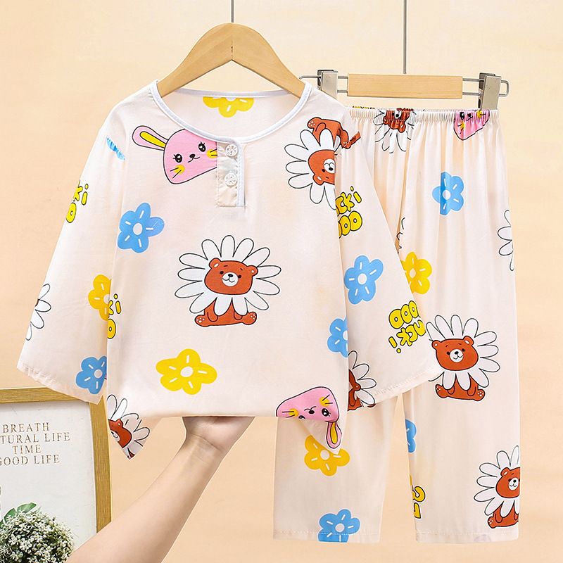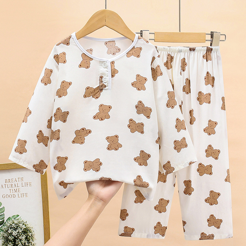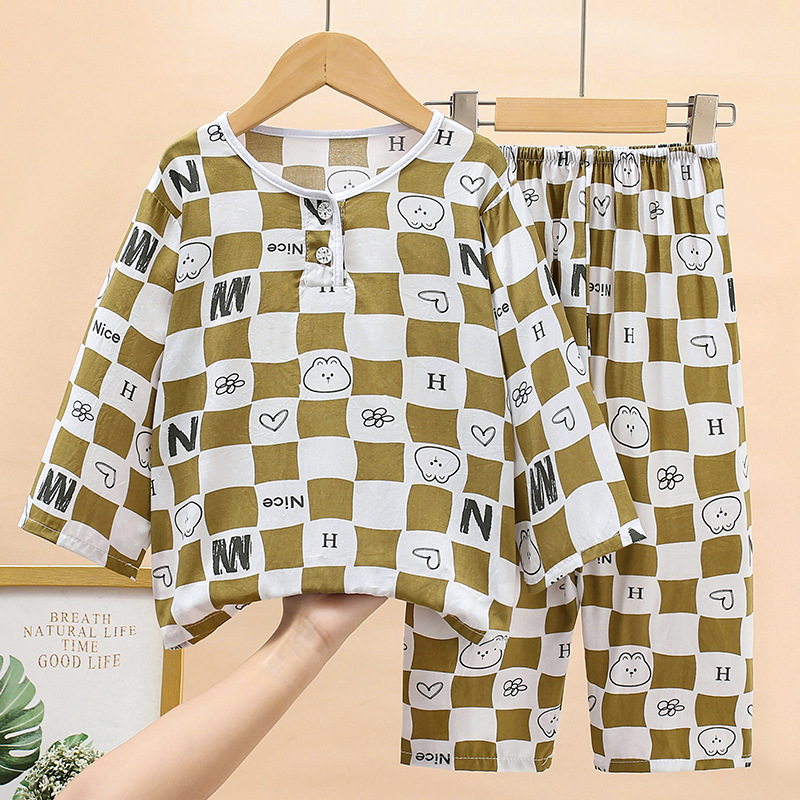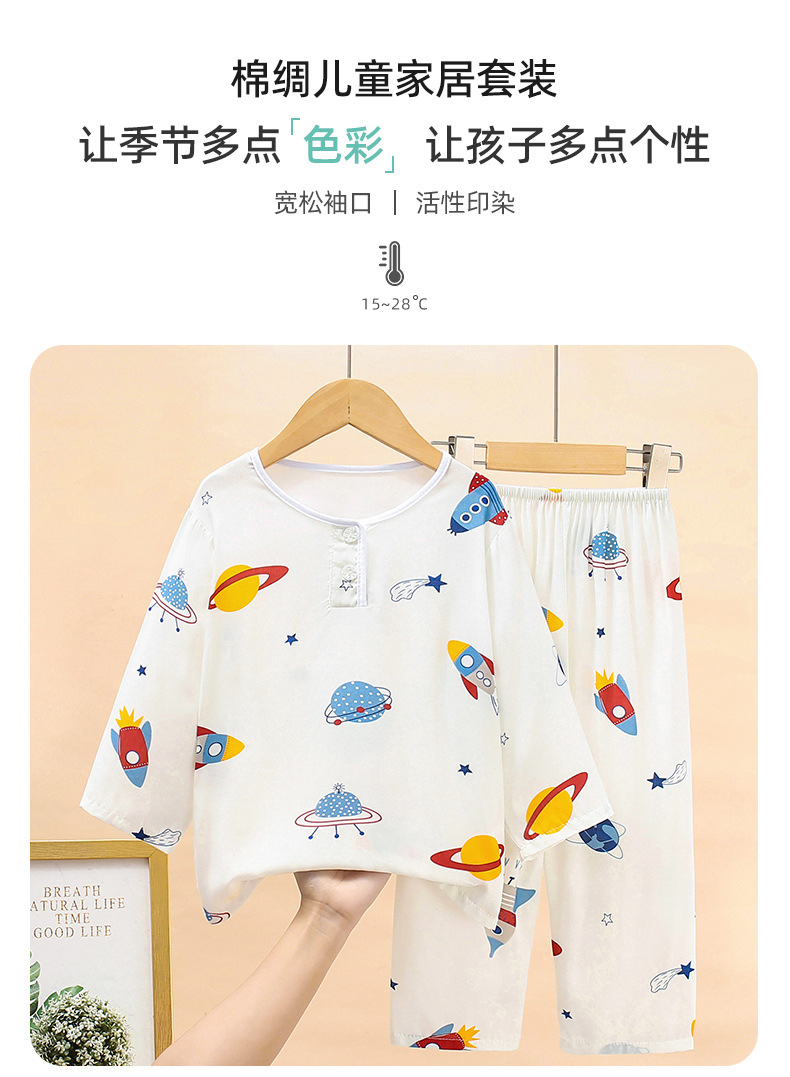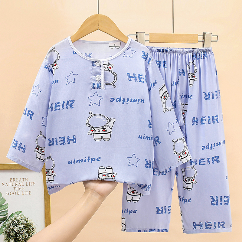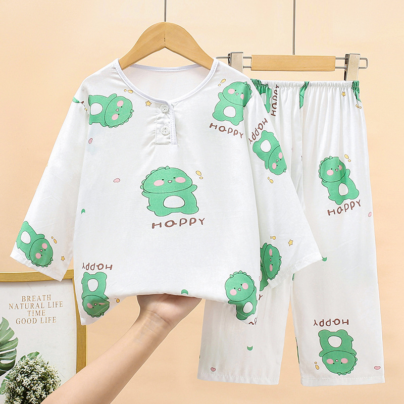 여름 어린이 면화 잠옷 얇은 소년 소녀 아기 긴 소매 면 실크 에어컨 홈 의류 헤어 세대스토어 가기