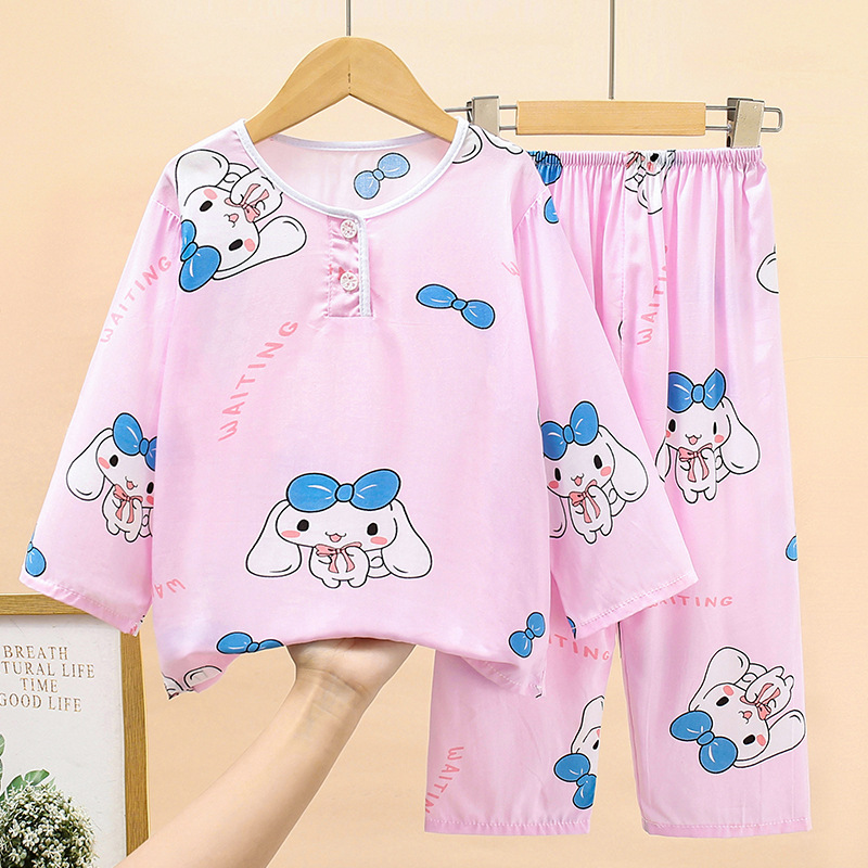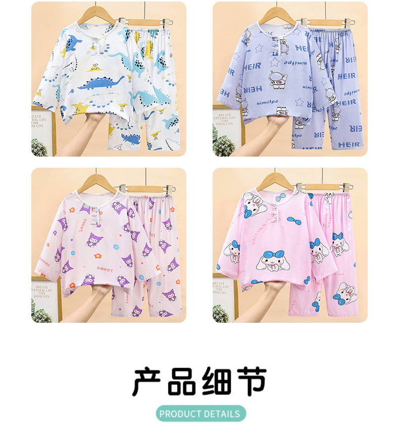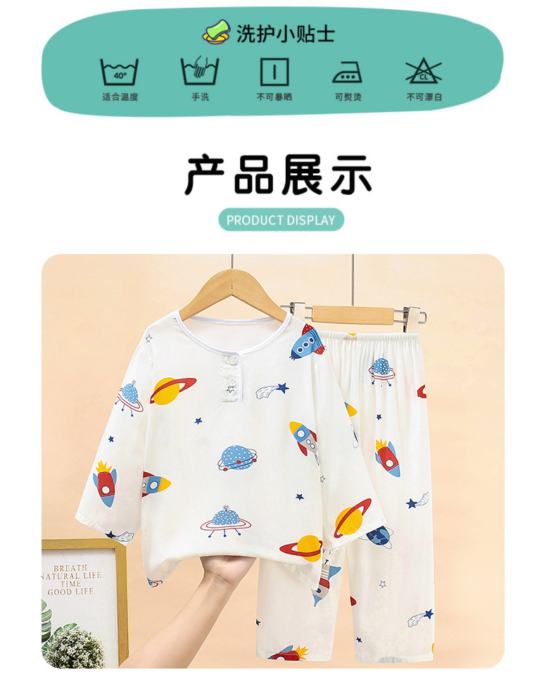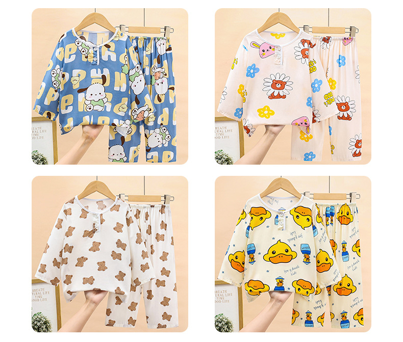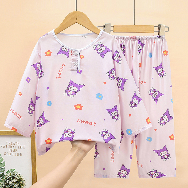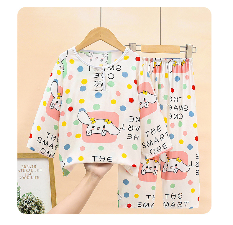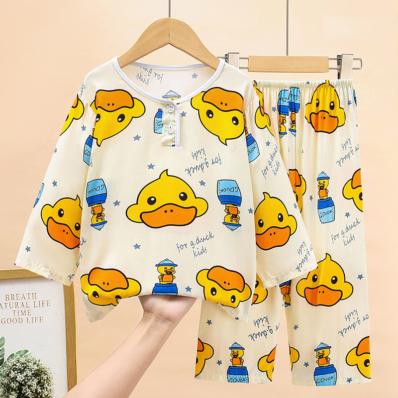 여름 어린이 면화 잠옷 얇은 소년 소녀 아기 긴 소매 면 실크 에어컨 홈 의류 헤어 세대스토어 가기