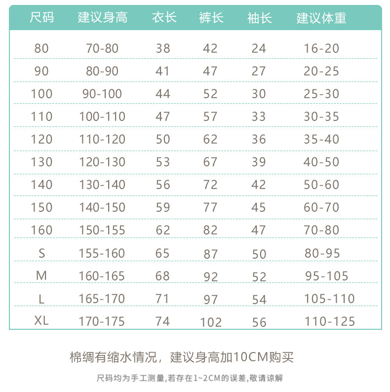 本厂今年棉绸产品改版了,选择号码的时候160以内的身高+10推荐,S-M-L-XL身高+5推荐。以免产生售后,谢谢!