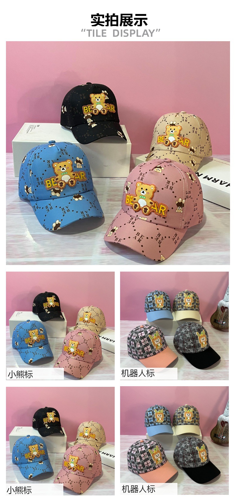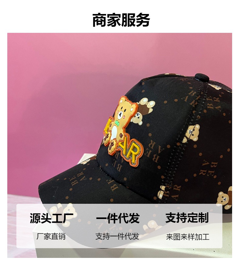 아기 만화 야구 소년 소녀 모자 봄과 가을 도매 캐주얼 편지 자수 가죽 라벨 야외 피크 캡