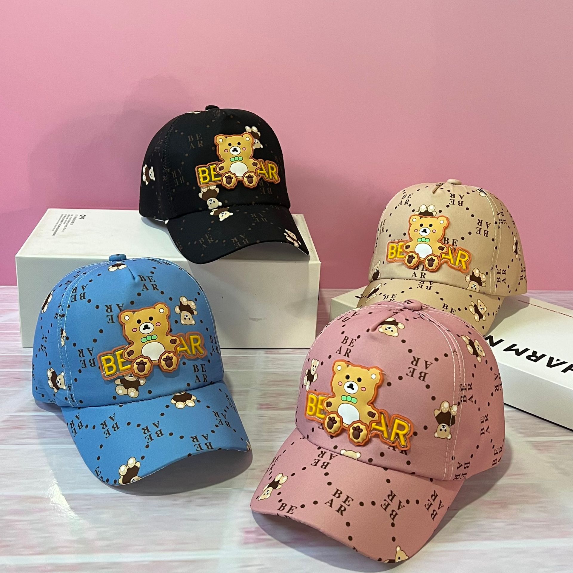 아기 만화 야구 소년 소녀 모자 봄과 가을 도매 캐주얼 편지 자수 가죽 라벨 야외 피크 캡스토어 가기