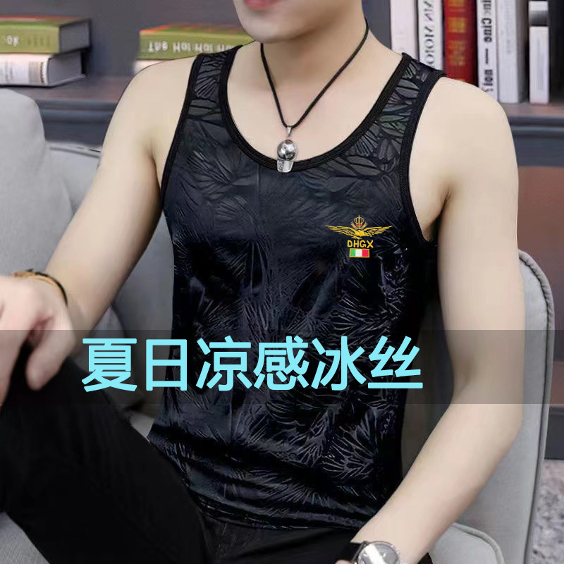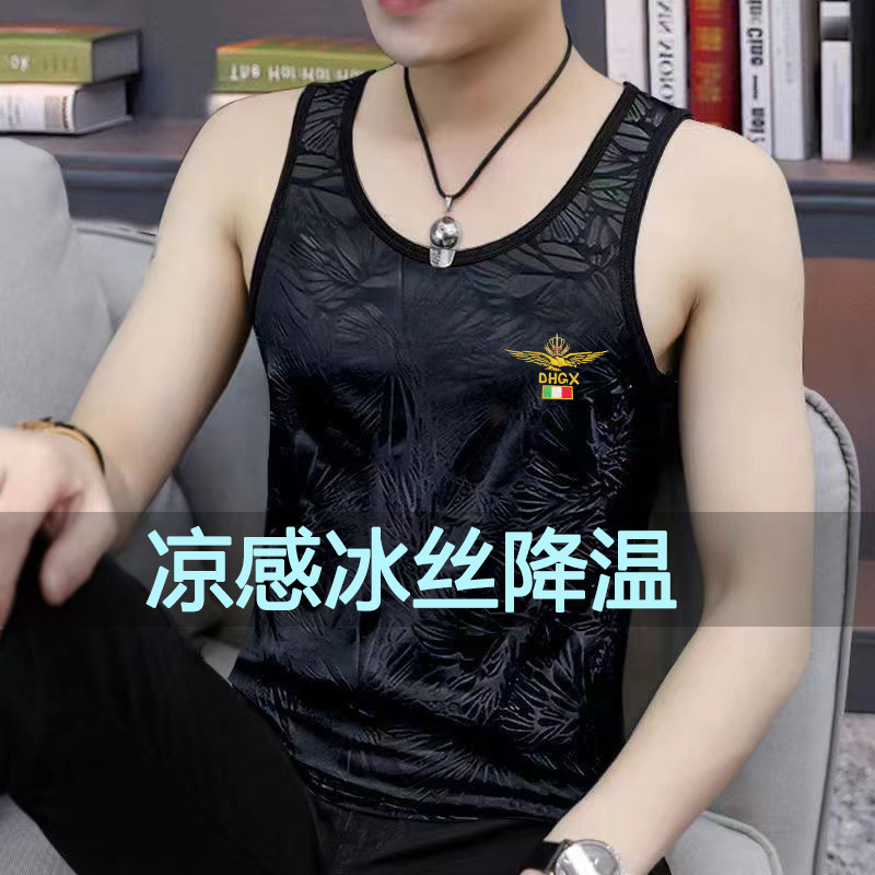 아이스 실크 조끼 남성 여름 얇은 스포츠 피트니스 빠른 건조 통기성 남성 언더 셔츠 슬림 양복 조끼 민소매 조끼