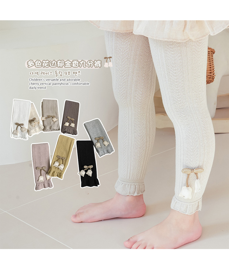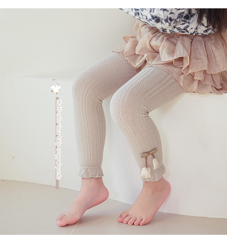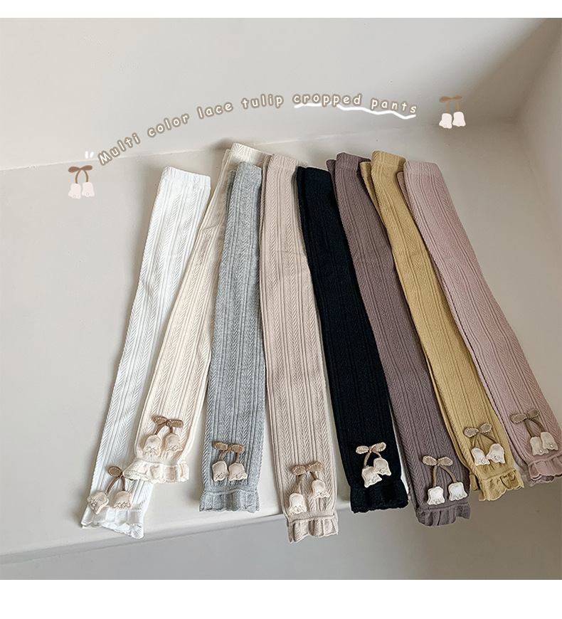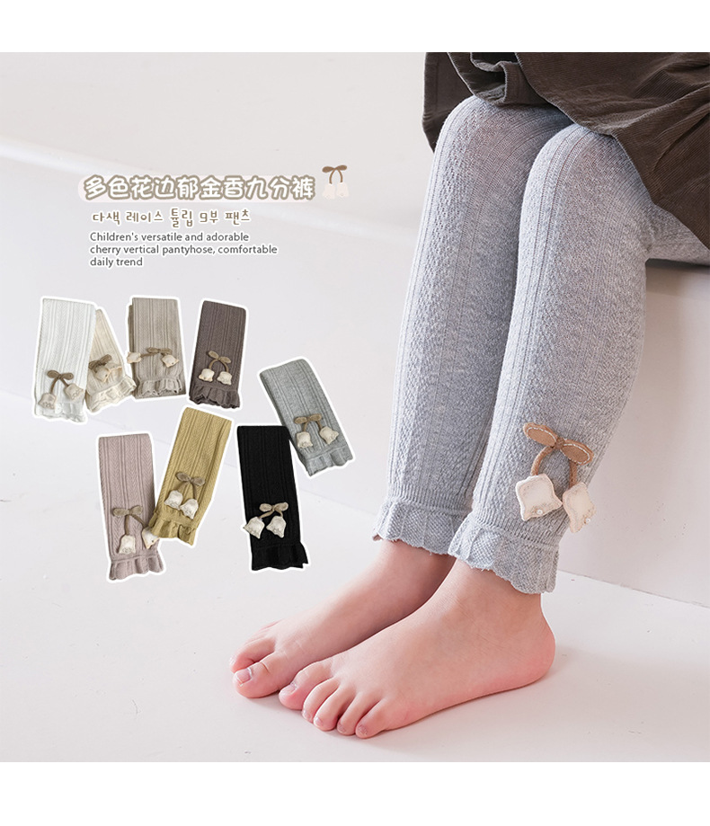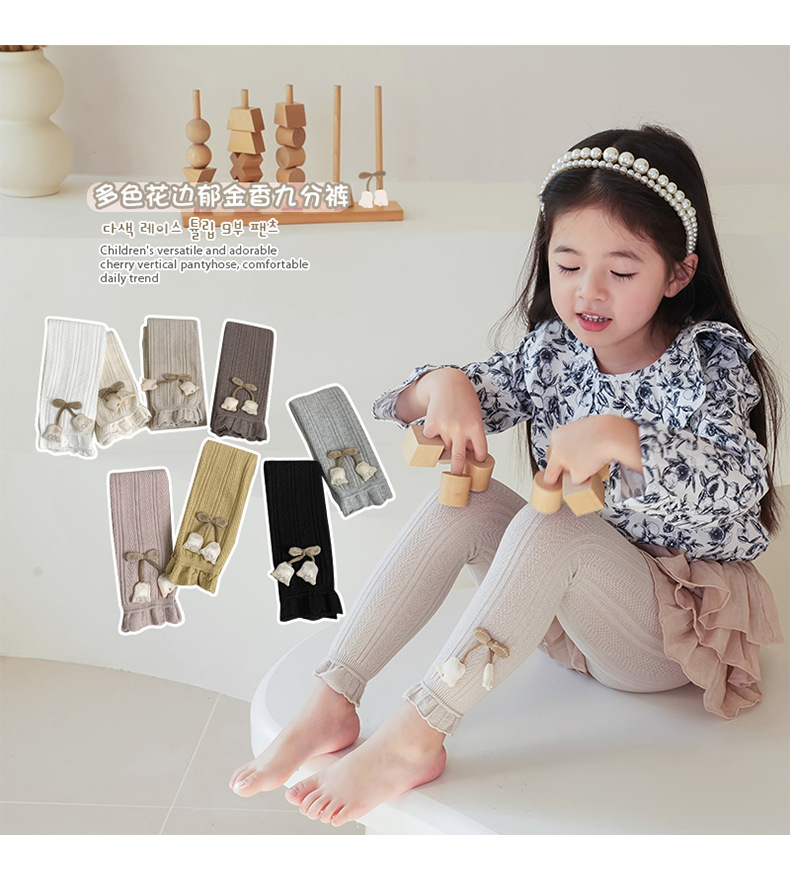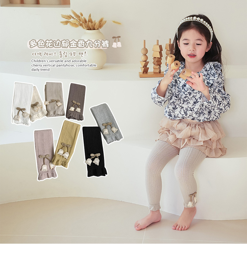 도매 소녀 봄과 가을 얇은 레깅스 겉옷 아동면 세로 줄무늬 멀티 컬러 레이스 튤립 크롭 바지스토어 가기