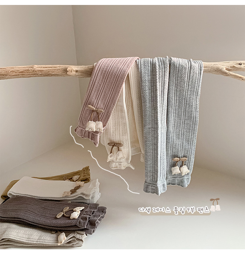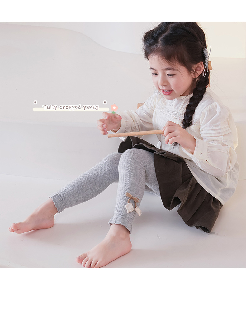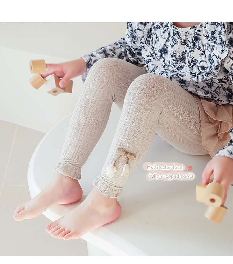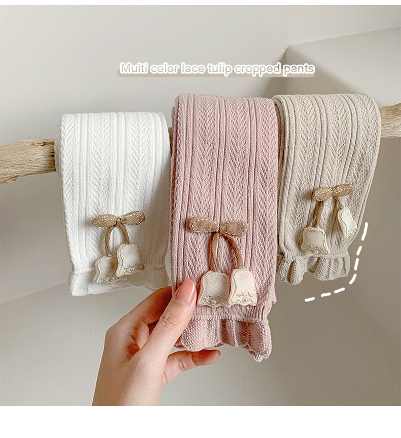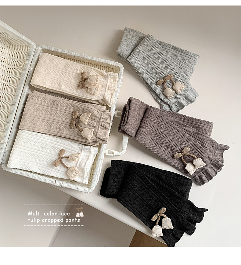 도매 소녀 봄과 가을 얇은 레깅스 겉옷 아동면 세로 줄무늬 멀티 컬러 레이스 튤립 크롭 바지스토어 가기