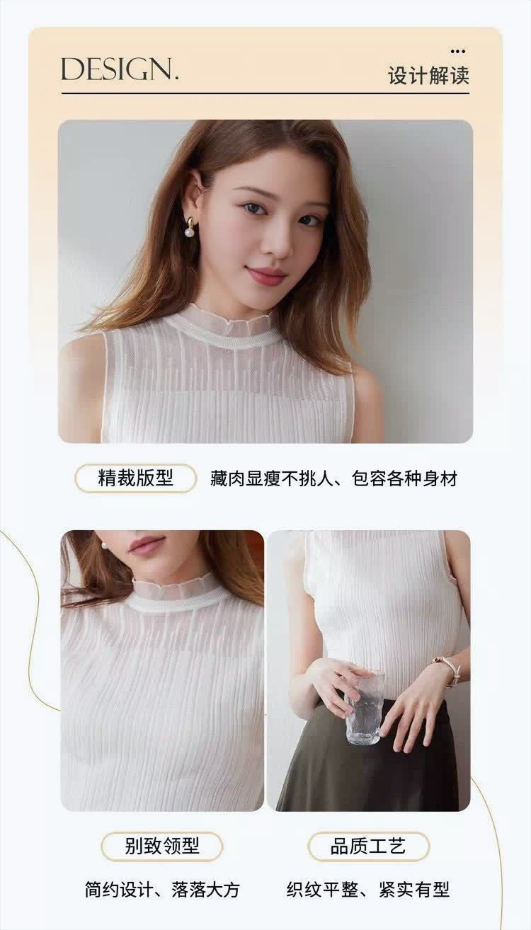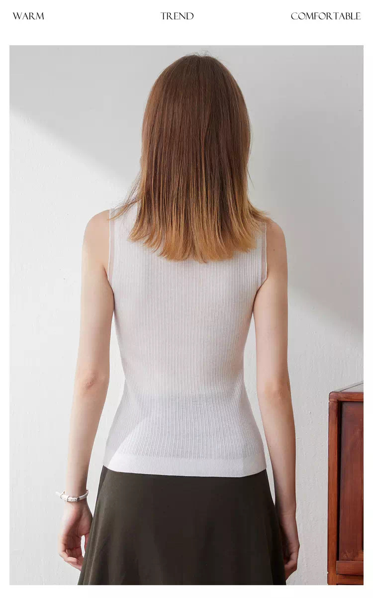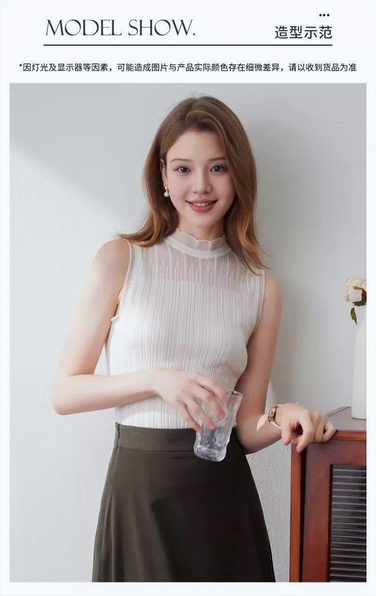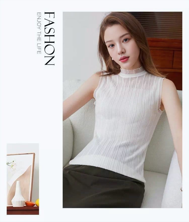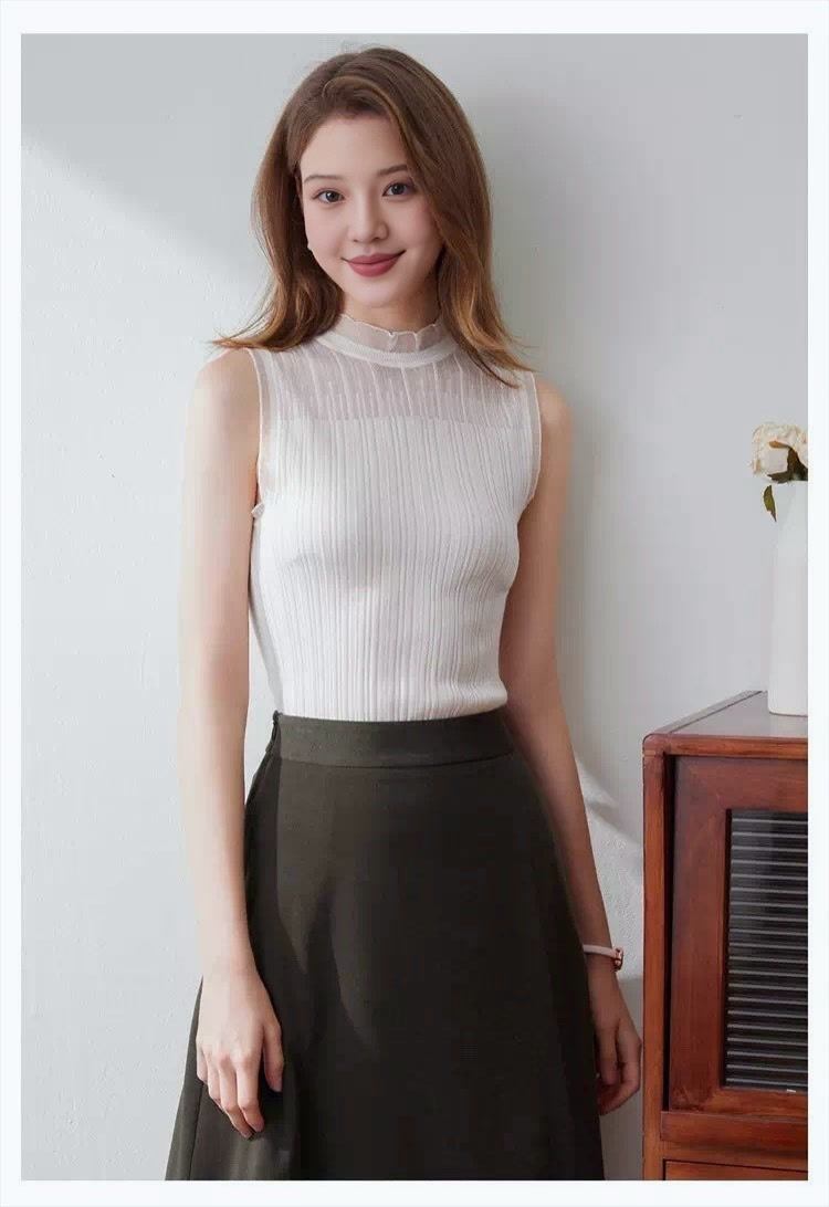 다용도 니트 베스트, 귀리잎 칼라, 레이스 트림, 여성용 베이스 레이어, 하프 터틀넥, 민소매 베이스 셔츠, 고급 알로 베스트