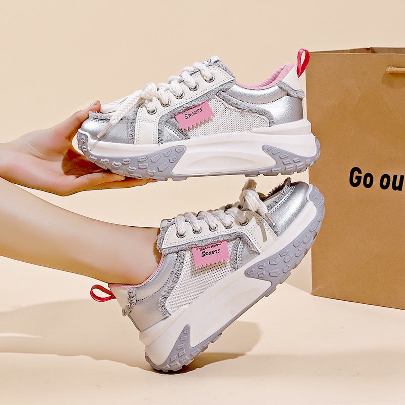사이버 연예인 토레 신발 여성 발 신발 2025 봄 새로운 두꺼운 밑창 스포츠 러닝화 작은 높이 신발