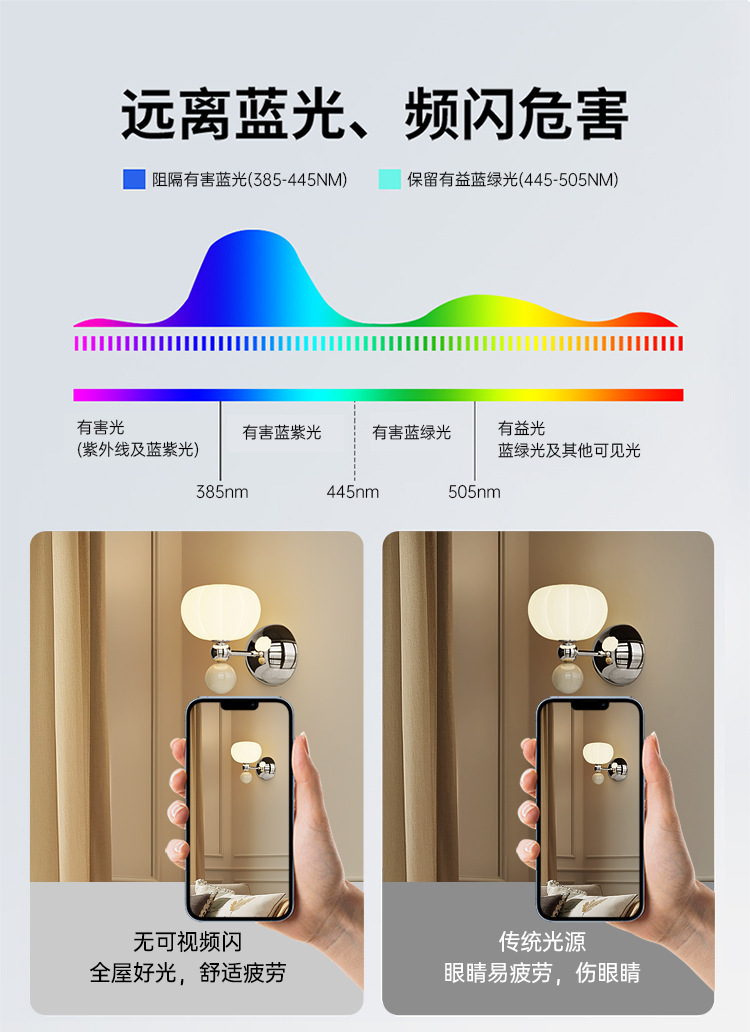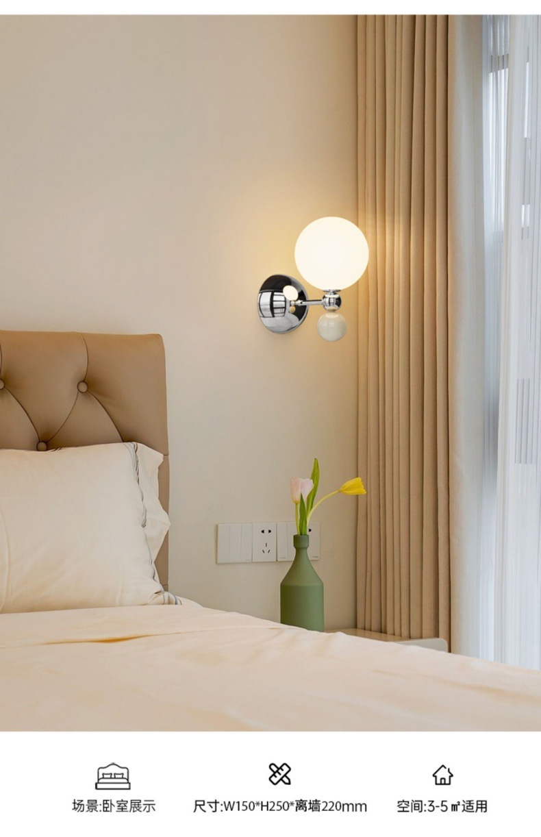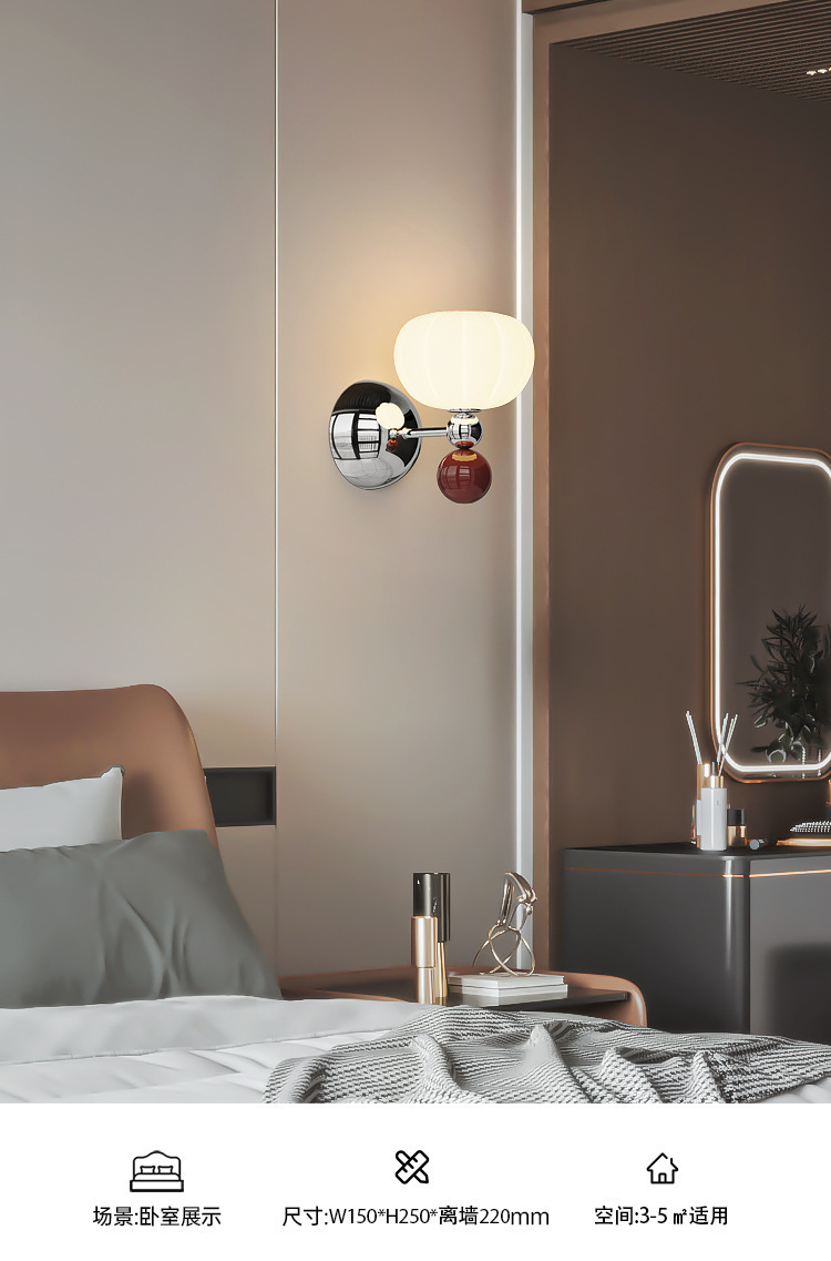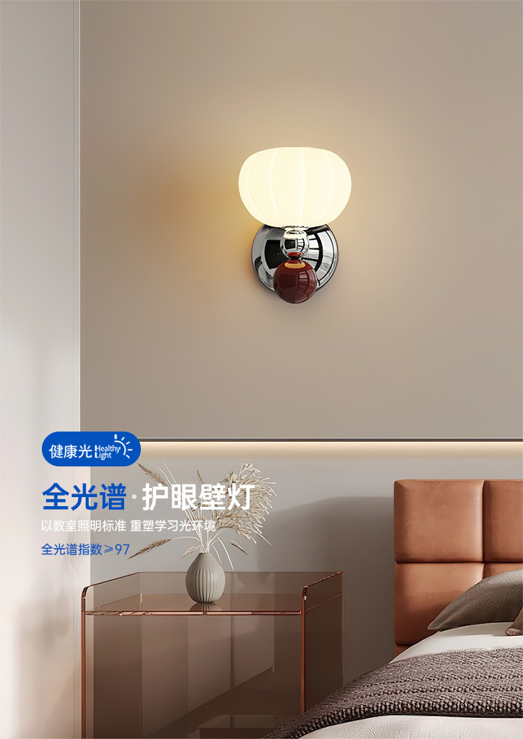 마스터 침실 침대 옆 벽 램프 호박 프랑스 스타일 중반 고대 크림 스타일 바우 하우스 거실 배경 벽 책 방 분위기 램프스토어 가기