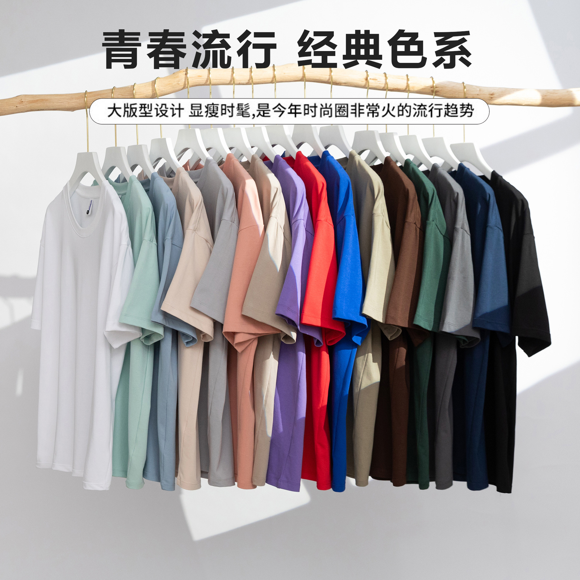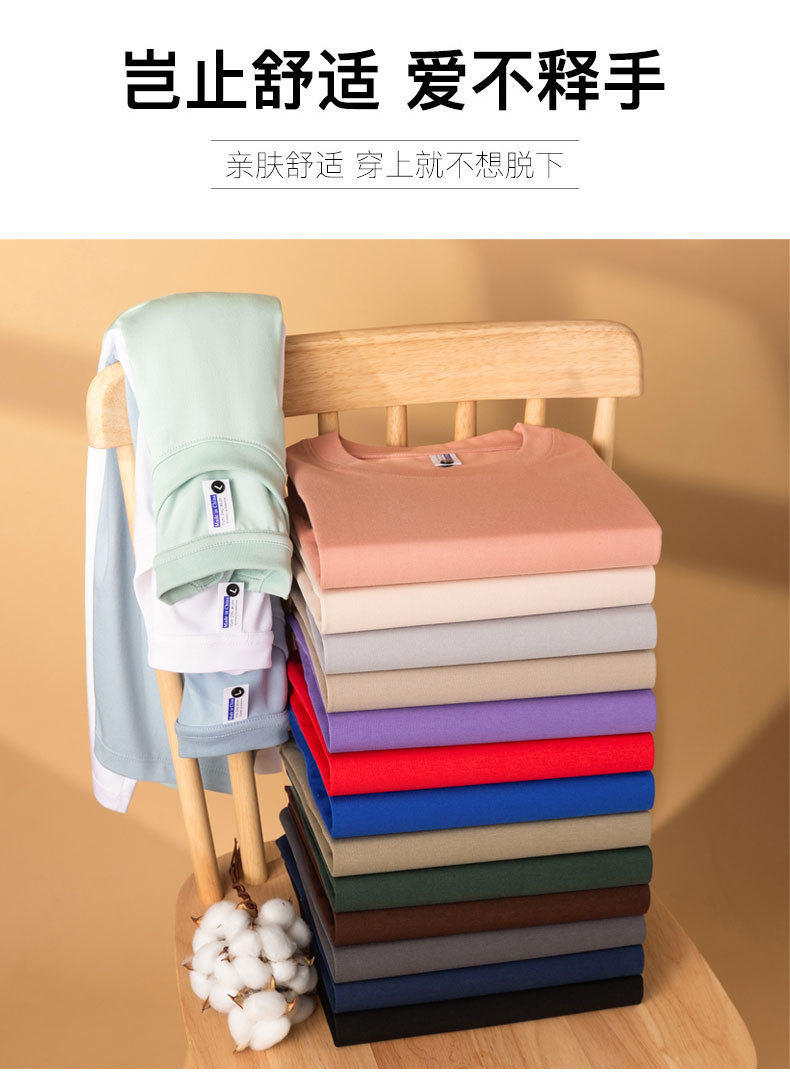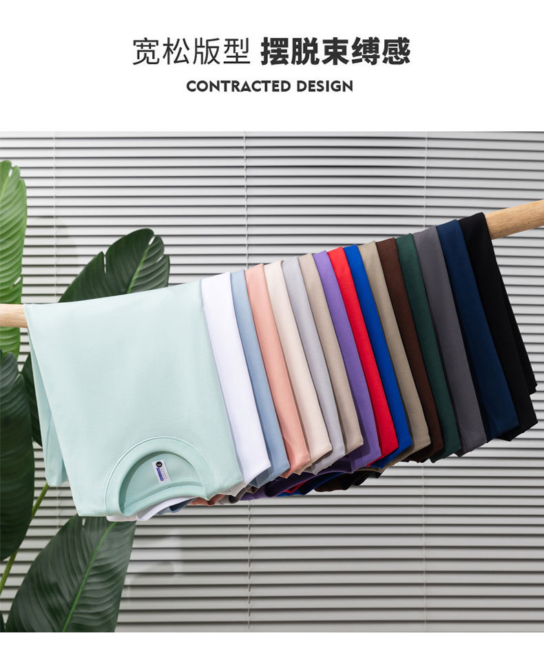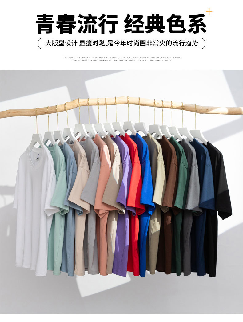 240g 대나무 섬유 이중사 라운드넥 솔리드 컬러 티셔츠 드롭숄더 반팔 남녀공용 여름 캐주얼 베이직 루즈핏스토어 가기